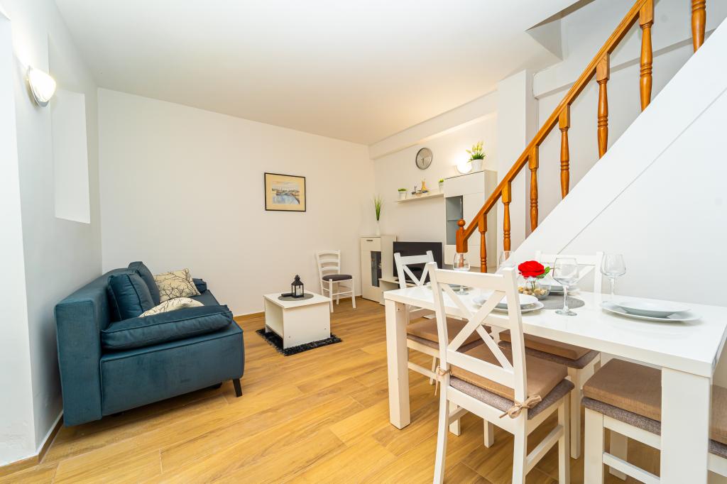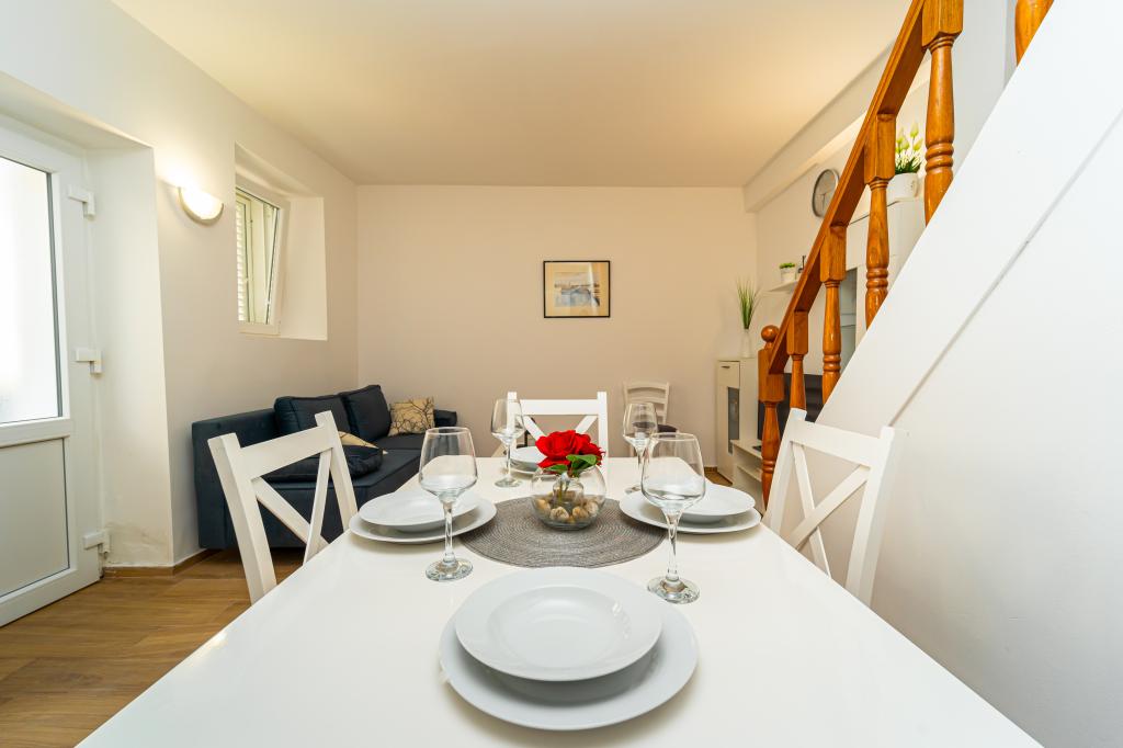 Marina House is gelegen in het oude centrum van Privlaka, op slechts 10 meter van de prachtige zandstranden. Het is een volledig uitgeruste traditionele stenen huis, dat is gerestaureerd tot zijn oorspronkelijke architectuur, samen met de omgeving biedt rust en de sfeer van de oude Dalmatische stad, dus het is ideaal voor gezinnen met kinderen. Het heeft twee slaapkamers, keuken, eetkamer, woonkamer en een badkamer. Het huis heeft verdieping en de slaapkamer heeft een terras met uitzicht over de hele lengte van de zee. In de omgeving is de traditionele café en op het terras zitten en kijken naar de zee, boten en een van de mooiste zonsondergangen ervaring die niet gemist mag worden. Alle gasten ter beschikking, en de gastheren zal altijd helpen bij het redden van gegrilde Dalmatische specialiteiten. Als je vrede wilt, heldere zee, prachtige natuur en onvergetelijke zonsondergangen vinden dan Marina huis is een ideale keuze voor u.