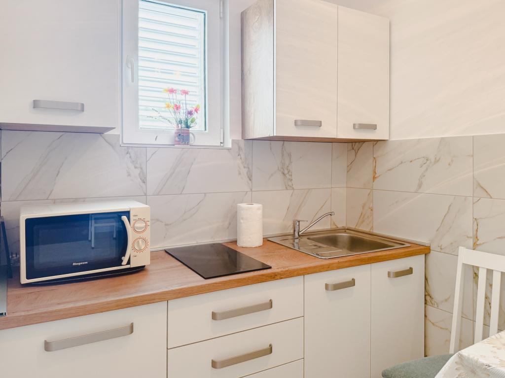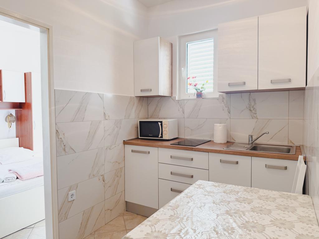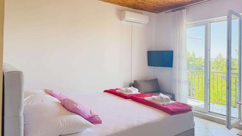 Rosemary Apartments ligt in een rustig deel van Promajna, ver weg van het lawaai van toeristen en auto's. Het pad naar het strand is 300 meter. Onze appartementen beschikken over een eigen balkon met uitzicht op zee, een eigen parkeerplaats, airconditioning, 2 slaapkamers en een eigen keuken. Achter het huis bevindt zich een gemeenschappelijk terras in de schaduw.