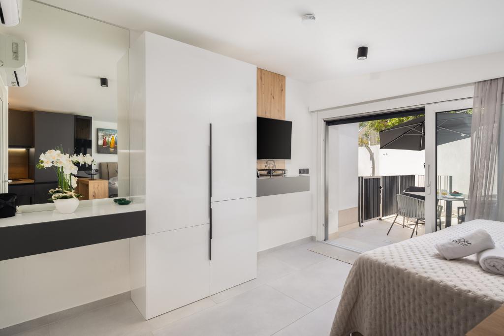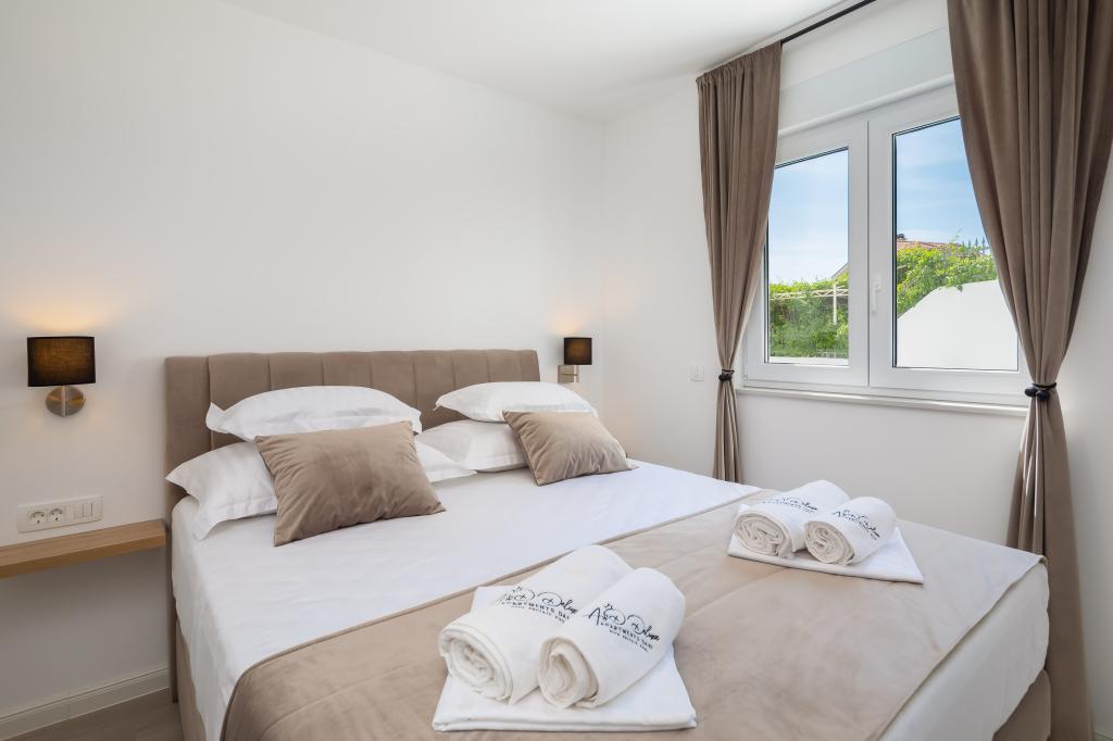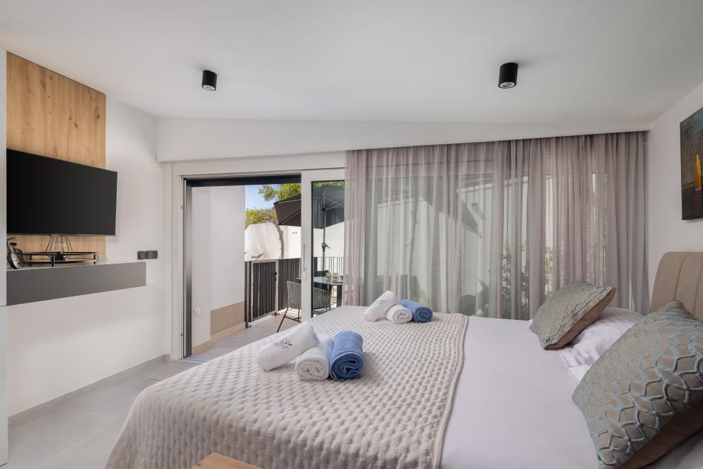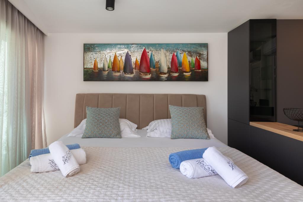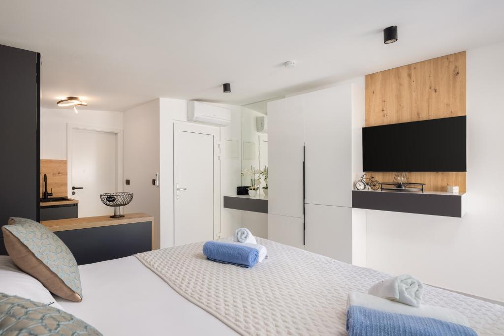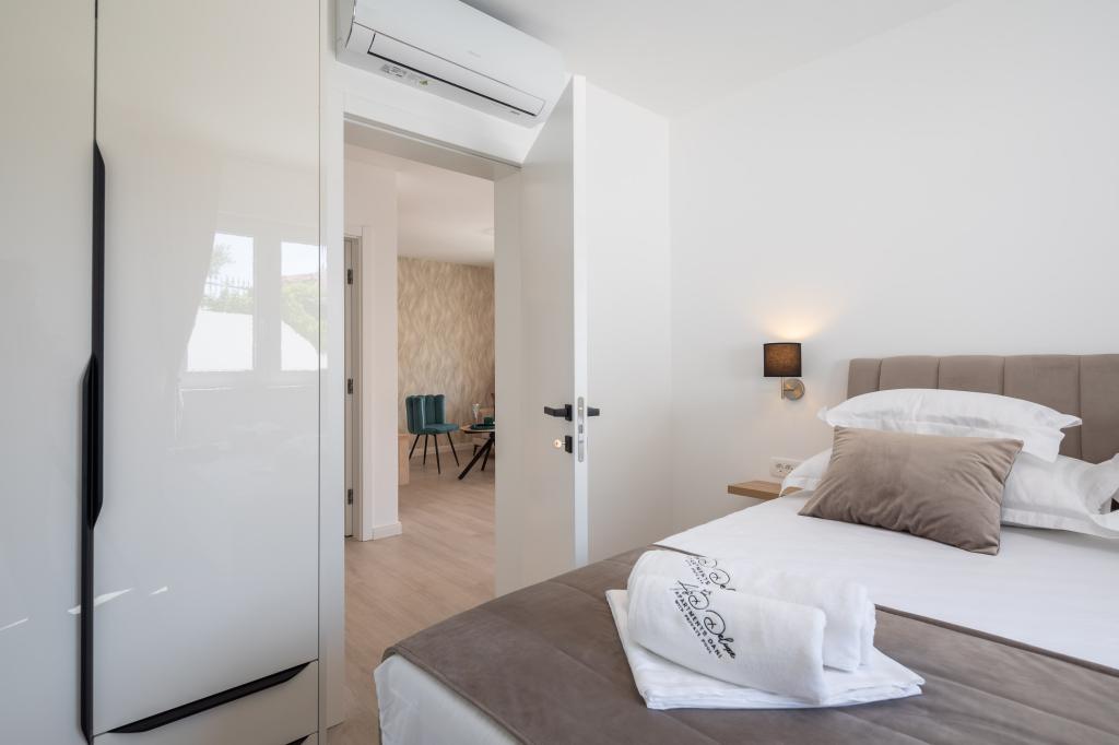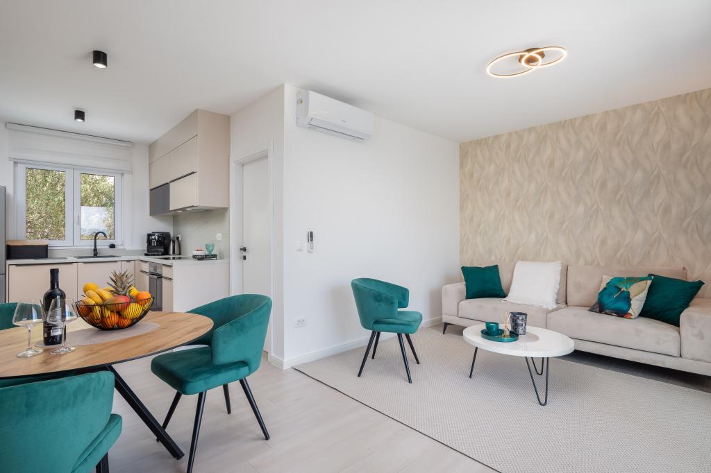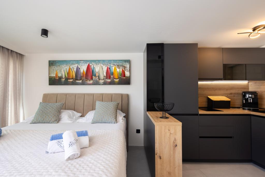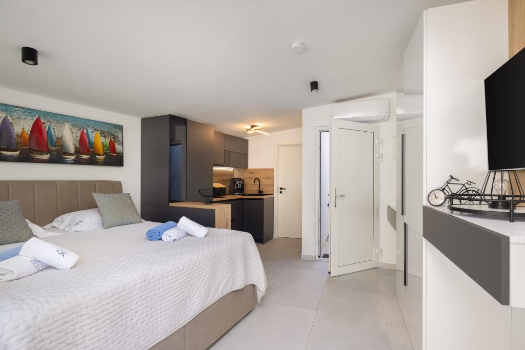Wij presenteren u A&D Deluxe appartementen met zwembad, comfortabele wooneenheden op loopafstand van de zee, op slechts 300 meter. Elk appartement biedt een perfecte combinatie van comfort en luxe. A1 appartement, met 2 slaapkamers, 2 badkamers en een ruim terras, biedt gedeeltelijk uitzicht op zee en is een ideale plek voor gezinnen of kleine groepen om te ontspannen. Bovendien hebben de gasten directe toegang tot het zwembad, zodat ze kunnen genieten van verfrissingen en extra entertainment. De A2 suite, eveneens met 2 slaapkamers en 2 badkamers, heeft ook toegang tot het zwembad, waardoor de gasten extra plezier en ontspanning hebben. Het A3-appartement, met één slaapkamer en badkamer, heeft ook toegang tot het zwembad en is ideaal voor koppels of kleinere gezinnen die op zoek zijn naar een ontspannen vakantie aan zee. Alle appartementen zijn volledig uitgerust, inclusief keukens, privéparkeergelegenheid, airconditioning en smart-tv's, waardoor comfort en gemak tijdens uw verblijf wordt gegarandeerd. Geniet van de luxe van een privézwembad en de nabijheid van prachtige stranden in deze appartementen.