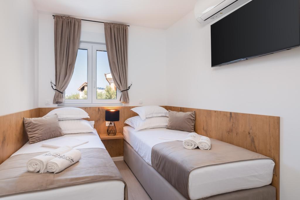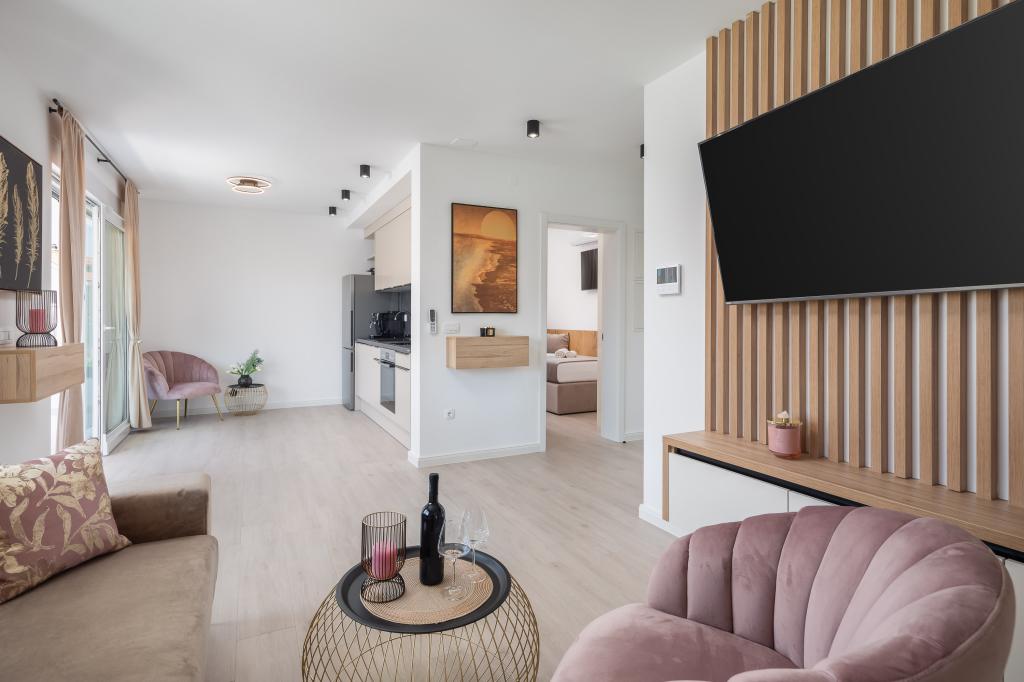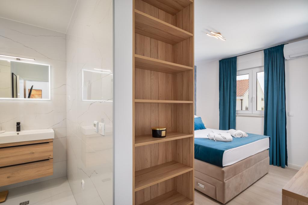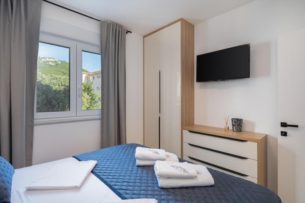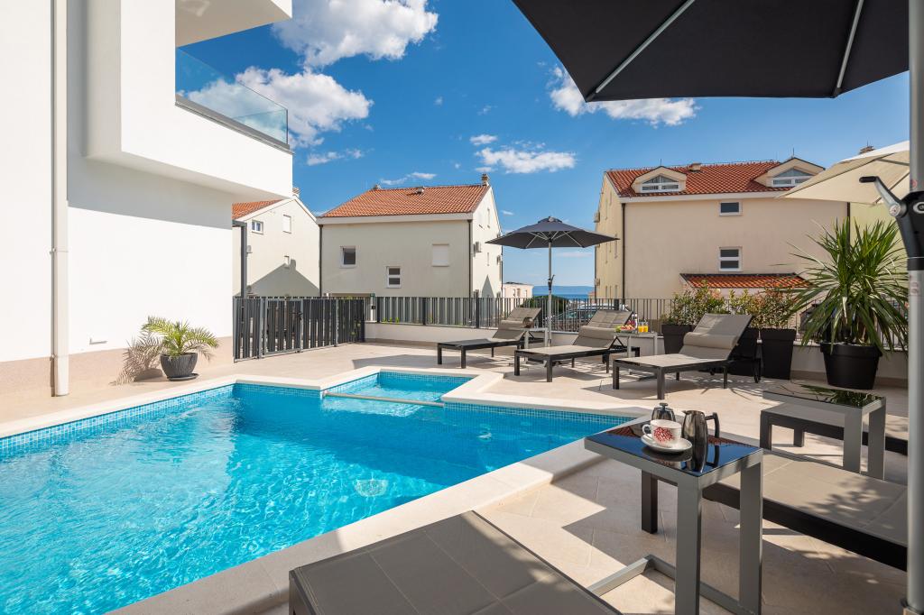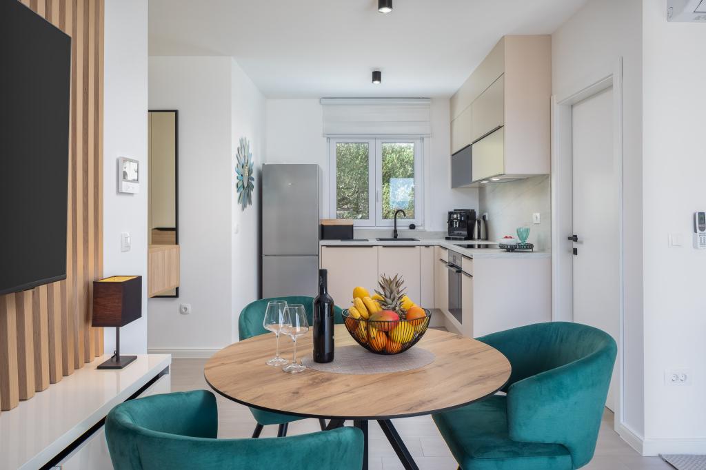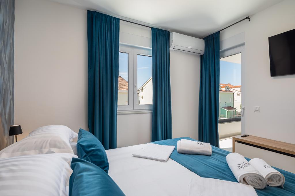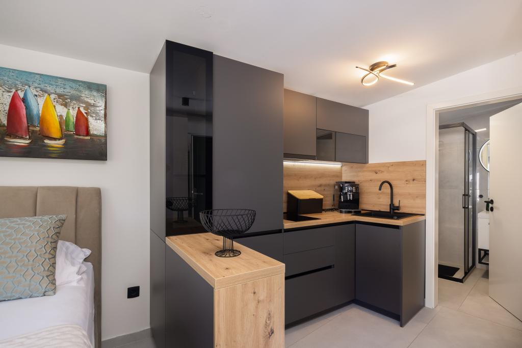Wij presenteren u A&D Deluxe appartementen met zwembad, comfortabele wooneenheden op loopafstand van de zee, op slechts 300 meter. Elk appartement biedt een perfecte combinatie van comfort en luxe. A1 appartement, met 2 slaapkamers, 2 badkamers en een ruim terras, biedt gedeeltelijk uitzicht op zee en is een ideale plek voor gezinnen of kleine groepen om te ontspannen. Bovendien hebben de gasten directe toegang tot het zwembad, zodat ze kunnen genieten van verfrissingen en extra entertainment. De A2 suite, eveneens met 2 slaapkamers en 2 badkamers, heeft ook toegang tot het zwembad, waardoor de gasten extra plezier en ontspanning hebben. Het A3-appartement, met één slaapkamer en badkamer, heeft ook toegang tot het zwembad en is ideaal voor koppels of kleinere gezinnen die op zoek zijn naar een ontspannen vakantie aan zee. Alle appartementen zijn volledig uitgerust, inclusief keukens, privéparkeergelegenheid, airconditioning en smart-tv's, waardoor comfort en gemak tijdens uw verblijf wordt gegarandeerd. Geniet van de luxe van een privézwembad en de nabijheid van prachtige stranden in deze appartementen.
