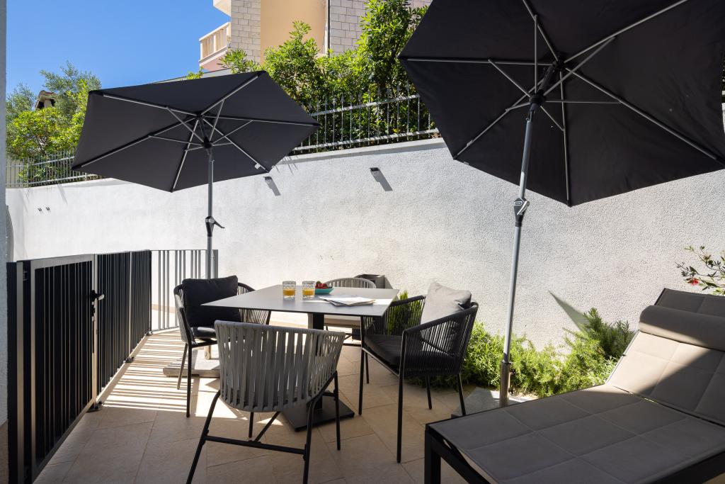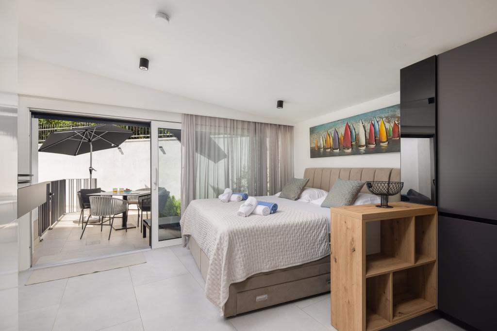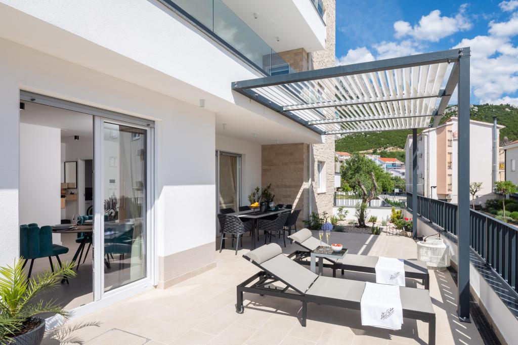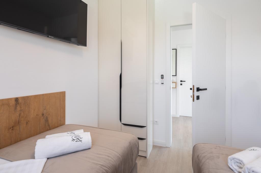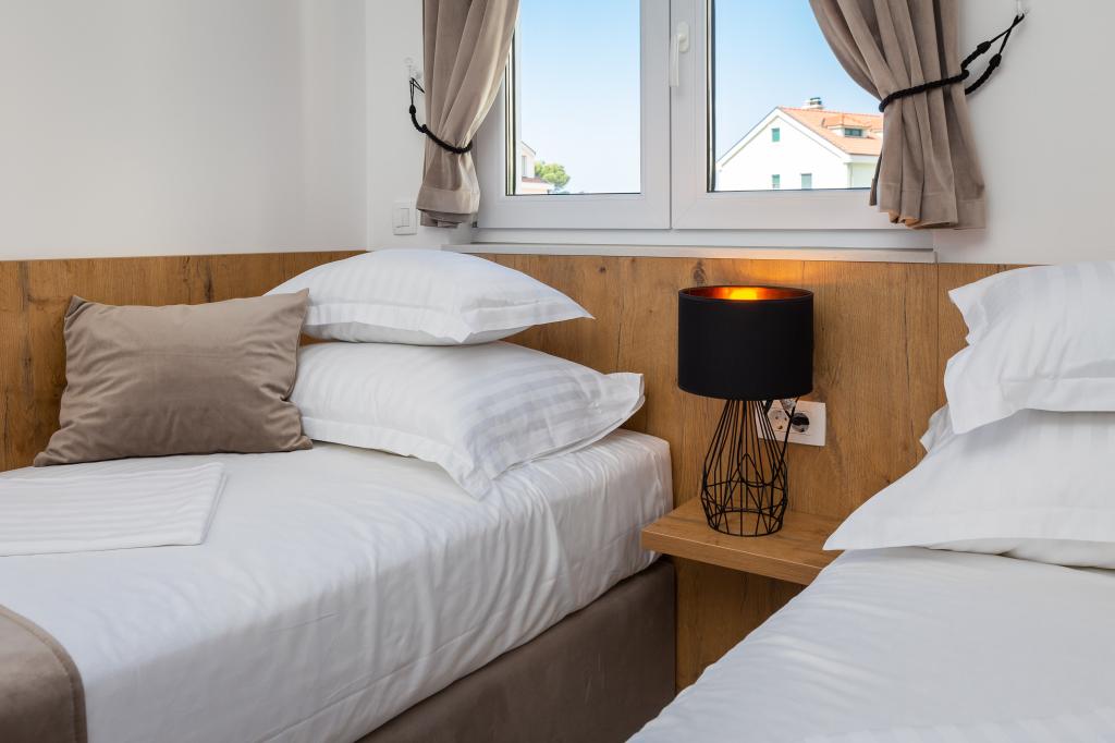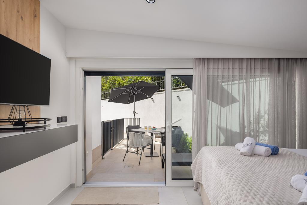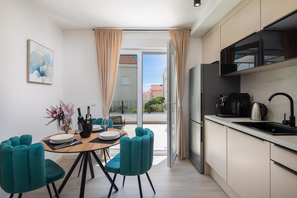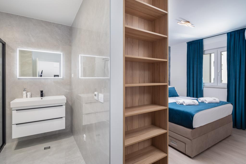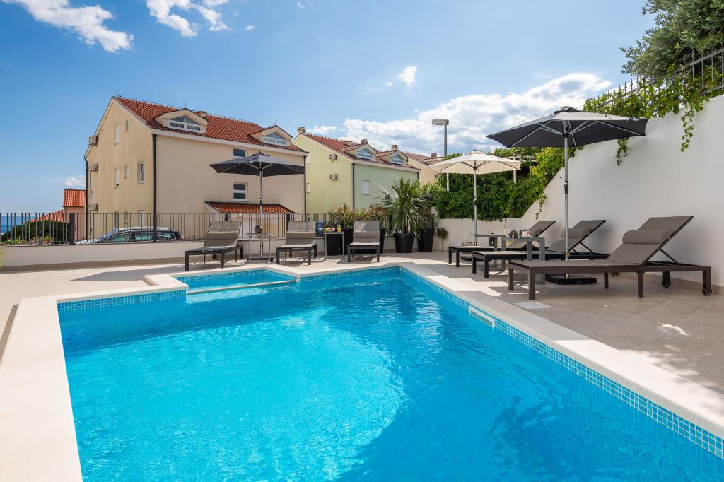 Wij presenteren u A&D Deluxe appartementen met zwembad, comfortabele wooneenheden op loopafstand van de zee, op slechts 300 meter. Elk appartement biedt een perfecte combinatie van comfort en luxe. A1 appartement, met 2 slaapkamers, 2 badkamers en een ruim terras, biedt gedeeltelijk uitzicht op zee en is een ideale plek voor gezinnen of kleine groepen om te ontspannen. Bovendien hebben de gasten directe toegang tot het zwembad, zodat ze kunnen genieten van verfrissingen en extra entertainment. De A2 suite, eveneens met 2 slaapkamers en 2 badkamers, heeft ook toegang tot het zwembad, waardoor de gasten extra plezier en ontspanning hebben. Het A3-appartement, met één slaapkamer en badkamer, heeft ook toegang tot het zwembad en is ideaal voor koppels of kleinere gezinnen die op zoek zijn naar een ontspannen vakantie aan zee. Alle appartementen zijn volledig uitgerust, inclusief keukens, privéparkeergelegenheid, airconditioning en smart-tv's, waardoor comfort en gemak tijdens uw verblijf wordt gegarandeerd. Geniet van de luxe van een privézwembad en de nabijheid van prachtige stranden in deze appartementen.