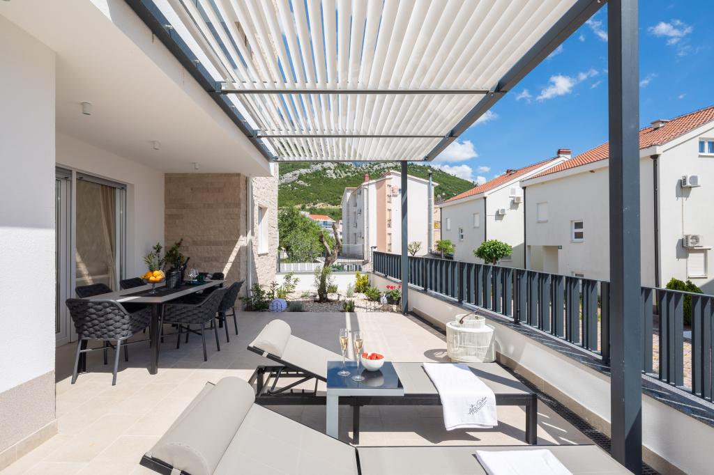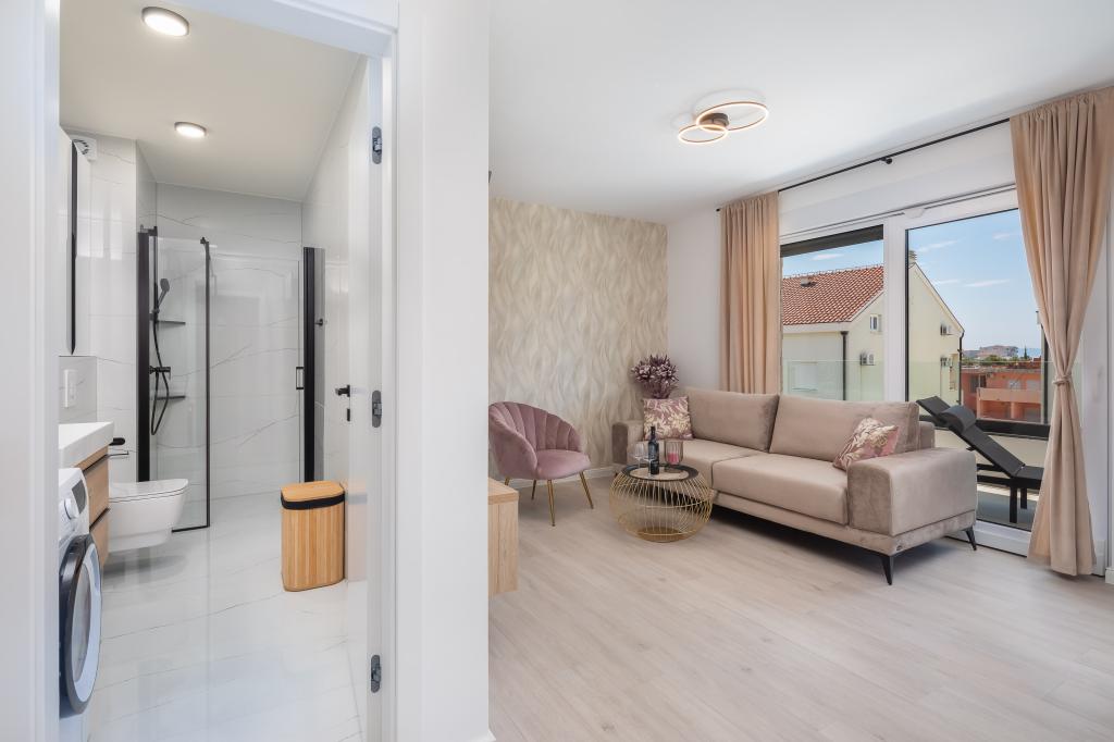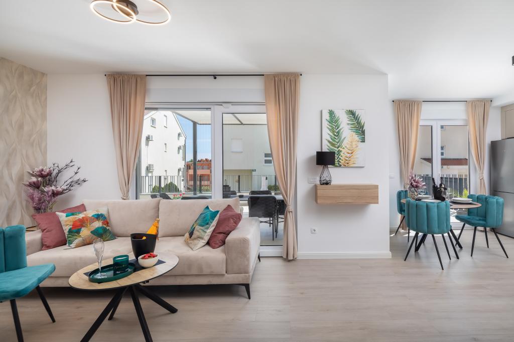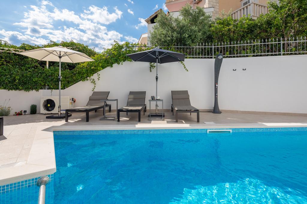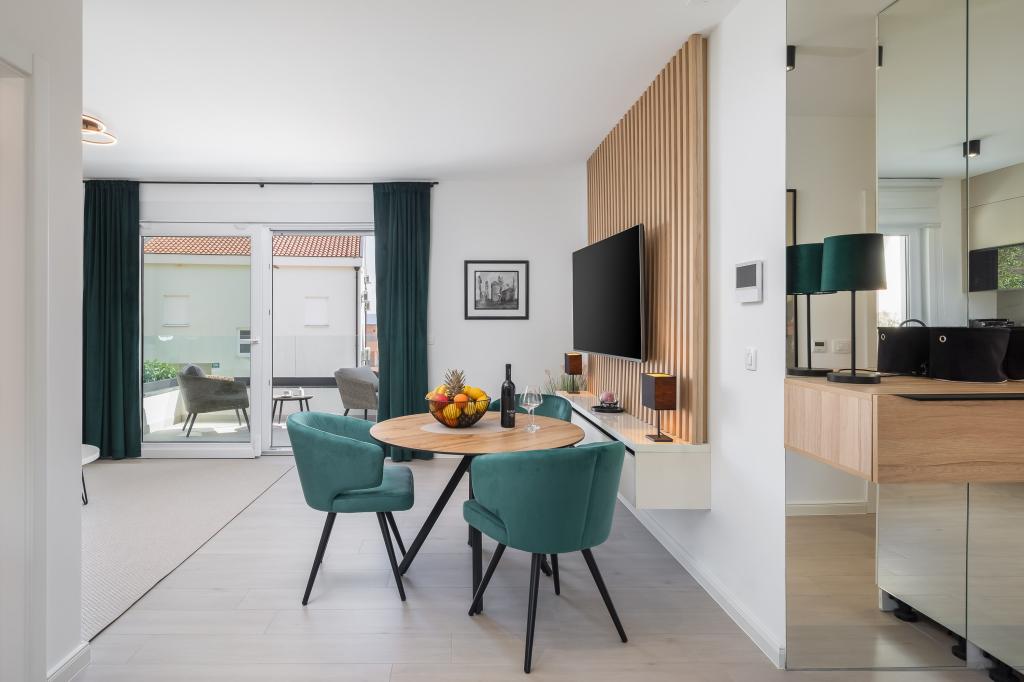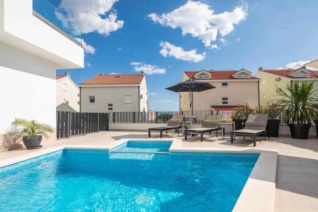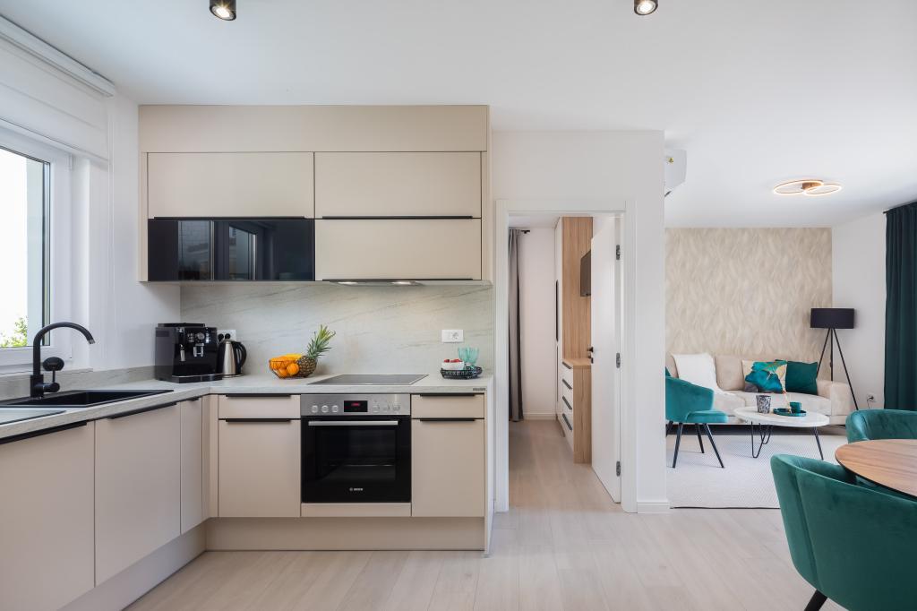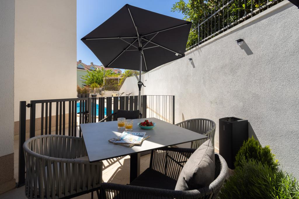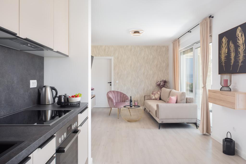 Wij presenteren u A&D Deluxe appartementen met zwembad, comfortabele wooneenheden op loopafstand van de zee, op slechts 300 meter. Elk appartement biedt een perfecte combinatie van comfort en luxe. A1 appartement, met 2 slaapkamers, 2 badkamers en een ruim terras, biedt gedeeltelijk uitzicht op zee en is een ideale plek voor gezinnen of kleine groepen om te ontspannen. Bovendien hebben de gasten directe toegang tot het zwembad, zodat ze kunnen genieten van verfrissingen en extra entertainment. De A2 suite, eveneens met 2 slaapkamers en 2 badkamers, heeft ook toegang tot het zwembad, waardoor de gasten extra plezier en ontspanning hebben. Het A3-appartement, met één slaapkamer en badkamer, heeft ook toegang tot het zwembad en is ideaal voor koppels of kleinere gezinnen die op zoek zijn naar een ontspannen vakantie aan zee. Alle appartementen zijn volledig uitgerust, inclusief keukens, privéparkeergelegenheid, airconditioning en smart-tv's, waardoor comfort en gemak tijdens uw verblijf wordt gegarandeerd. Geniet van de luxe van een privézwembad en de nabijheid van prachtige stranden in deze appartementen.
