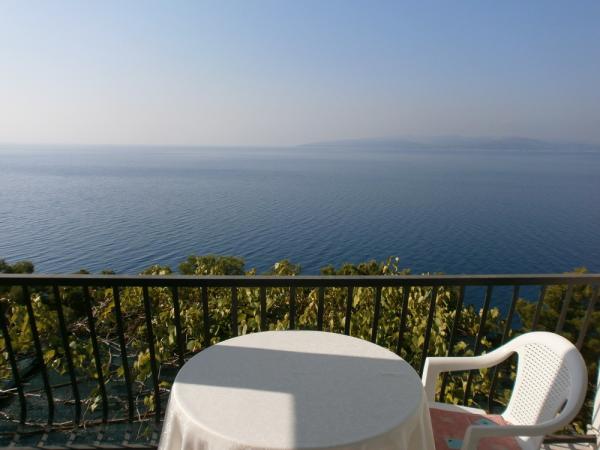 Een ruim, zelfs steriel appartement, een groot terras met een prachtig uitzicht, na een week verschoning van handdoeken en bedlinnen, stilte, rust, aardige eigenaar, dichtbij een klein en intiem strand, enige pluspunten.... Ik raad het ten zeerste aan voor iedereen die echt wil ontspannen.
