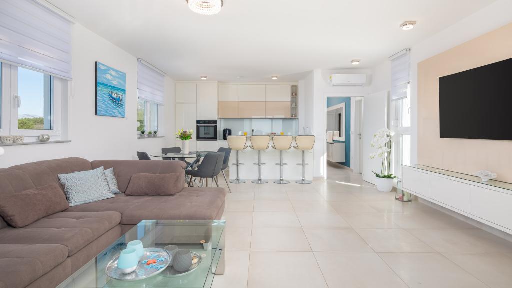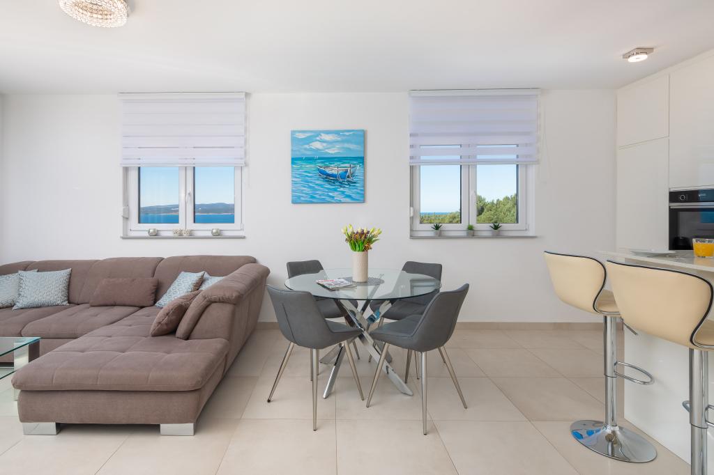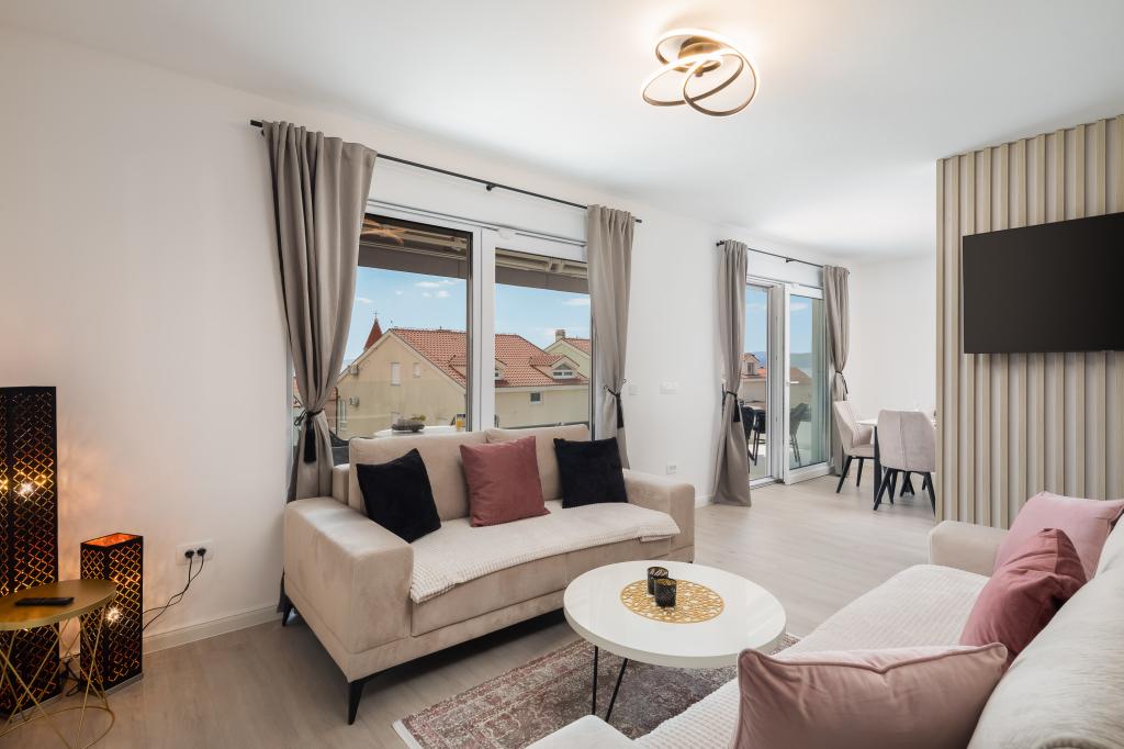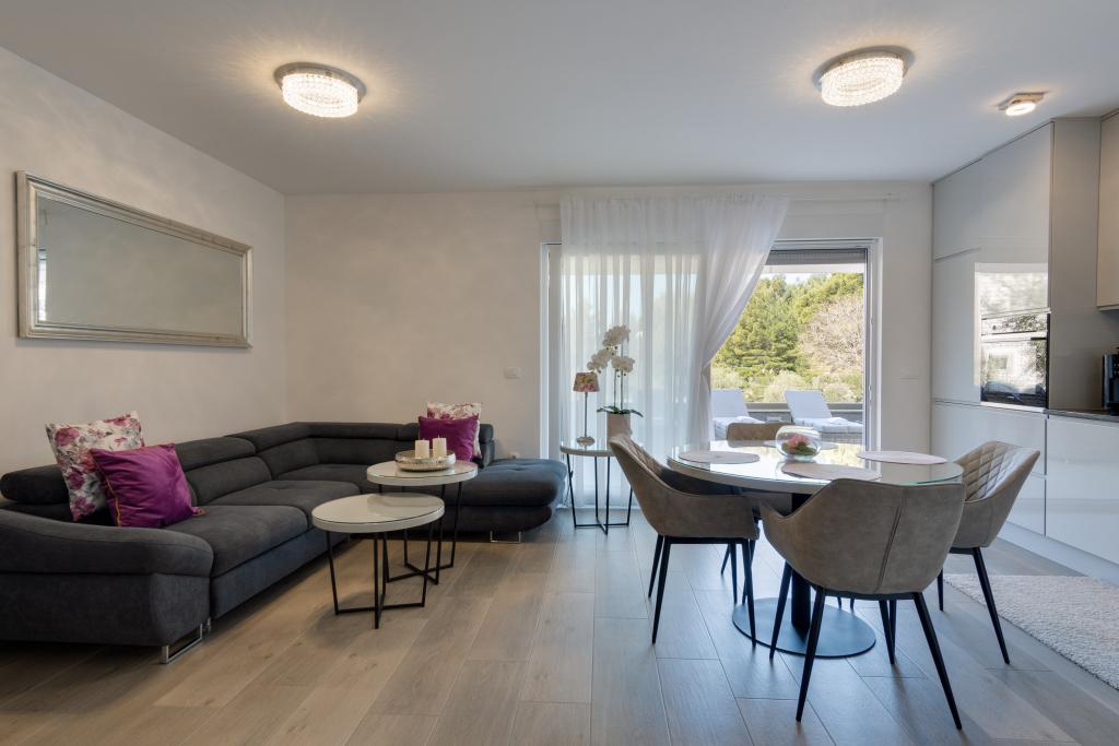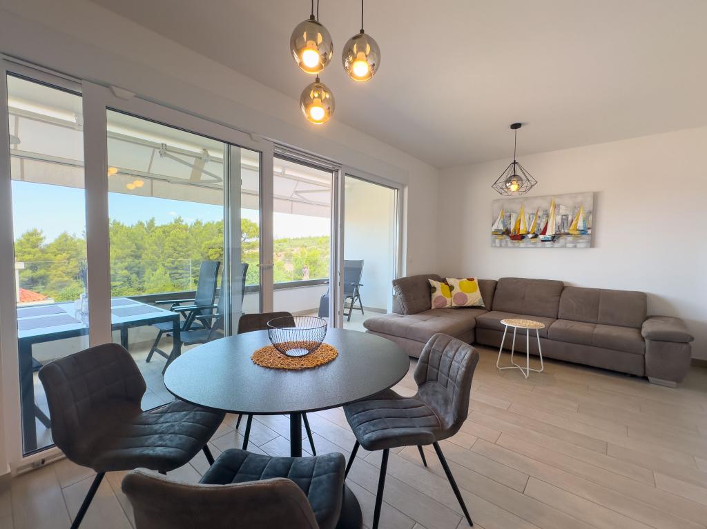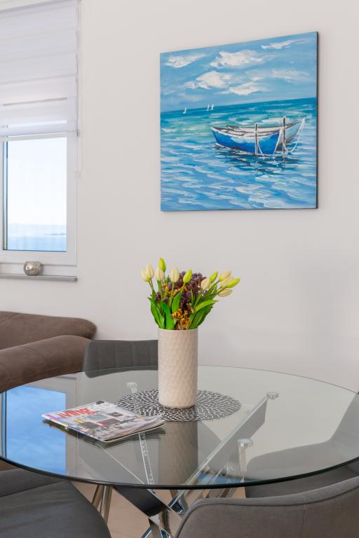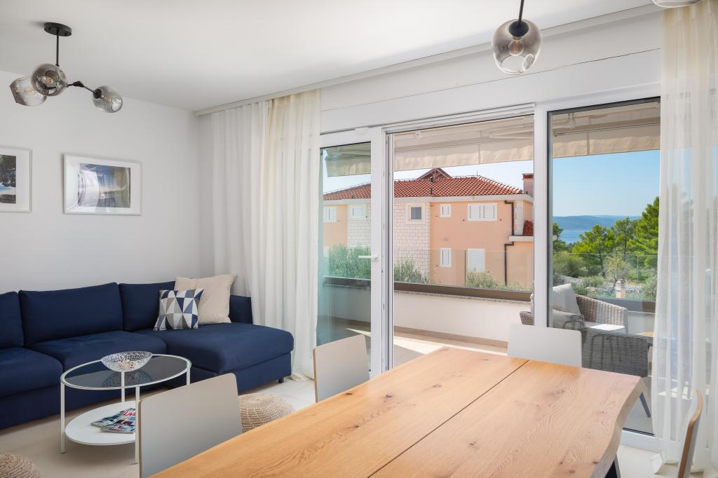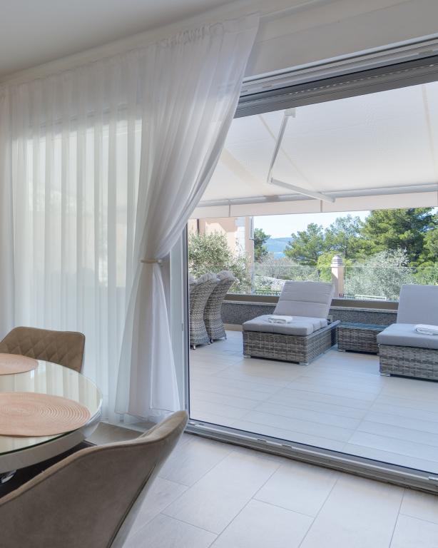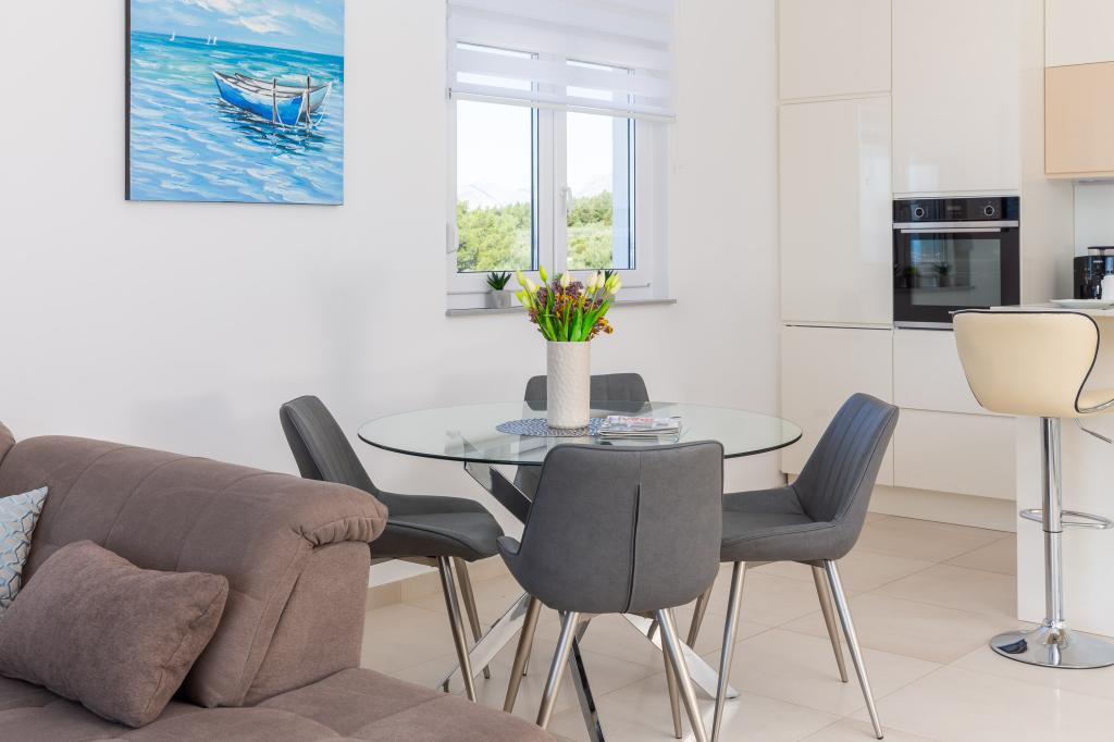 **** LAATSTE SEIZOENSAANBIEDING - 10% korting op alle vermelde prijzen voor niet-ingevulde reserveringen. **** Wij bieden luxe appartementen aan in Promajna. Alle appartementen beschikken over comfortabele slaapkamers met smart-tv's. Alle appartementen hebben een eigen parkeerplaats (het appartement op de begane grond heeft 2 parkeerplaatsen). Het appartement is uitgerust met meubilair en apparatuur van topkwaliteit. Het appartement op de begane grond heeft een elektrisch zonnescherm en een extra buitendouche.