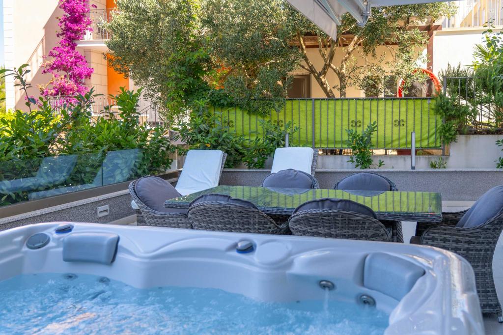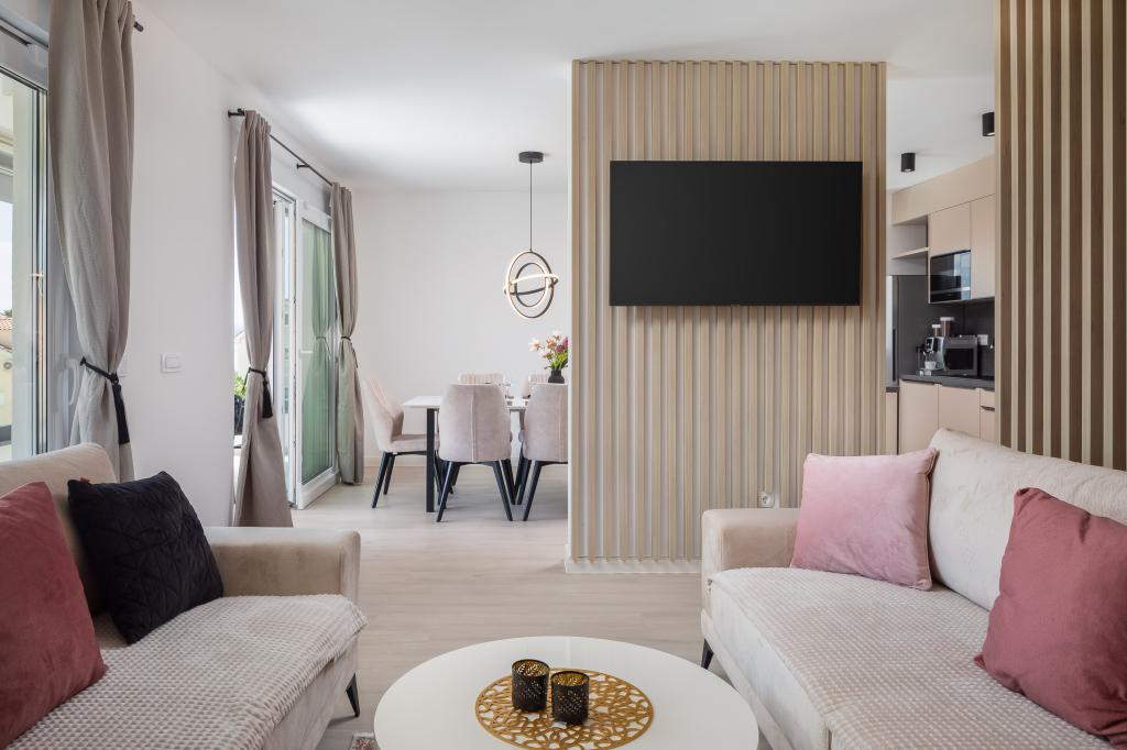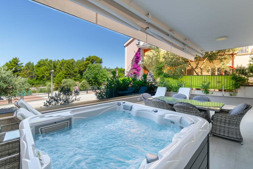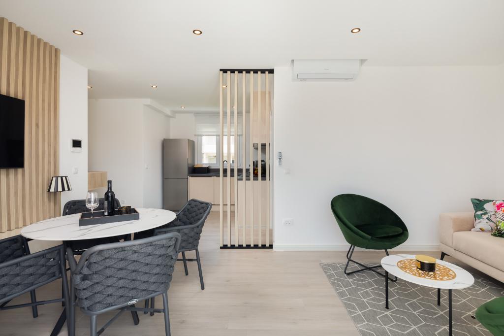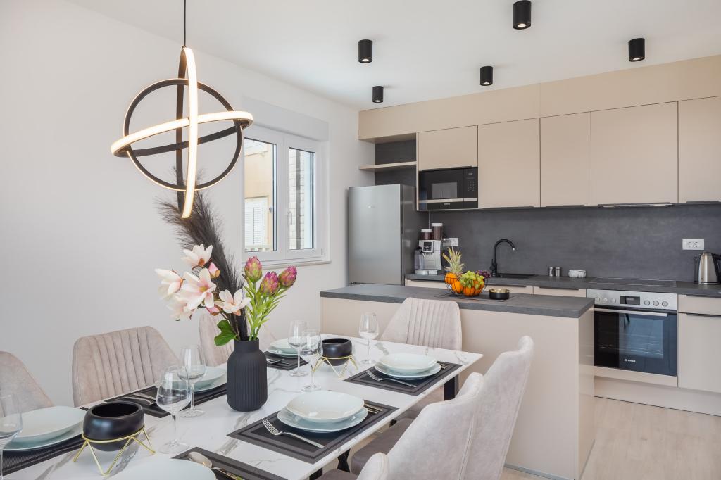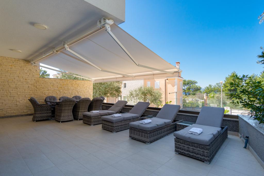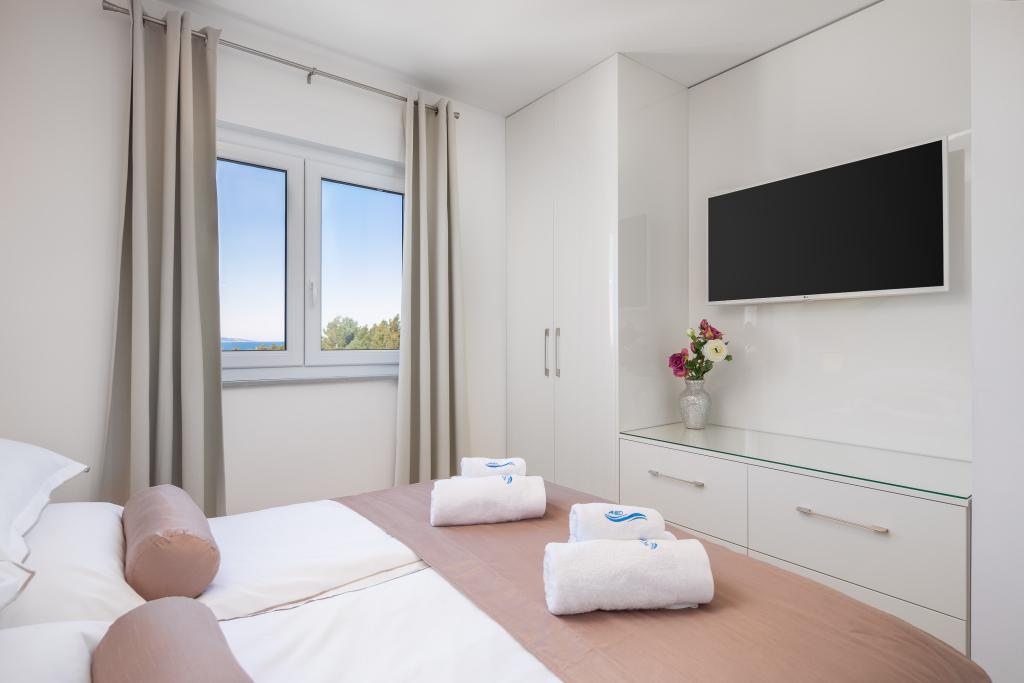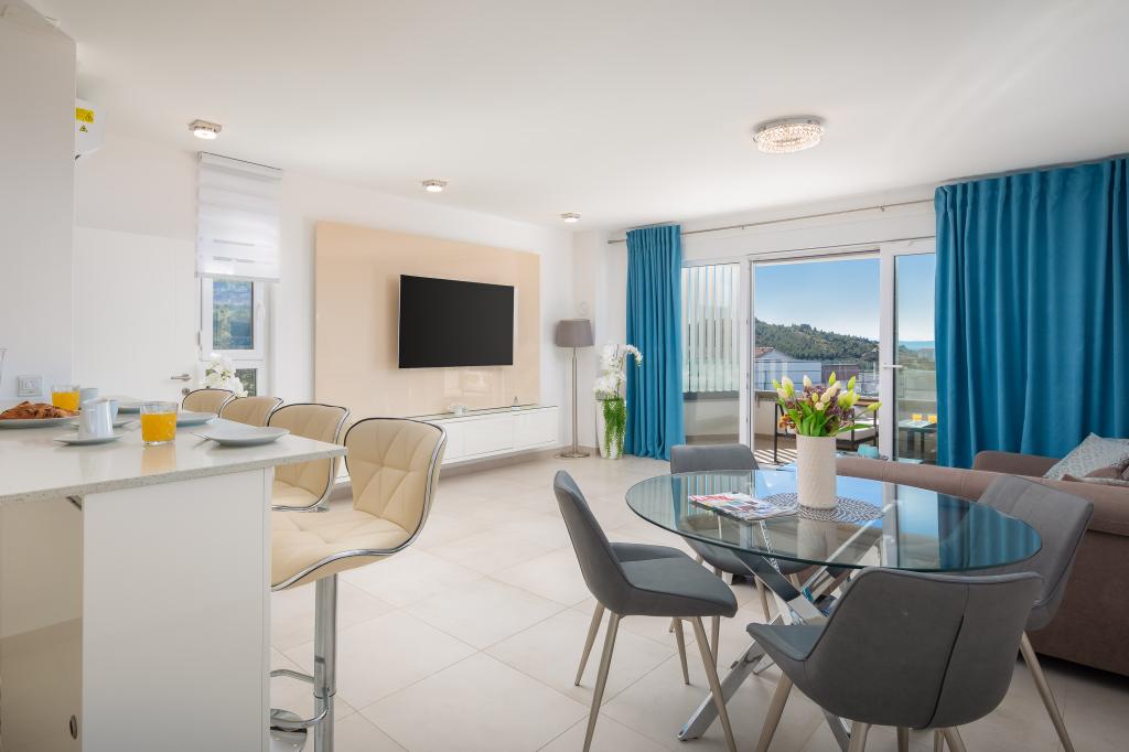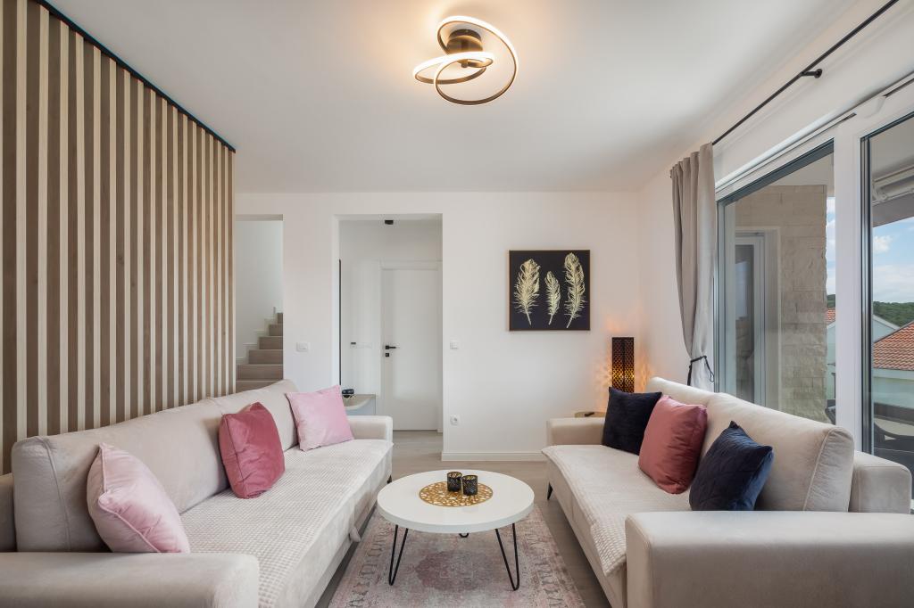 **** LAATSTE SEIZOENSAANBIEDING - 10% korting op alle vermelde prijzen voor niet-ingevulde reserveringen. **** Wij bieden luxe appartementen aan in Promajna. Alle appartementen beschikken over comfortabele slaapkamers met smart-tv's. Alle appartementen hebben een eigen parkeerplaats (het appartement op de begane grond heeft 2 parkeerplaatsen). Het appartement is uitgerust met meubilair en apparatuur van topkwaliteit. Het appartement op de begane grond heeft een elektrisch zonnescherm en een extra buitendouche.
