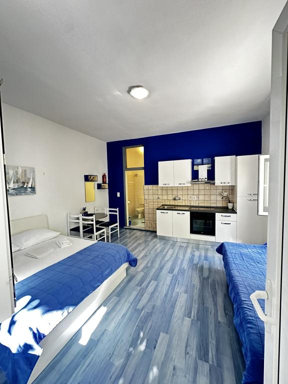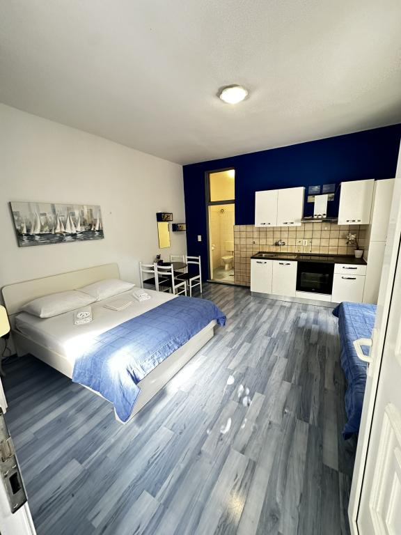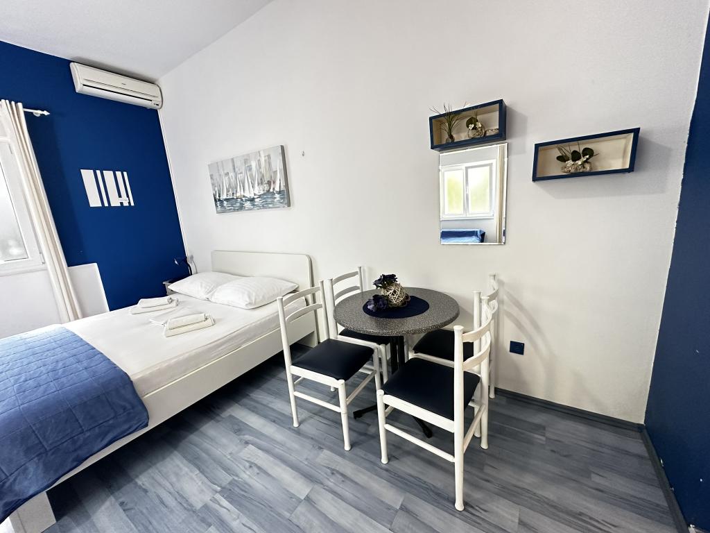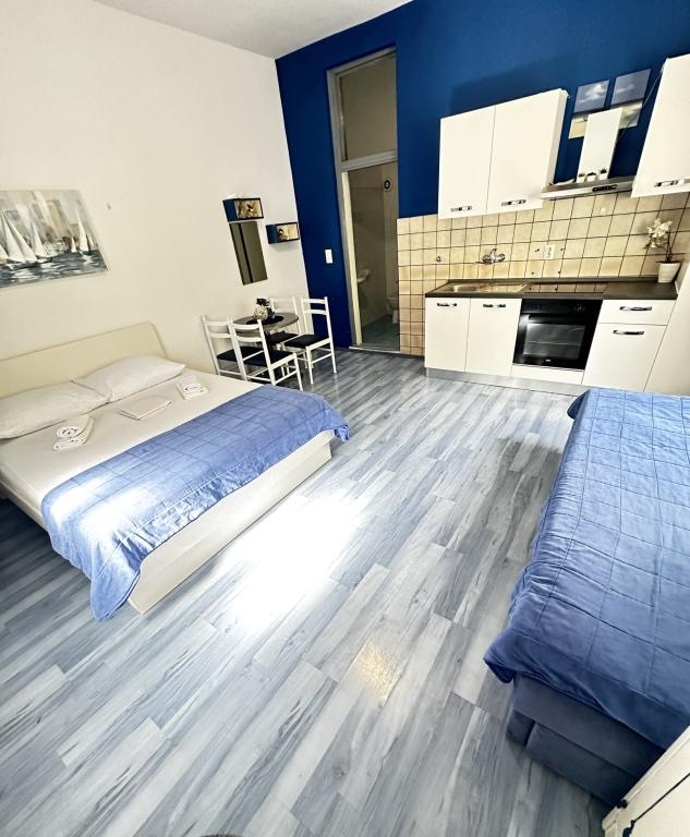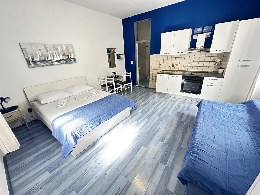 Het aanbod omvat twee prachtige tweekamerappartementen, volledig uitgerust en twee studio's met airconditioning. Tweekamerappartementen hebben twee kamers met tweepersoonsbedden. In één van de appartementen is het mogelijk om twee extra personen op de bank te huisvesten. De twee studio's hebben elk een tweepersoonsbed en een slaapbank en zijn geschikt voor een gezin van maximaal 4 personen, waarvan 2 kinderen. Alle badkamers in tweekamerappartementen zijn uitgerust met een douche en beschikken ook over wasmachines en haardrogers. De keukens zijn volledig uitgerust. Ze zijn voorzien van een oven, een magnetron, een koelkast, een vaatwasser en een waterkoker. Uiteraard hebben wij ook gezorgd voor al het keukengerei dat je nodig hebt. De studio heeft een badkamer met douche, een ingerichte keuken met een magnetron, een fornuis en een koelkast. Ze liggen op 300 meter van de zee in Promajna en zijn voorzien van gratis WiFi en airconditioning. Er is gratis privéparkeergelegenheid beschikbaar in het gebouw.
