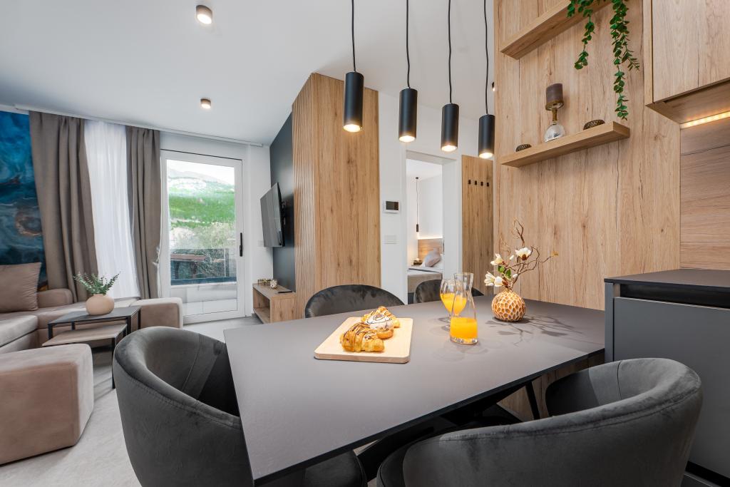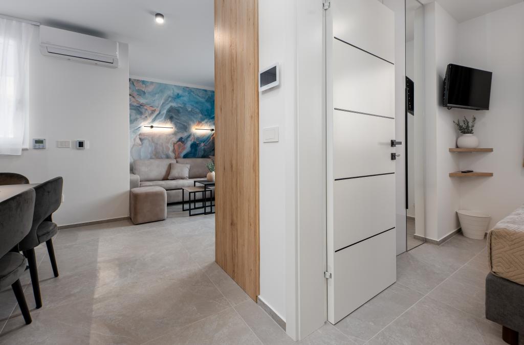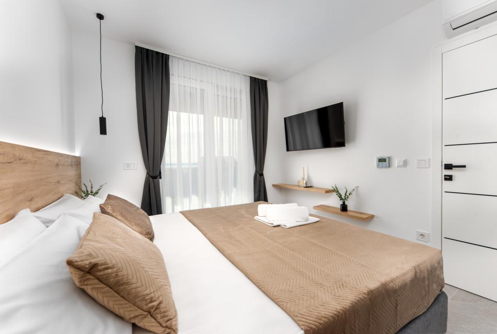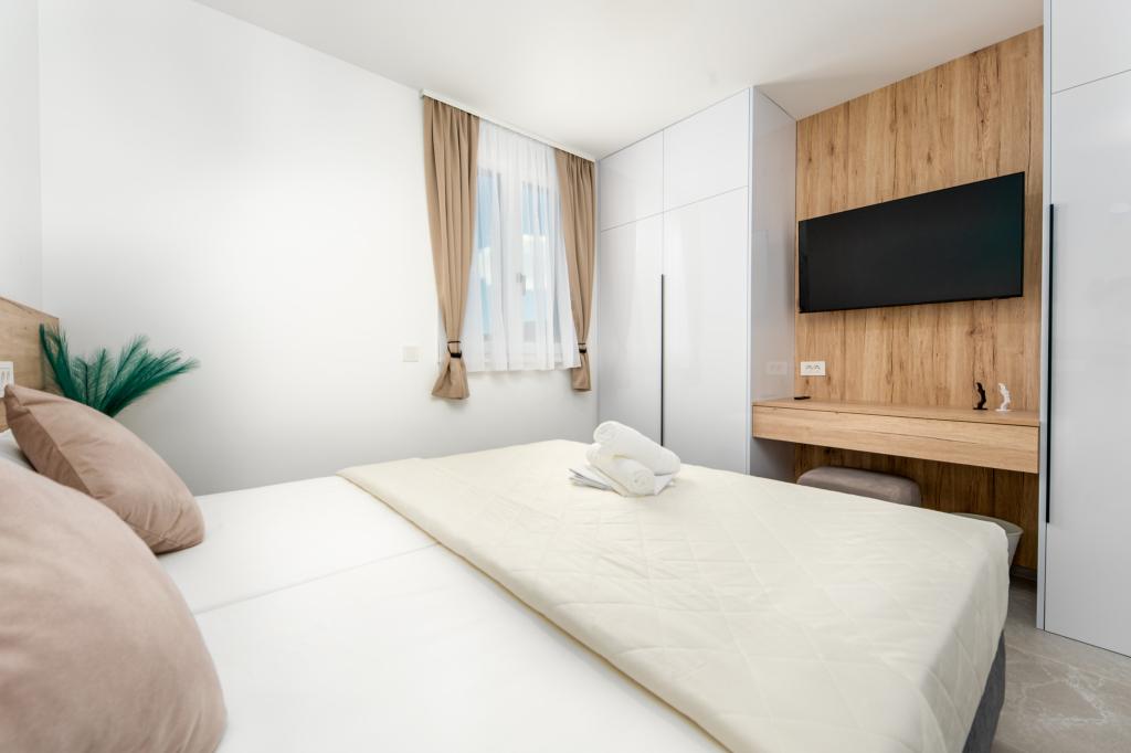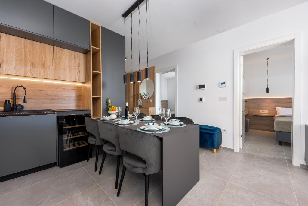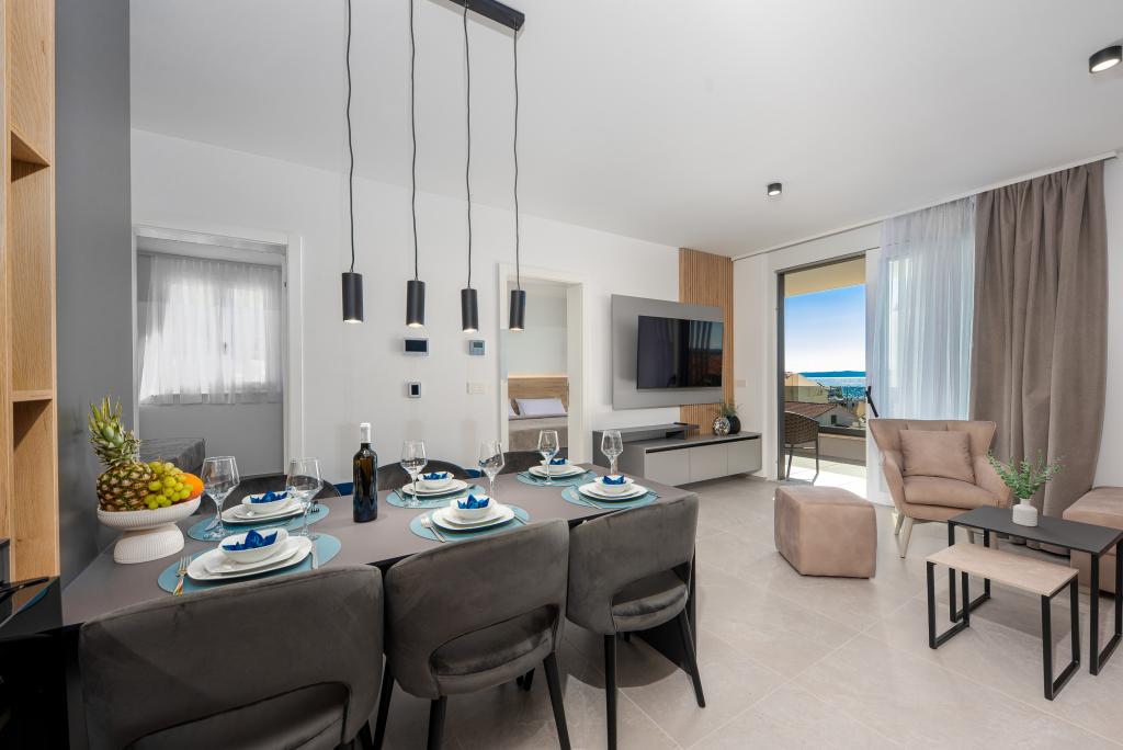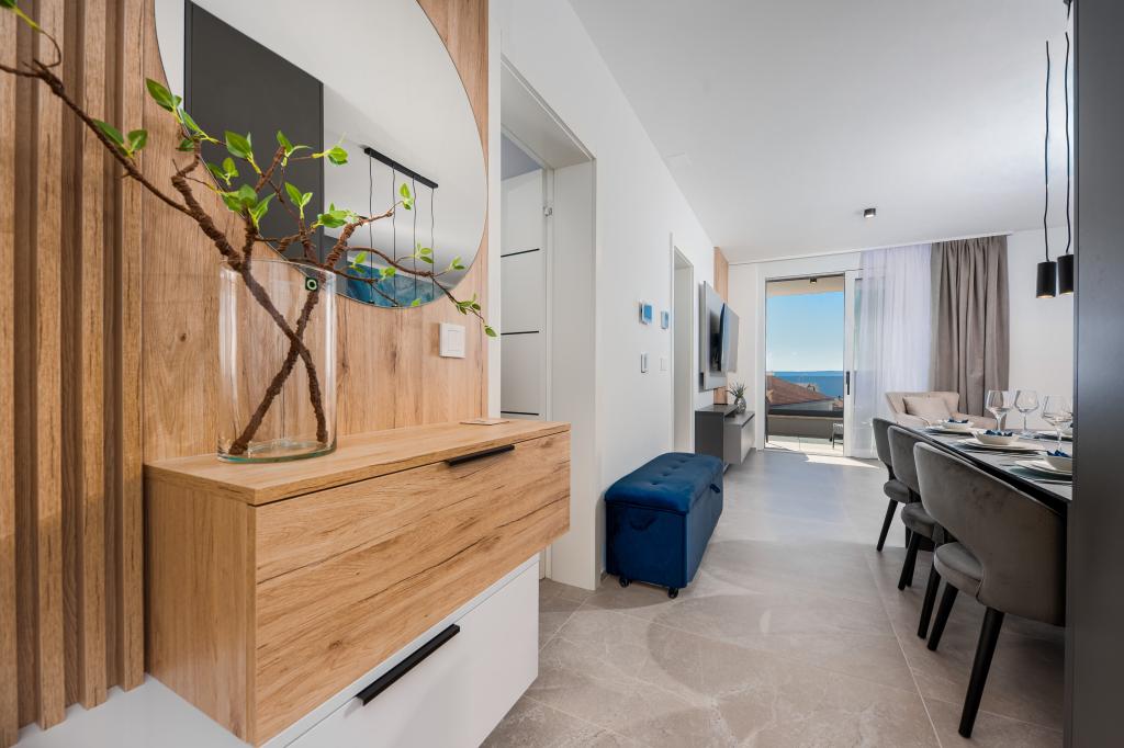 Apartments Sunshine-Breeze aan Ul. Prilaz obali 22a in Promajna biedt volledig en modern ingerichte appartementen (3x 4+2 personen en 3x 2+2 personen) in een rustige buurt, ideaal voor een ontspannen vakantie. De accommodatie ligt op slechts 2 minuten lopen van het hoofdstrand. Alle appartementen zijn voorzien van airconditioning, gratis wifi, parkeergelegenheid en ruime terrassen om te genieten van de mediterrane sfeer. Appartementen 2+2 bieden uitzicht op zee en Bijokovo, en appartementen 4+2 bieden eveneens uitzicht op zee. Apartments Sunshine-Breeze is een nieuw gebouwd complex. Alle keukens zijn modern uitgerust (koelkast met vriezer, fornuis, oven, waterkoker, vaatwasser, koffiezetapparaat, enz.) en alle badkamers zijn modern ingericht met een wasmachine en föhn. De bedden zijn van topkwaliteit met boxspringmatrassen van medisch superluxe materiaal. Het is de perfecte keuze voor gezinnen, stellen en iedereen die wil genieten van de schoonheid van de Makarska Riviera.