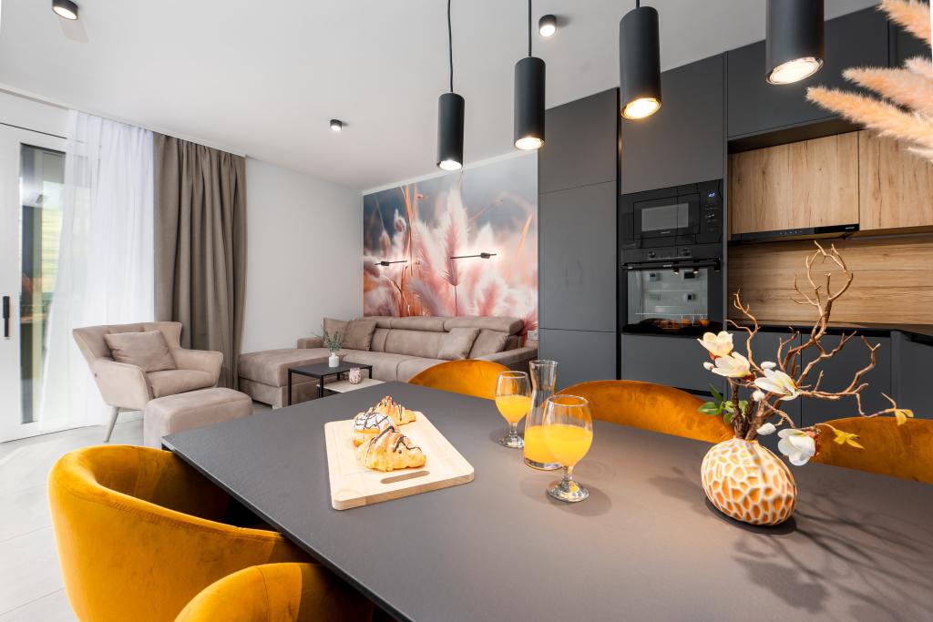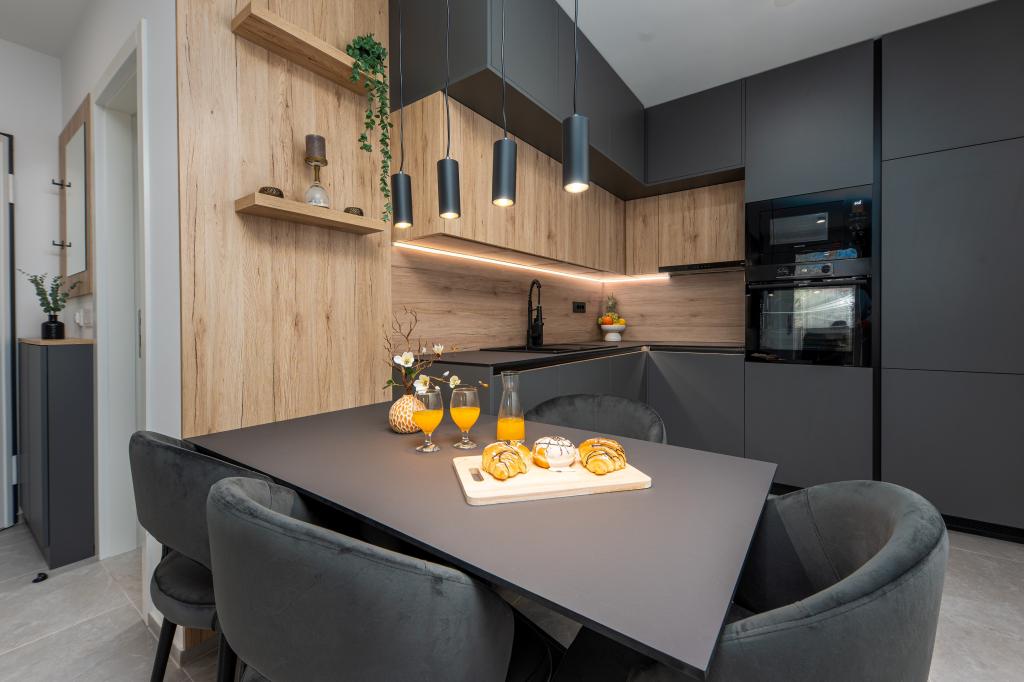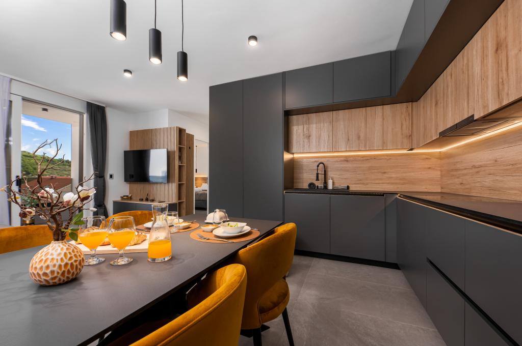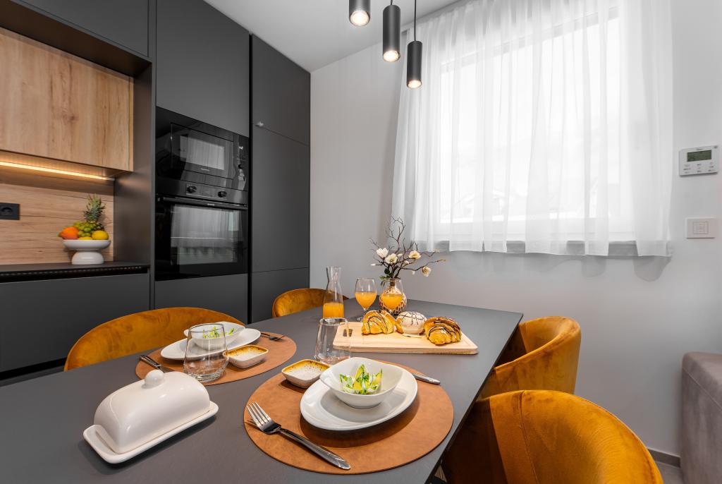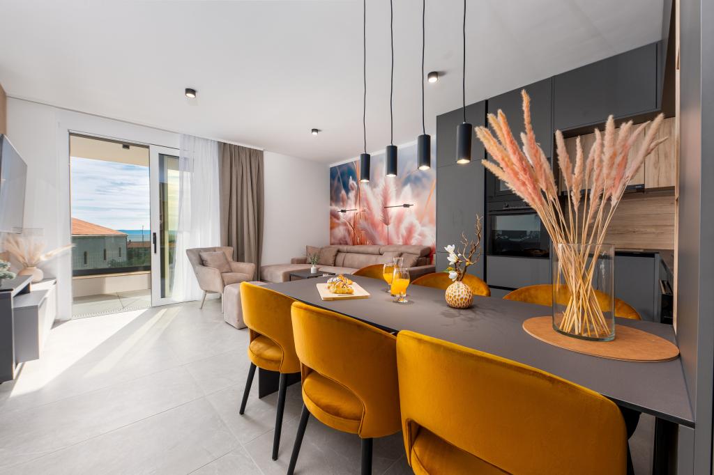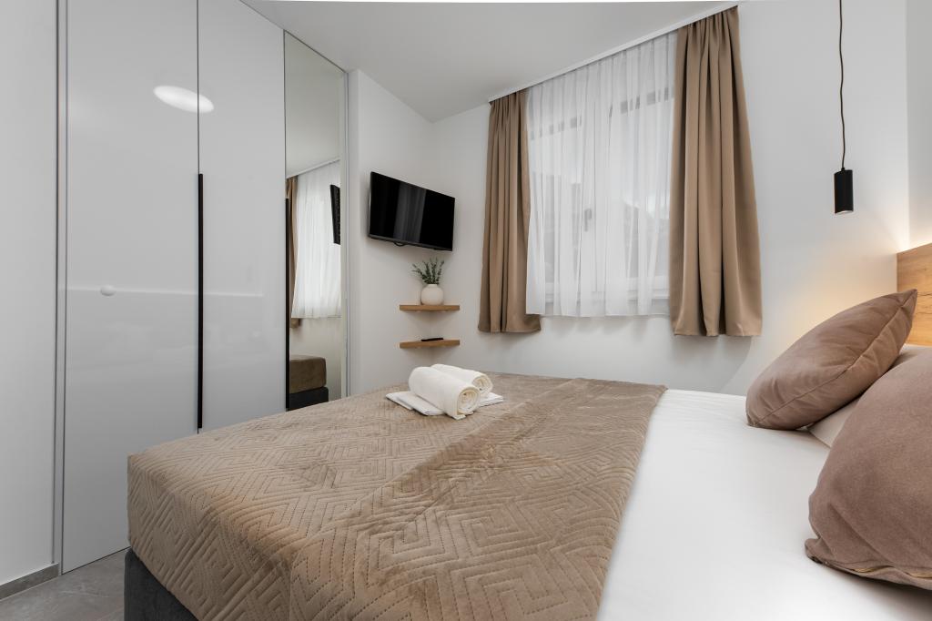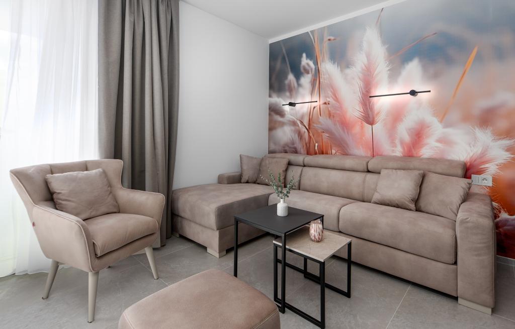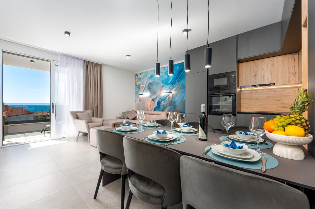 Apartments Sunshine-Breeze aan Ul. Prilaz obali 22a in Promajna biedt volledig en modern ingerichte appartementen (3x 4+2 personen en 3x 2+2 personen) in een rustige buurt, ideaal voor een ontspannen vakantie. De accommodatie ligt op slechts 2 minuten lopen van het hoofdstrand. Alle appartementen zijn voorzien van airconditioning, gratis wifi, parkeergelegenheid en ruime terrassen om te genieten van de mediterrane sfeer. Appartementen 2+2 bieden uitzicht op zee en Bijokovo, en appartementen 4+2 bieden eveneens uitzicht op zee. Apartments Sunshine-Breeze is een nieuw gebouwd complex. Alle keukens zijn modern uitgerust (koelkast met vriezer, fornuis, oven, waterkoker, vaatwasser, koffiezetapparaat, enz.) en alle badkamers zijn modern ingericht met een wasmachine en föhn. De bedden zijn van topkwaliteit met boxspringmatrassen van medisch superluxe materiaal. Het is de perfecte keuze voor gezinnen, stellen en iedereen die wil genieten van de schoonheid van de Makarska Riviera.
