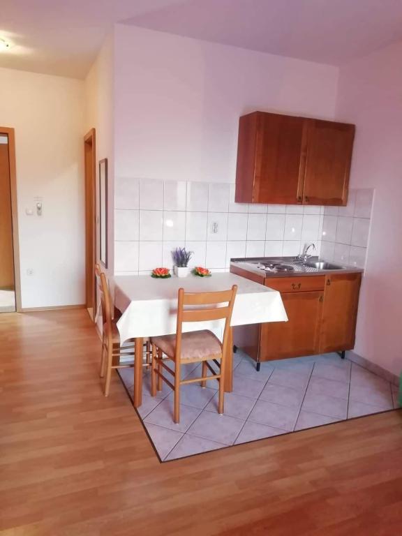 Geniet van uw zomervakantie in het prachtige stadje Krvavica, op slechts een paar minuten rijden van Makarska. Ons volledig uitgeruste appartement ligt in een rustige omgeving, niet ver van het strand, ideaal voor gezinnen en stellen. Het appartement beschikt over een keuken, airconditioning, wifi, een balkon met uitzicht en een beveiligde parkeerplaats. Boek op tijd en beleef een onvergetelijke vakantie aan de Adriatische Zee!