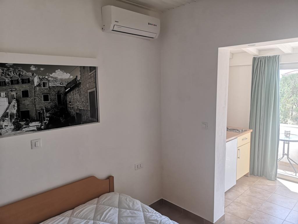 Drie Palms appartementen zijn gelegen in het kleine toeristische stad aan de Makarska Riviera, aan de voet van een berghelling. Het pand ligt op slechts 200 meter van het strand in Promajna, waar er vele restaurants en cafés. Ook het organiseren van tochten met boten naar de eilanden Brac en Hvar. Er zijn veel faciliteiten voor watersport. De stad Makarska is slechts 5 km en Baska Voda strekt promenade 3,5 km lang.