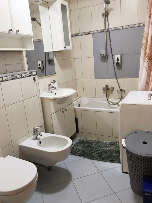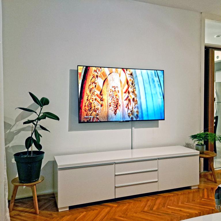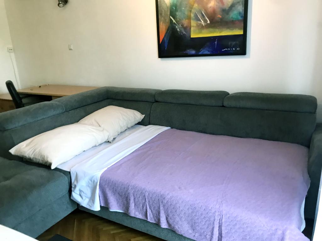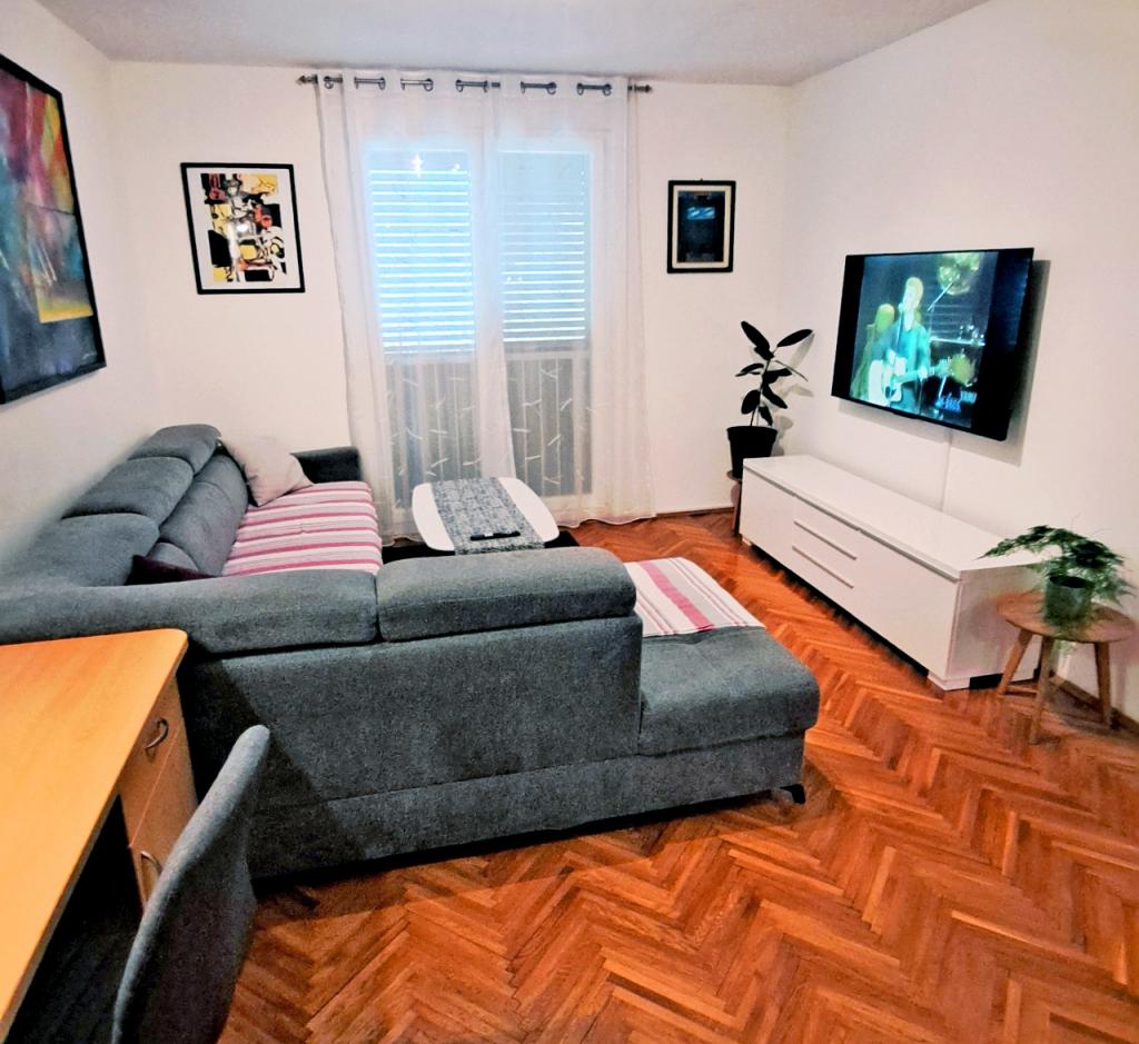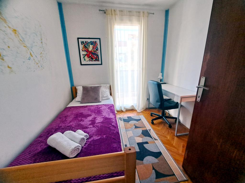 Een comfortabel, modern appartement in een rustige buurt in het centrum van Pula – een uitstekende keuze voor stellen, gezinnen tot 5 personen of zakenreizigers. Het appartement beschikt over twee slaapkamers (een tweepersoonskamer met airconditioning en een eenpersoonskamer), een woonkamer met airconditioning, een werkplek en een slaapbank die indien nodig kan worden omgebouwd tot een tweepersoonsbed. Verder is er een volledig uitgeruste keuken, een eetkamer, een badkamer met ligbad, een extra toilet en een balkon met uitzicht op het park. Het appartement is voorzien van drie smart-tv's (50", 43" en 55") en snel optisch internet, met de mogelijkheid tot een bekabelde verbinding. De stadsmarkt en het oude centrum liggen op slechts 5 minuten loopafstand en de zee op minder dan 2 km. Parkeren is mogelijk voor het gebouw. Hier vindt u de ideale combinatie van comfort, moderne voorzieningen en een fantastische locatie voor een zorgeloos verblijf en om Pula te ontdekken.