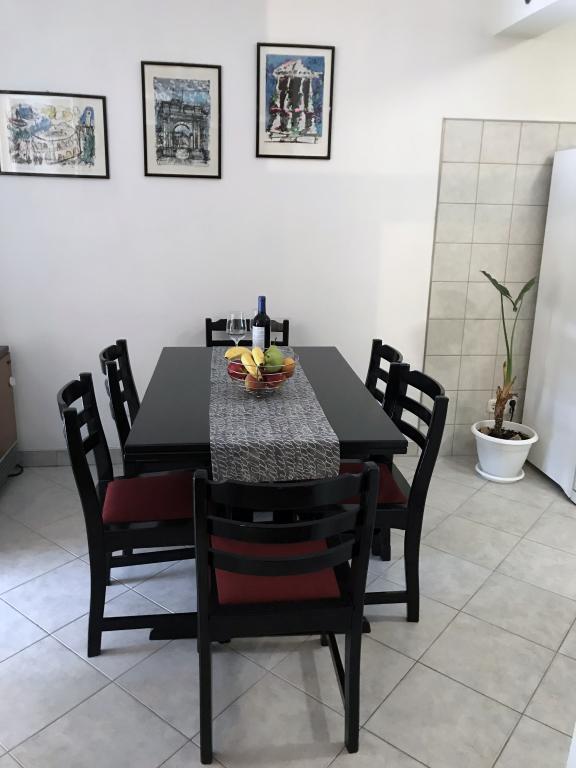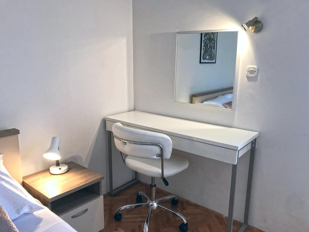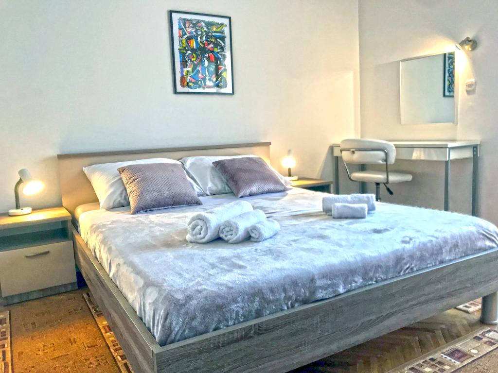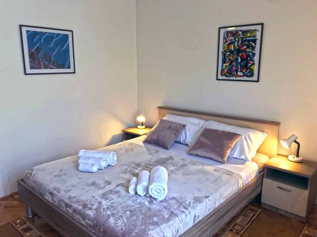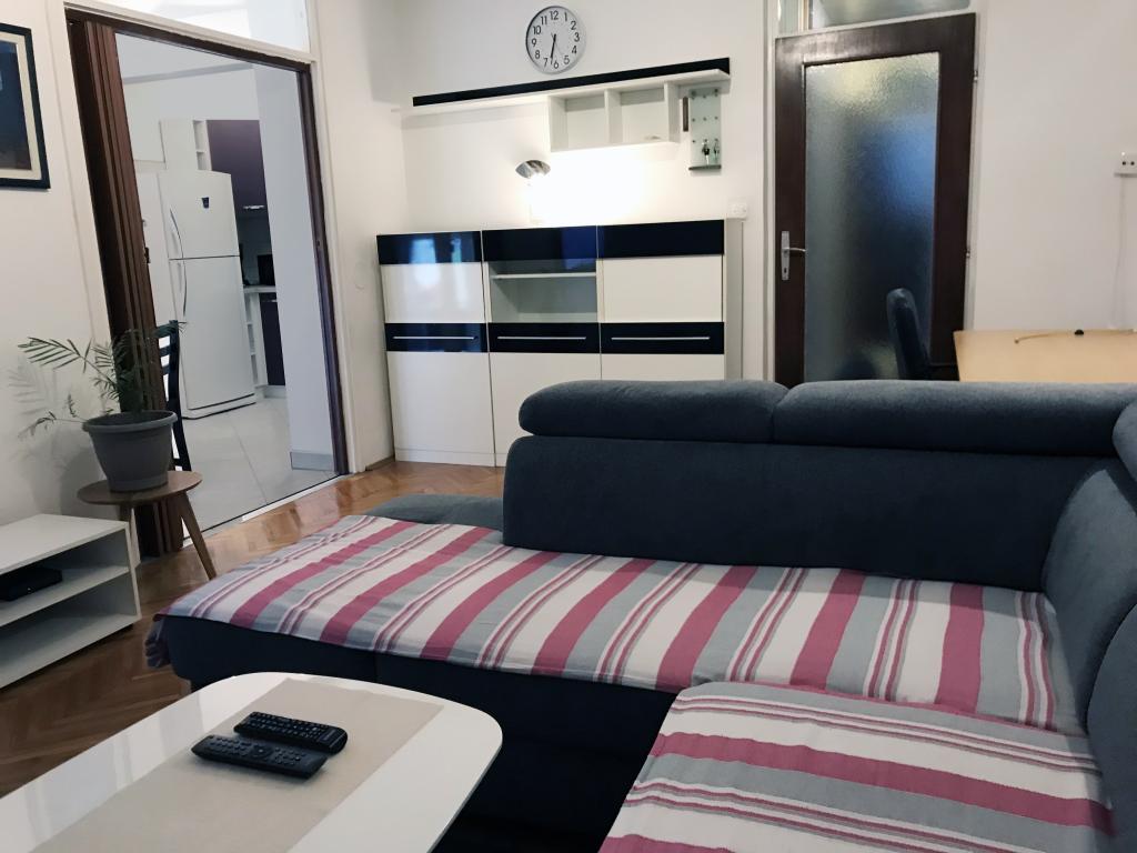 Een comfortabel, modern appartement in een rustige buurt in het centrum van Pula – een uitstekende keuze voor stellen, gezinnen tot 5 personen of zakenreizigers. Het appartement beschikt over twee slaapkamers (een tweepersoonskamer met airconditioning en een eenpersoonskamer), een woonkamer met airconditioning, een werkplek en een slaapbank die indien nodig kan worden omgebouwd tot een tweepersoonsbed. Verder is er een volledig uitgeruste keuken, een eetkamer, een badkamer met ligbad, een extra toilet en een balkon met uitzicht op het park. Het appartement is voorzien van drie smart-tv's (50", 43" en 55") en snel optisch internet, met de mogelijkheid tot een bekabelde verbinding. De stadsmarkt en het oude centrum liggen op slechts 5 minuten loopafstand en de zee op minder dan 2 km. Parkeren is mogelijk voor het gebouw. Hier vindt u de ideale combinatie van comfort, moderne voorzieningen en een fantastische locatie voor een zorgeloos verblijf en om Pula te ontdekken.