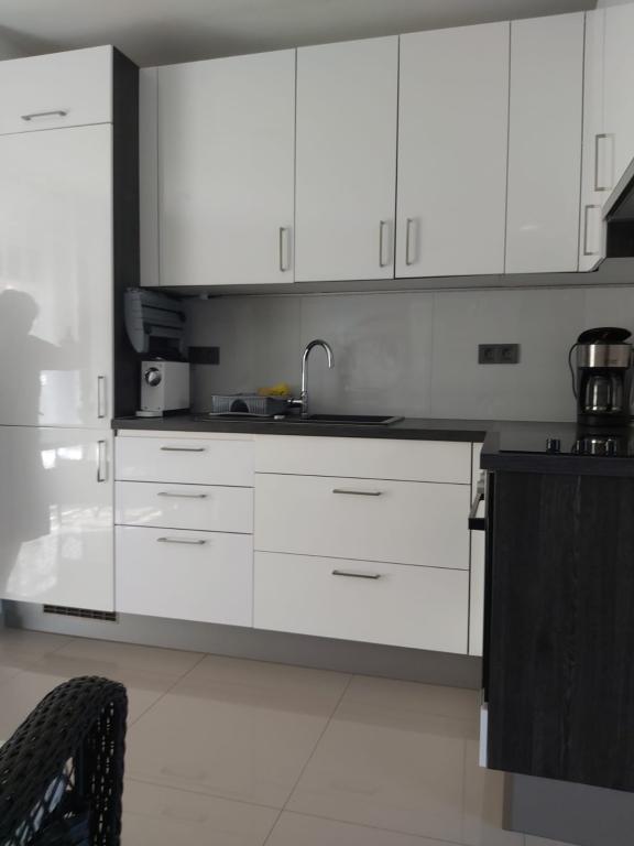 Nieuwe en modern ingerichte appartementen in een rustige omgeving, gelegen op de derde rij van de zee; De accommodatie ligt op 2 minuten lopen van het centrum en op 5 minuten lopen van het strand. Ik weet dat er langs het strand restaurants en andere voorzieningen voor gasten zijn. Met de bijbehorende apparatuur, die zich direct aan het strand bevindt, kunt u sportieve activiteiten beoefenen. En ook kindergadgets voor plezier en spel. Opmerking. 's Avonds zijn de stranden verlicht en is er een bar waar gasten kunnen ontspannen en genieten van de zee.