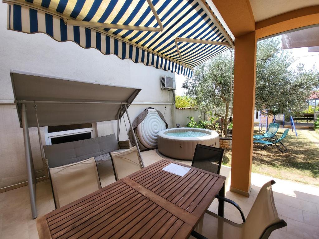 Wij bevinden ons op een rustige locatie, in het dorp Štinjan, omgeven door groen en dennenbossen. Wij hebben alle voorwaarden gecreëerd zodat u bij ons kunt ontspannen en tot rust kunt komen en de dagelijkse stress kunt vergeten :) Štinjan ligt boven de noordkust van de baai van Pula in de richting van Fažana, tegenover de Brijuni-eilanden en ligt op ongeveer 4 km van het centrum van Pula.