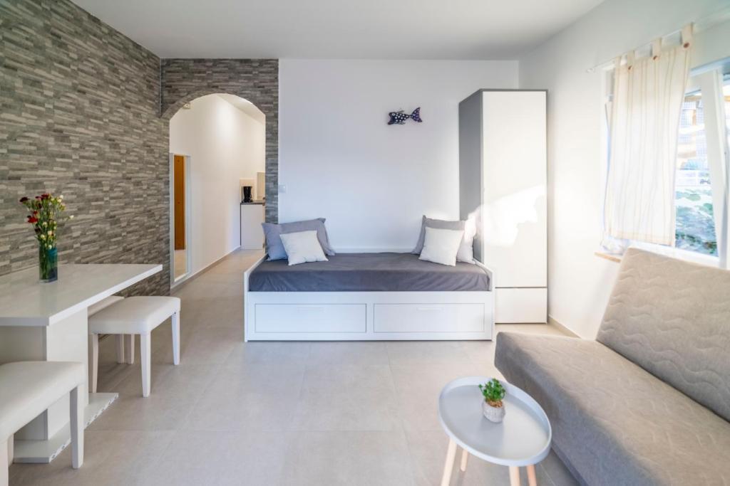 We verbleven in appartement A6 en alles was geweldig. Het appartement zelf heeft een prachtig uitzicht op zee en bij aankomst kregen we twee flessen lokale wijn. Sara was erg behulpzaam en aardig Alle aanbevelingen