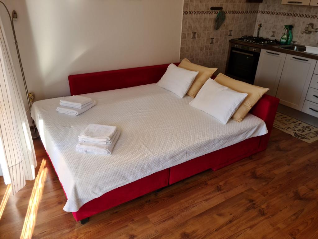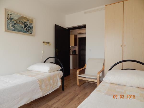 Beste gasten, Je bent welkom in mijn huishouden en in deze ongebruikelijke omstandigheden. Reis alsjeblieft zorgvuldig. De Smiljka-appartementen bevinden zich in een toeristische nederzetting op slechts een paar kilometer van het centrum van Pula en op 3 minuten lopen van een kiezelstrand. De appartementen zijn uitgerust met alles wat u nodig heeft voor een comfortabele vakantie. De appartementen zijn bijzonder geschikt voor gezinnen met kinderen vanwege de nabijheid van het strand, maar ook de rustige ligging binnen het resort. Ze zijn ook geschikt voor twee zomerfamilies samen, Aangezien er slechts twee appartementen in het gebouw zijn (elk met een aparte ingang), heeft u de mogelijkheid om sociale afstand te bewaren.