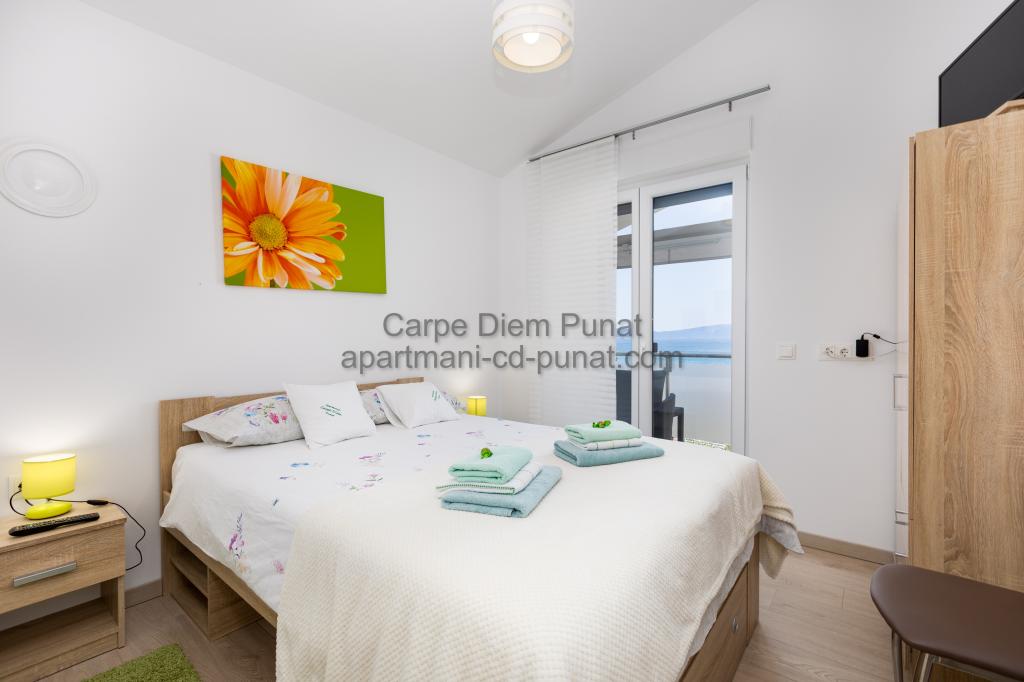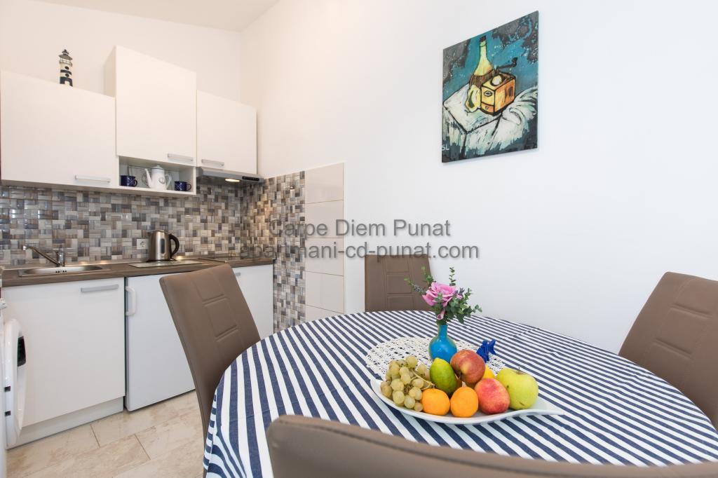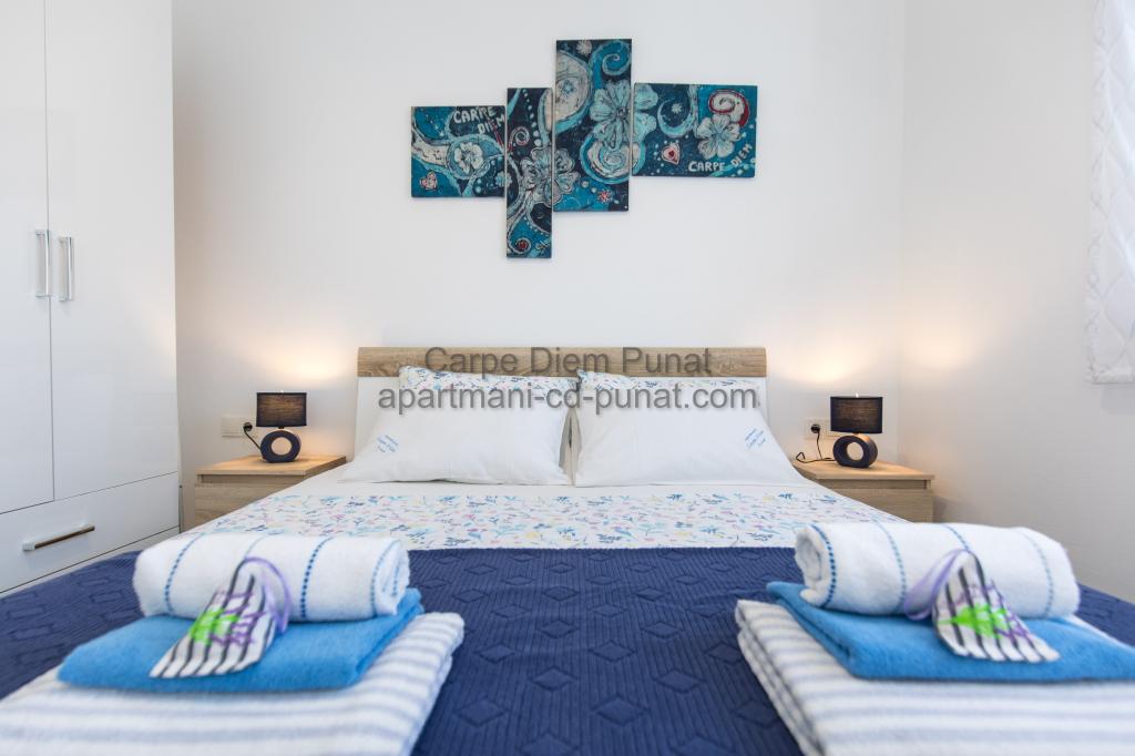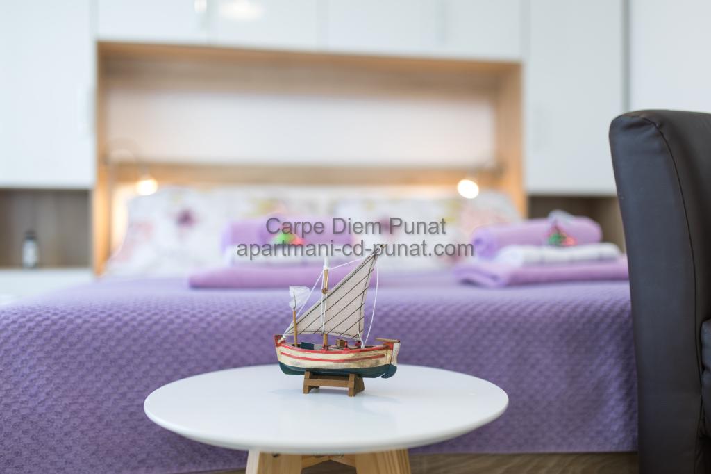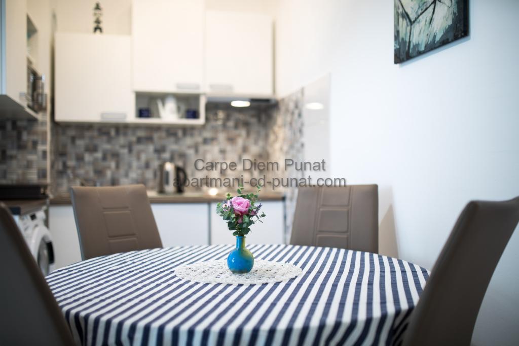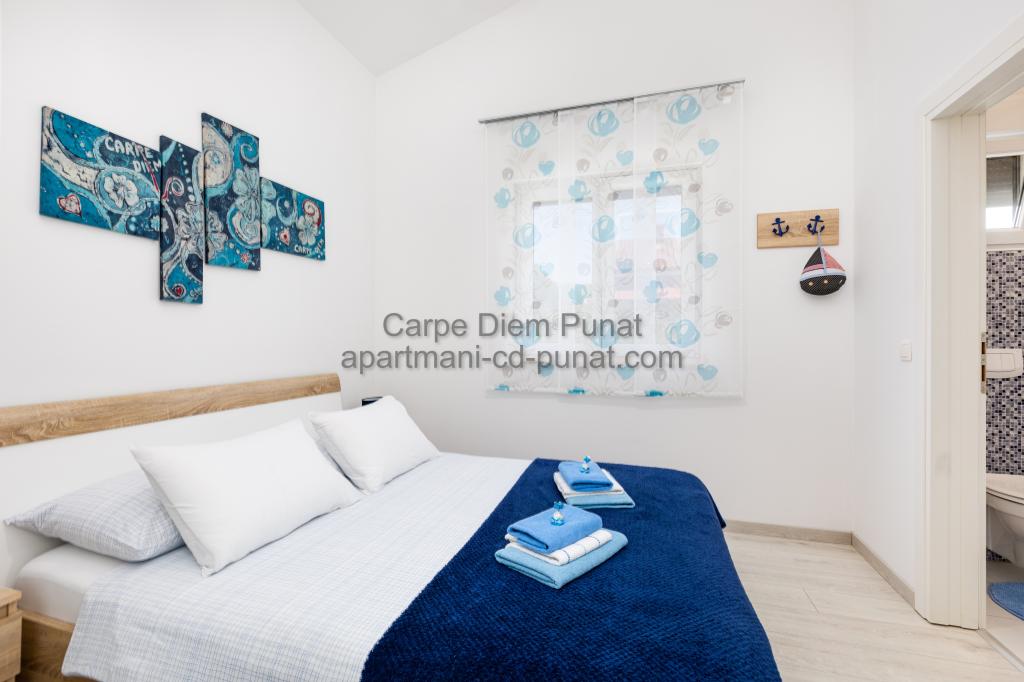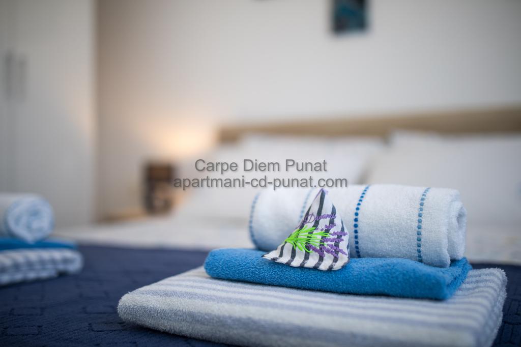 Carpe Diem appartementen zijn gelegen in het dorp Punat dicht bij de prachtige stranden Punat. Wij bieden twee suites en één kamer - de totale maximale capaciteit van 12 personen. De appartementen zijn gelegen op de eerste verdieping van een nieuw huis. Inclusief volledige keukengerei en bestek, koelkast, elektrisch fornuis, magnetron, koffiezetapparaat. Ook zijn de appartementen uitgerust met beddengoed en handdoeken. De prijs is inclusief parkeerplaats, Wi-Fi en airconditioning in alle kamers. Naar het strand heb je 40 meter of 1 minuut afstand. Een ontspannen wandeling van 15 minuten heeft u het centrum van Punat bereiken waar u winkels, apotheek, postkantoor, bank, restaurants, bakkerijen, vis en dergelijke te vinden. In de buurt van het huis is een restaurant lawaai.