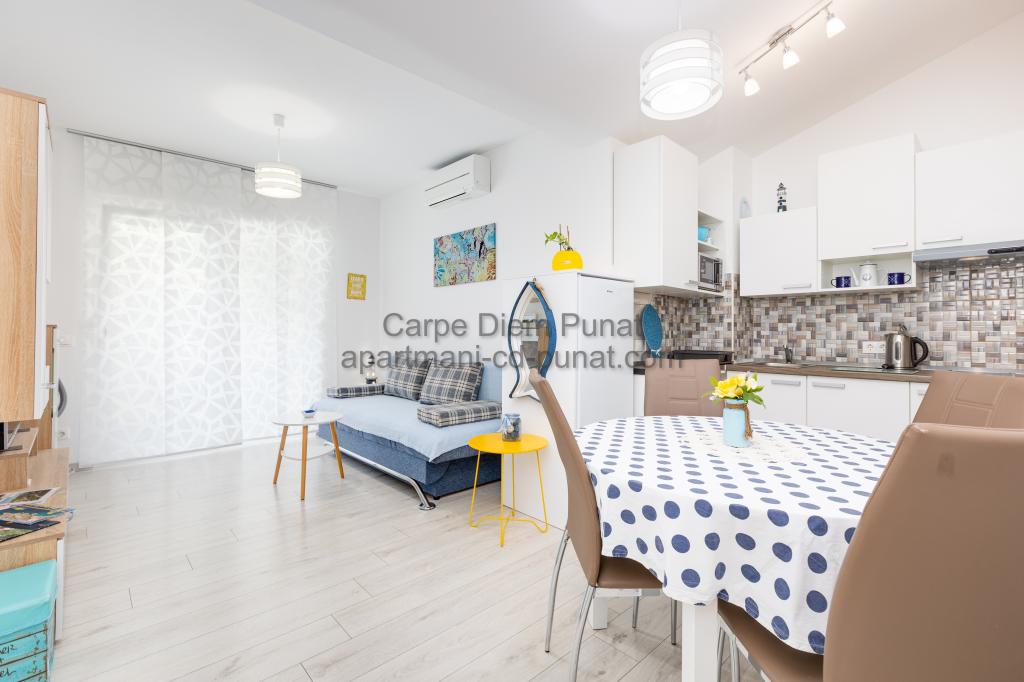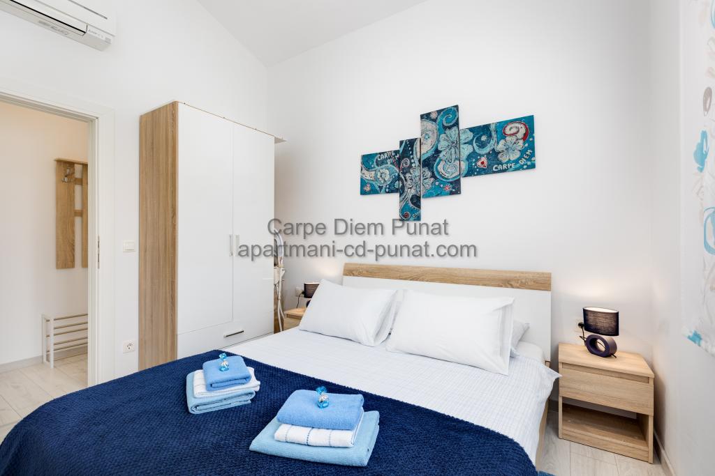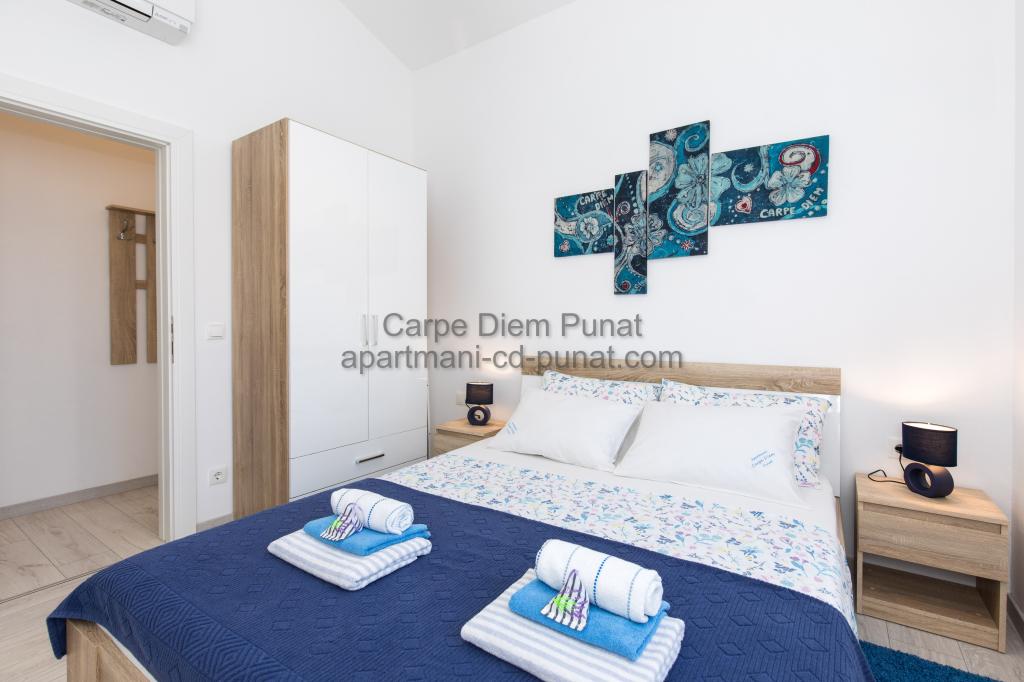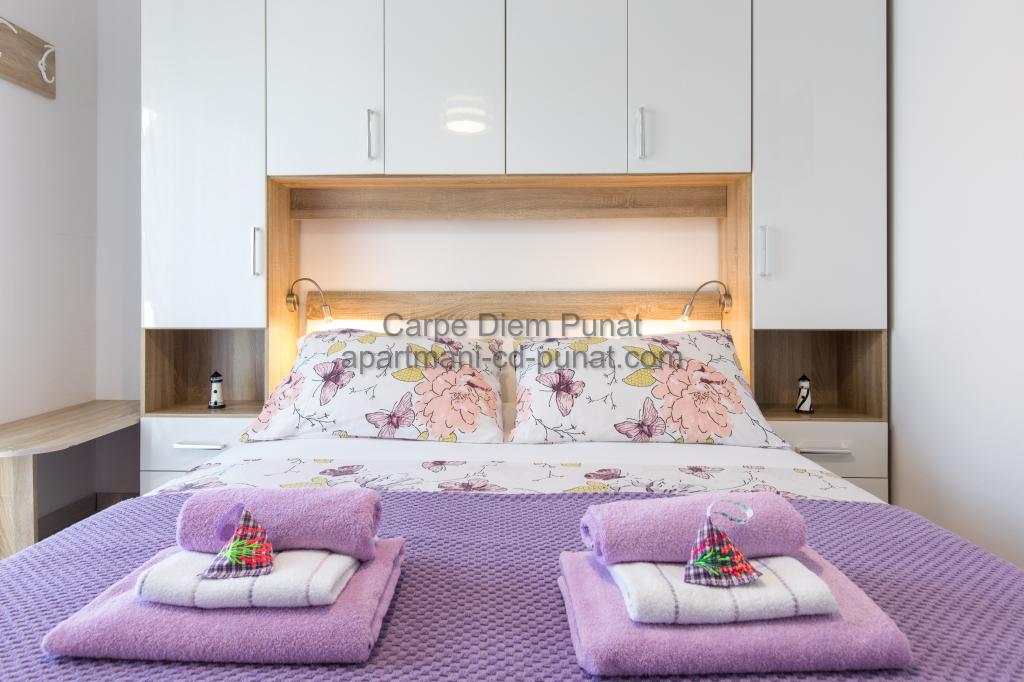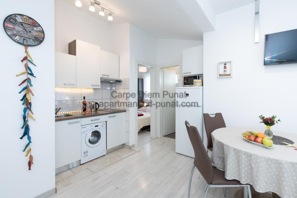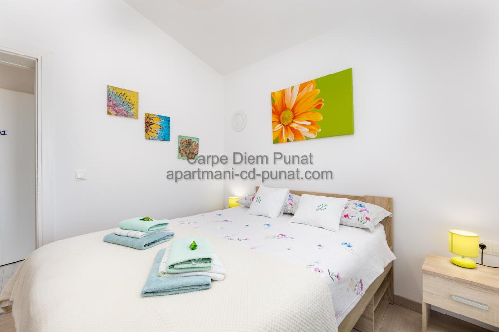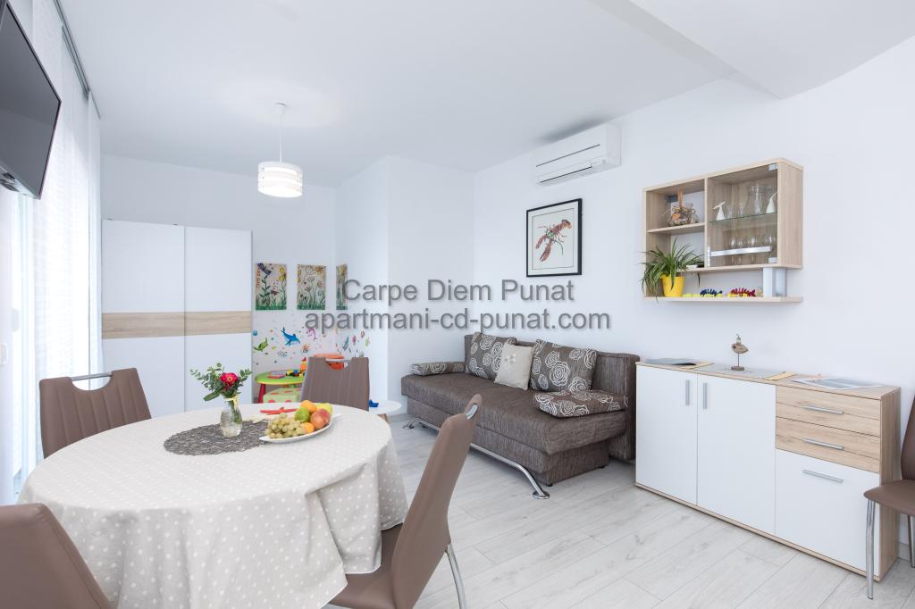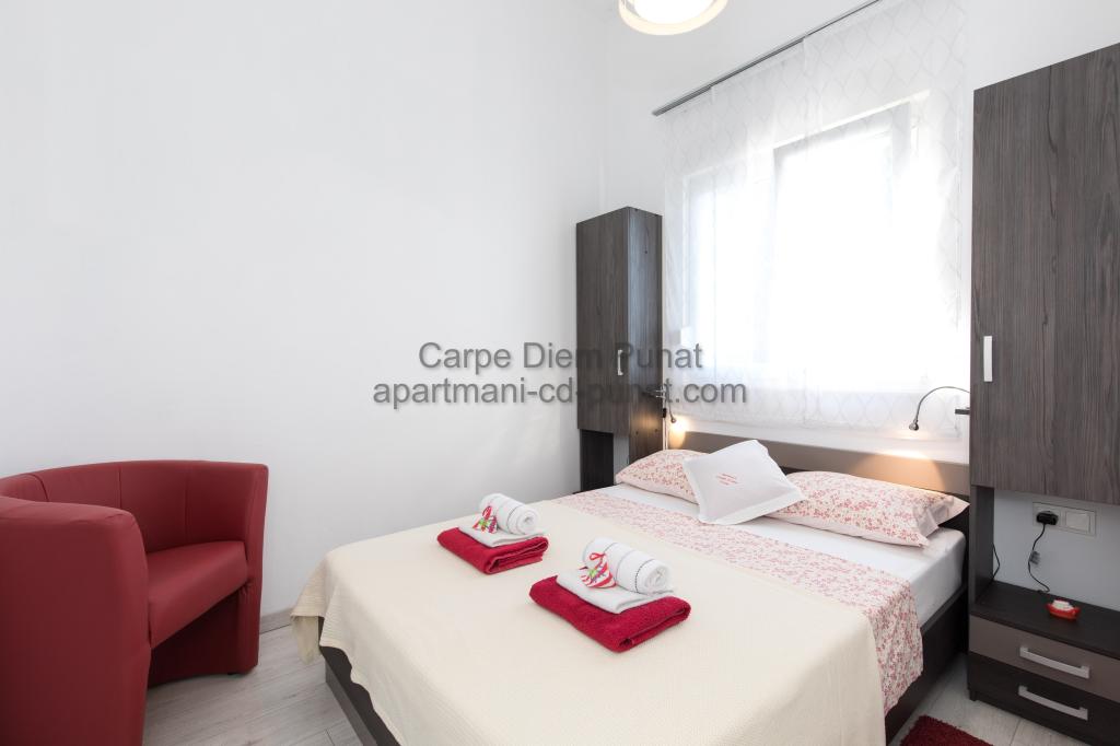 Carpe Diem appartementen zijn gelegen in het dorp Punat dicht bij de prachtige stranden Punat. Wij bieden twee suites en één kamer - de totale maximale capaciteit van 12 personen. De appartementen zijn gelegen op de eerste verdieping van een nieuw huis. Inclusief volledige keukengerei en bestek, koelkast, elektrisch fornuis, magnetron, koffiezetapparaat. Ook zijn de appartementen uitgerust met beddengoed en handdoeken. De prijs is inclusief parkeerplaats, Wi-Fi en airconditioning in alle kamers. Naar het strand heb je 40 meter of 1 minuut afstand. Een ontspannen wandeling van 15 minuten heeft u het centrum van Punat bereiken waar u winkels, apotheek, postkantoor, bank, restaurants, bakkerijen, vis en dergelijke te vinden. In de buurt van het huis is een restaurant lawaai.