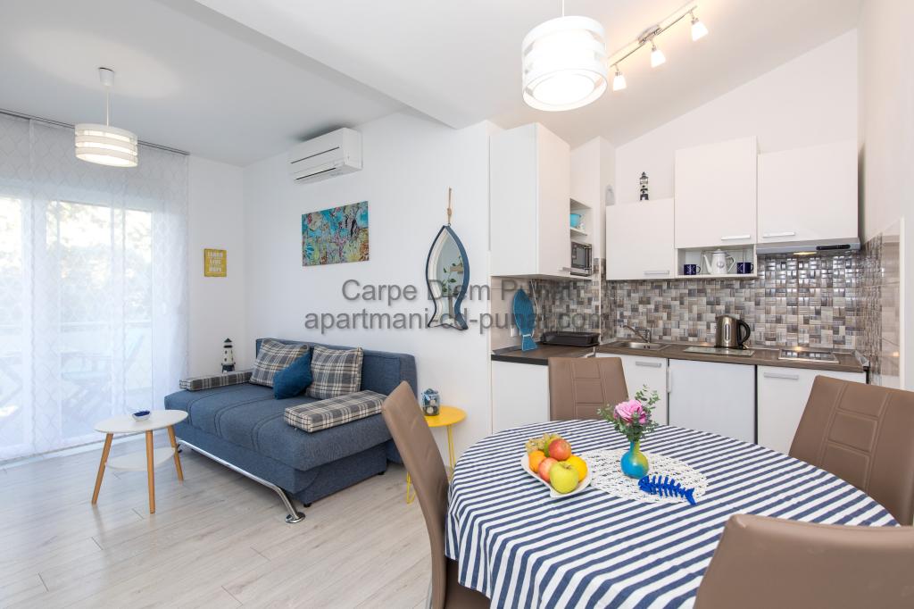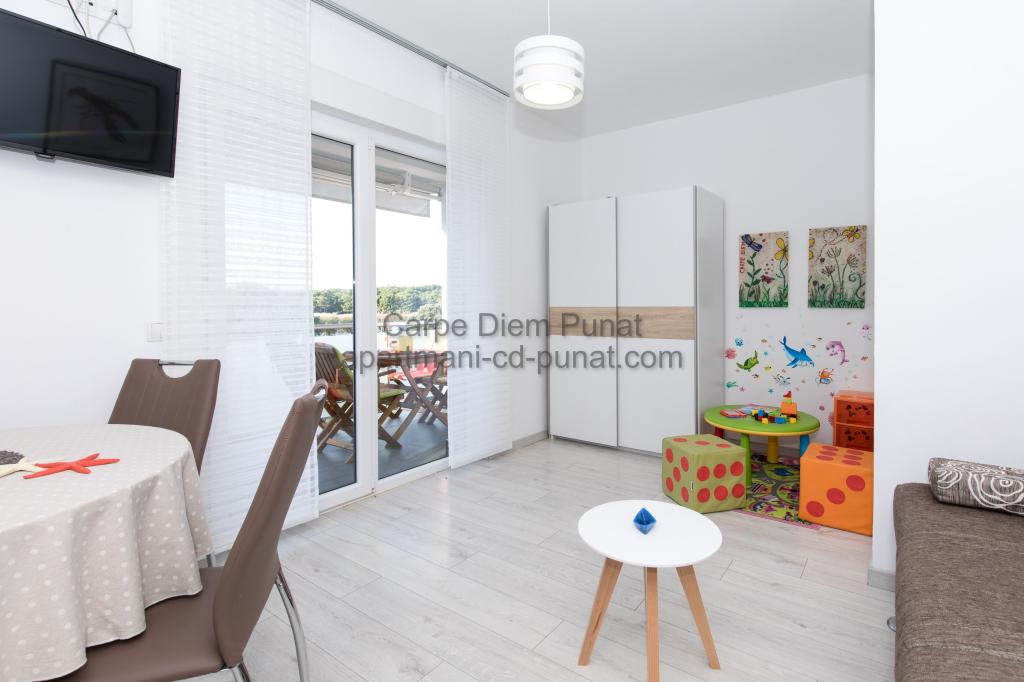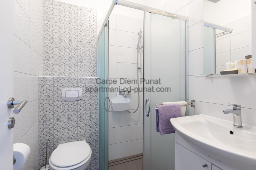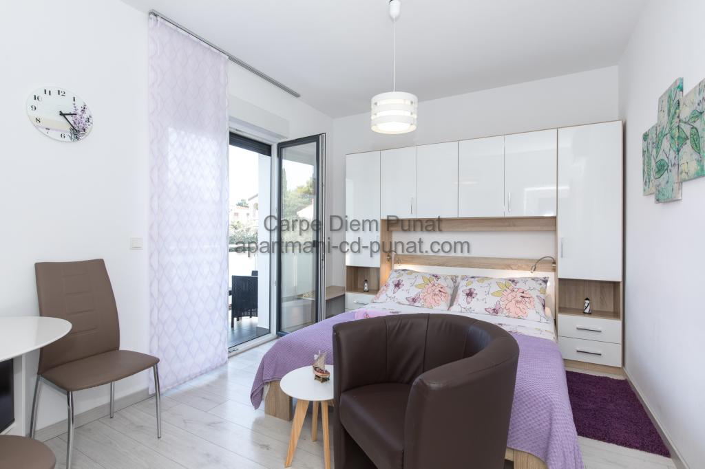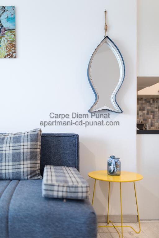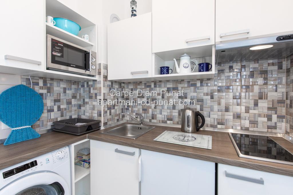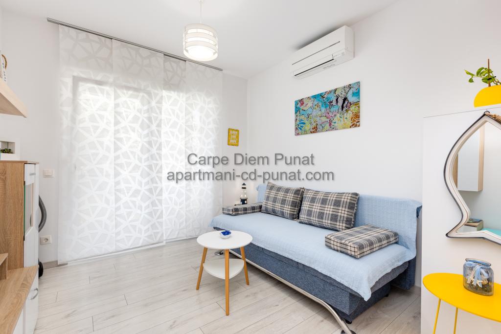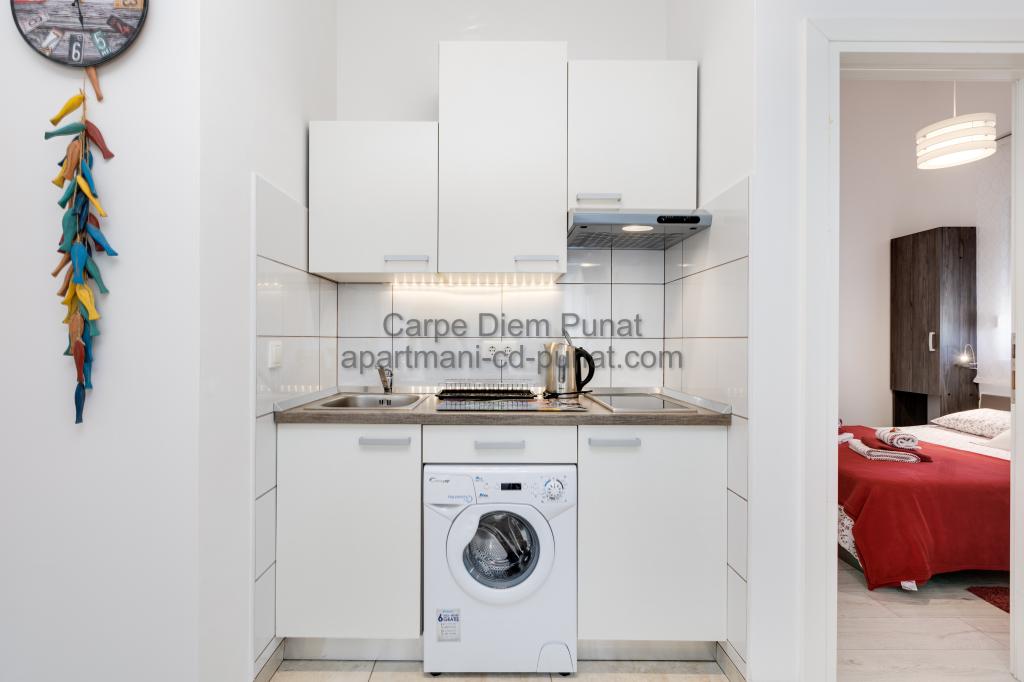 Carpe Diem appartementen zijn gelegen in het dorp Punat dicht bij de prachtige stranden Punat. Wij bieden twee suites en één kamer - de totale maximale capaciteit van 12 personen. De appartementen zijn gelegen op de eerste verdieping van een nieuw huis. Inclusief volledige keukengerei en bestek, koelkast, elektrisch fornuis, magnetron, koffiezetapparaat. Ook zijn de appartementen uitgerust met beddengoed en handdoeken. De prijs is inclusief parkeerplaats, Wi-Fi en airconditioning in alle kamers. Naar het strand heb je 40 meter of 1 minuut afstand. Een ontspannen wandeling van 15 minuten heeft u het centrum van Punat bereiken waar u winkels, apotheek, postkantoor, bank, restaurants, bakkerijen, vis en dergelijke te vinden. In de buurt van het huis is een restaurant lawaai.