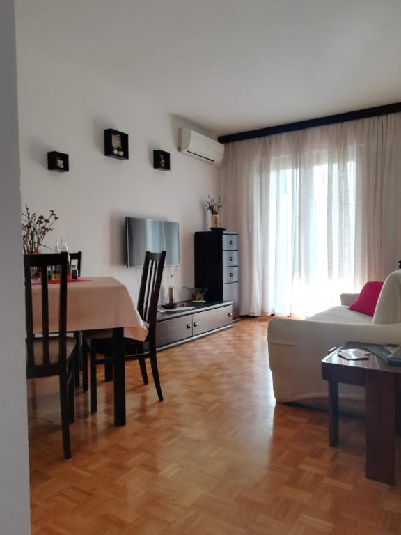 We brachten 3 dagen door met de lieve mevrouw Dragana in twee gezinnen (4 volwassenen en twee kinderen). We hebben 2 sets sleutels ontvangen en een mooi compliment. Alles was in goede staat, er was voldoende bestek en ander keukenmateriaal, waaronder een koffiezetapparaat, potten en pannen (bekrast uiteraard, zoals overal, want ze zijn alleen in goede staat voor het eerste gebruik door onbewuste toeristen, dus ik raad aan u brengt deze zelf mee). De airconditioner werkte goed. We gebruikten ook de wasmachine en Smart TV (niet alleen de lokale). Alleen Wi-Fi had af en toe een zwak signaal. Het was schoon, er waren voldoende handdoeken en we hebben prima geslapen. U kunt op het balkon of buiten eten. 8 minuten lopen naar het strand en 8 minuten lopen naar de grotere winkel. Het contact voor en na het boeken verliep snel en gemakkelijk. Ik raad het ten zeerste aan!
