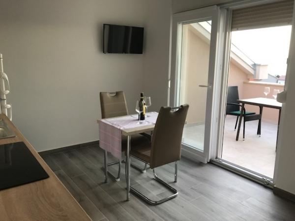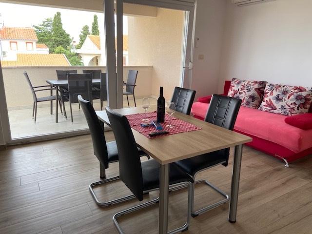 Het appartement en het hele huis zijn zeer netjes. Alles is nieuw en schoon, het appartement heeft alles wat je nodig hebt, van afwas tot handzeep, borstel, bezem ... Het terras is super praktisch. Het strand en het stadscentrum zijn vlakbij. We hadden ook een plek om de fietsen op te ruimen. Mevr. Mirjana is geweldig, ze heeft ons netjes ontvangen.