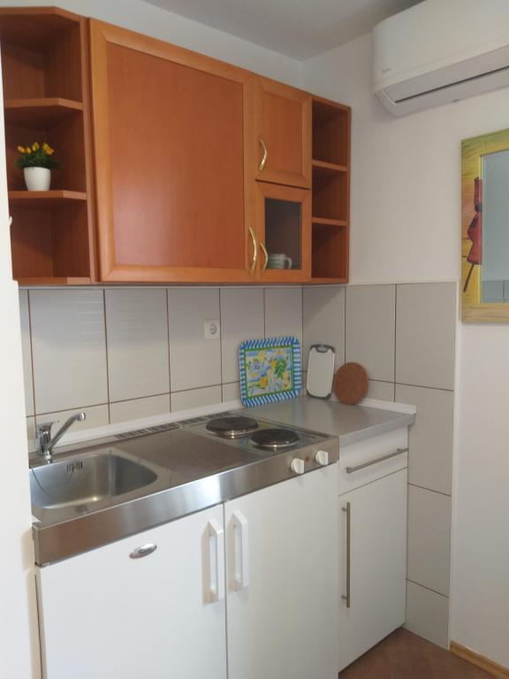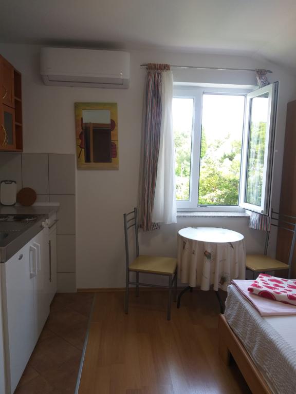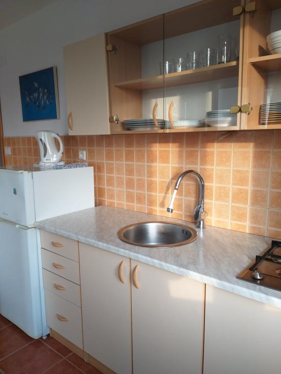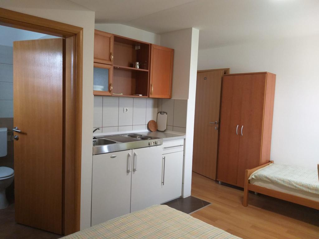 Apartments Ivo, appartementen van de familie Pravica, categorie 3*** of 4****, nieuw gebouwd, modern ingericht en elk appartement beschikt over airconditioning en internettoegang. Zeezicht, op twee minuten loopafstand van het strand, beveiligde parkeerplaats voor een auto op het terrein in de schaduw, omgeven door groen. Apartments Ivo biedt accommodatie in volledig uitgeruste appartementen. Het grote appartement heeft 2+2 bedden in de slaapkamer en woonkamer. Het appartement heeft ook een keuken, eetkamer en badkamer met toilet. Andere appartementen bieden accommodatie voor 2 personen met een extra bed, naast een keuken en badkamer met toilet. De grote appartementen hebben een terras met zeezicht.