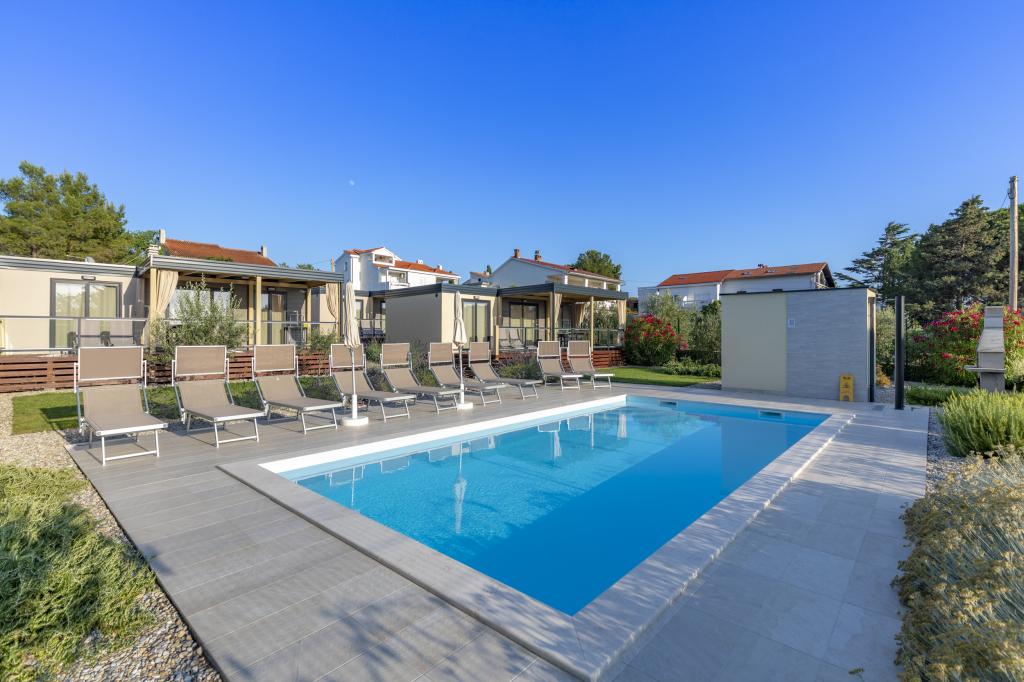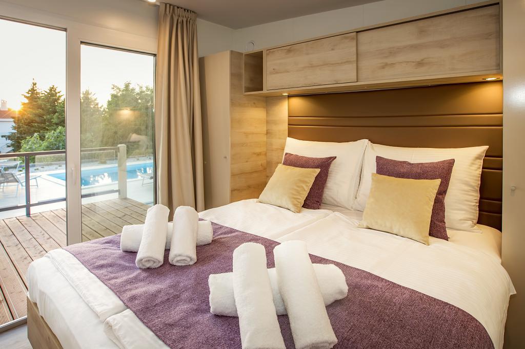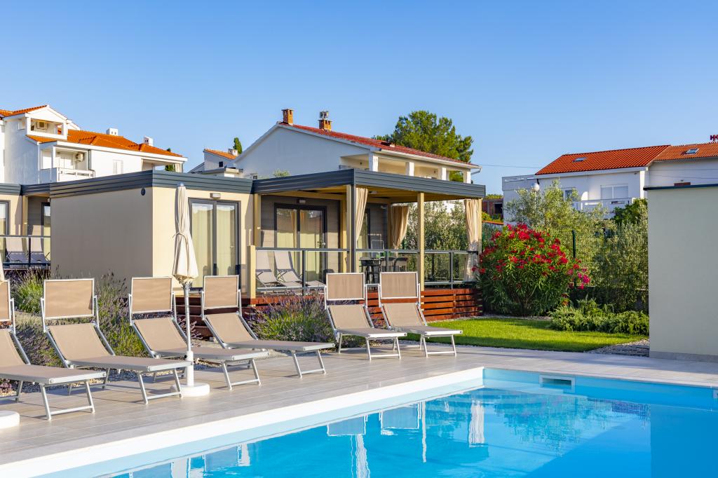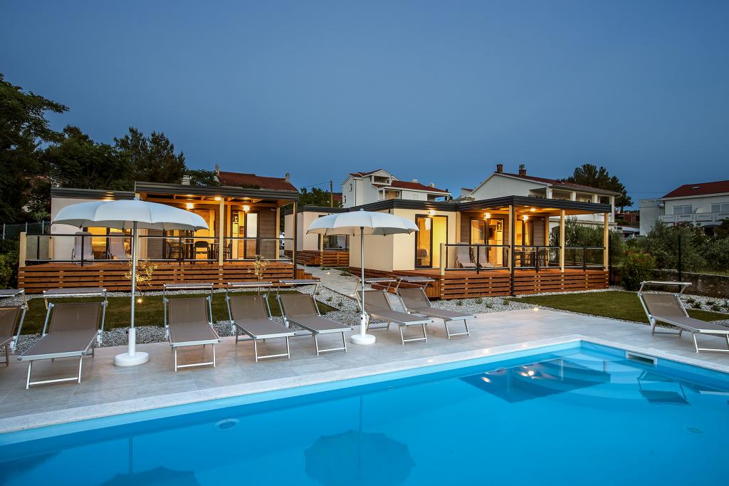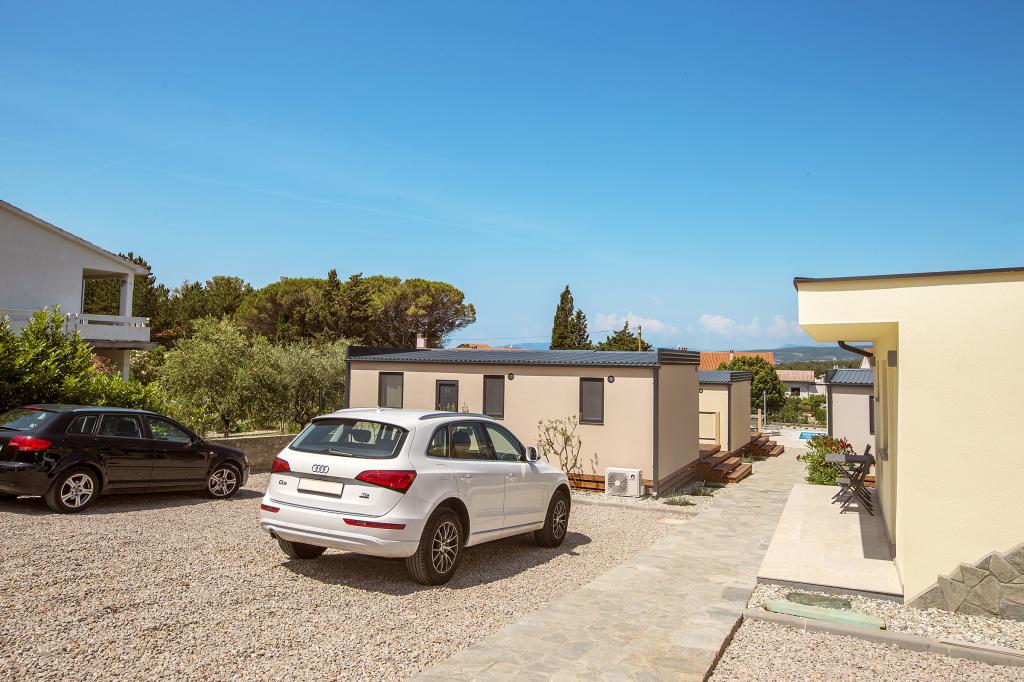Stacaravans "Sanmar" bevinden zich in Punt op een perceel van 900m2 omgeven door mediterraan groen, op slechts enkele minuten lopen van het kiezelstrand. Accommodatie wordt aangeboden in drie moderne stacaravans, die elk geschikt zijn voor 4 personen plus twee kinderen op een extra bed. De huizen hebben twee slaapkamers, de kamer met tweepersoonsbed heeft een eigen badkamer, er is ook de mogelijkheid van een extra bed voor twee kinderen op de slaapbank in de woonkamer. De keuken is uitgerust met servies en keukenapparatuur. Elke stacaravan heeft in totaal twee badkamers met douche en gedeeltelijk overdekt terras van 20m2. De stacaravans zijn voorzien van airconditioning, satelliet-tv en draadloos internet. Gasten hebben de beschikking over een gedeeld zwembad (8x4m), ligstoelen bij het zwembad, parkeerplaats, fietsenrek, gedeelde barbecue en het gebruik van een wasmachine (op aanvraag). Sanmar Complex is de perfecte plek voor een rustige vakantie met het gezin!