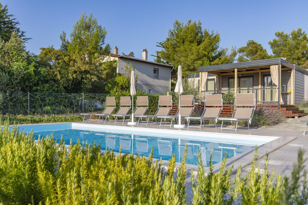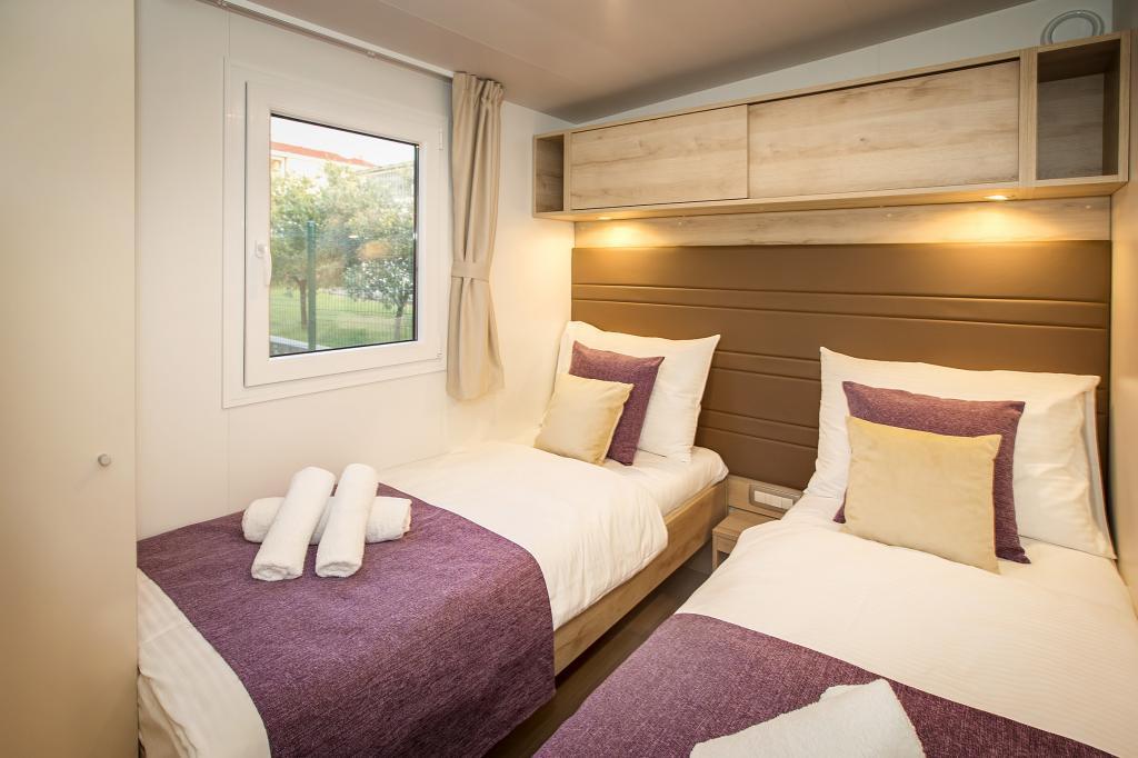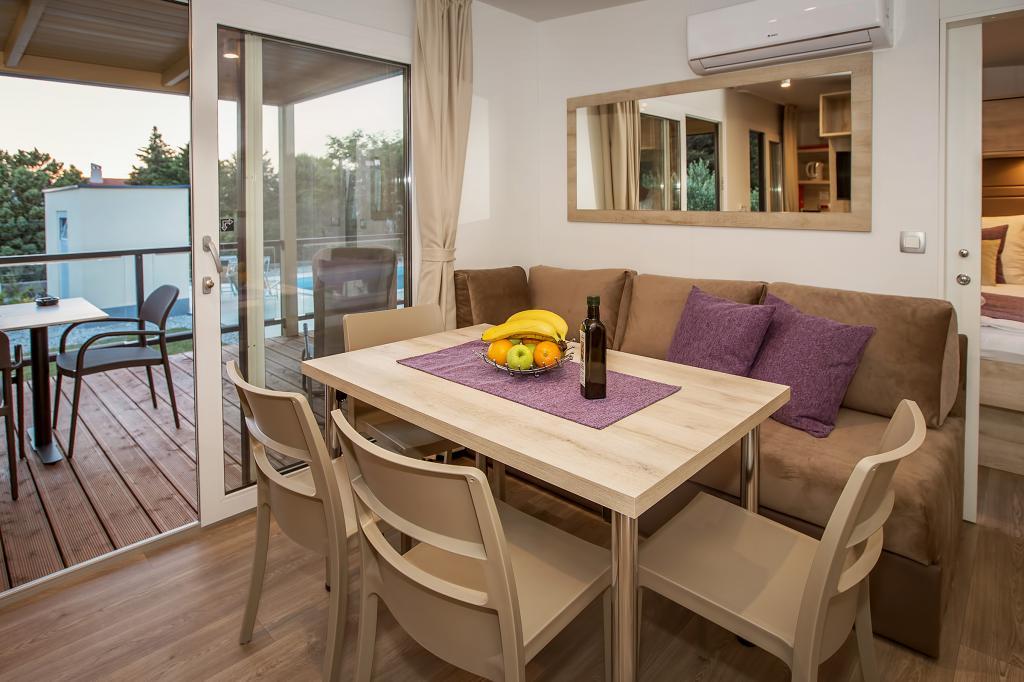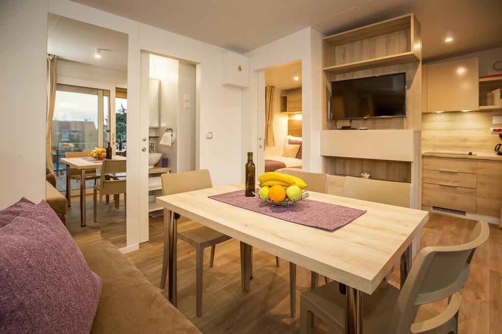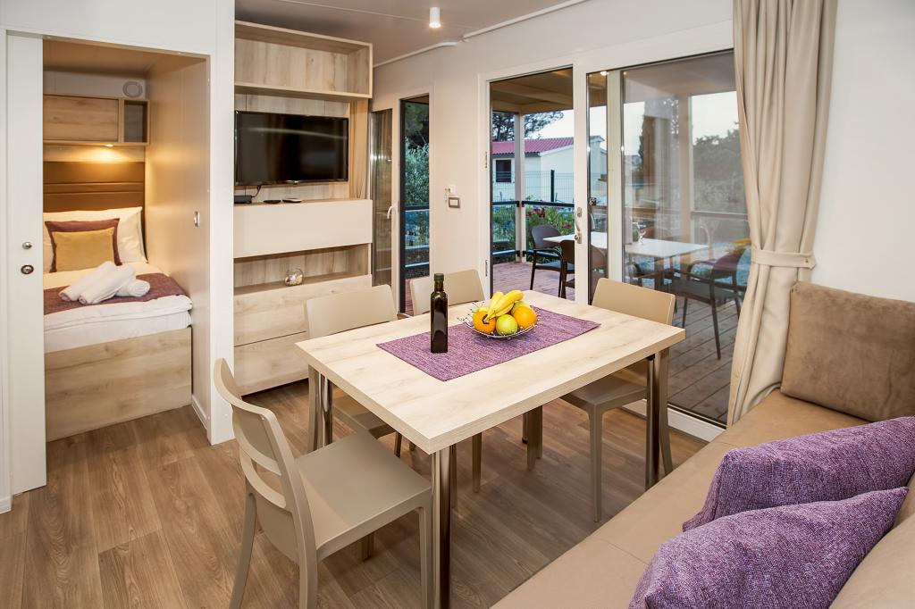 Stacaravans "Sanmar" bevinden zich in Punt op een perceel van 900m2 omgeven door mediterraan groen, op slechts enkele minuten lopen van het kiezelstrand. Accommodatie wordt aangeboden in drie moderne stacaravans, die elk geschikt zijn voor 4 personen plus twee kinderen op een extra bed. De huizen hebben twee slaapkamers, de kamer met tweepersoonsbed heeft een eigen badkamer, er is ook de mogelijkheid van een extra bed voor twee kinderen op de slaapbank in de woonkamer. De keuken is uitgerust met servies en keukenapparatuur. Elke stacaravan heeft in totaal twee badkamers met douche en gedeeltelijk overdekt terras van 20m2. De stacaravans zijn voorzien van airconditioning, satelliet-tv en draadloos internet. Gasten hebben de beschikking over een gedeeld zwembad (8x4m), ligstoelen bij het zwembad, parkeerplaats, fietsenrek, gedeelde barbecue en het gebruik van een wasmachine (op aanvraag). Sanmar Complex is de perfecte plek voor een rustige vakantie met het gezin!