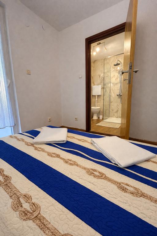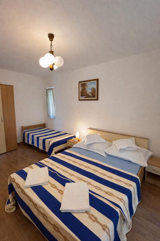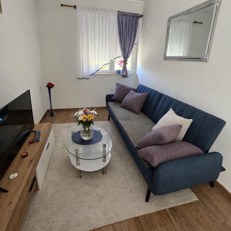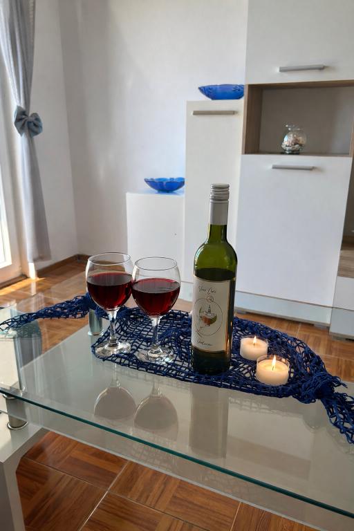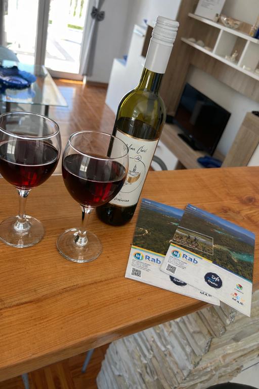 Appartementen "Kirinec" zijn gelegen in Banjol op het eiland Rab. Het huis ligt in een dennenbos, op een heuvel met een prachtig uitzicht op de zee. Als je echt een echte vakantie wilt, zonder lawaai, stress en drukte, dan is dit de ideale plek voor jou.