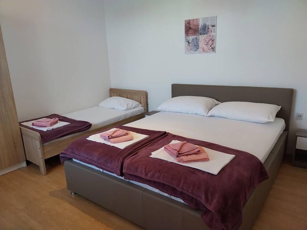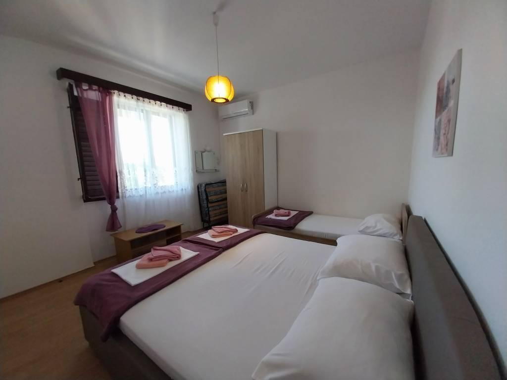 Wij zijn gelegen nabij de baai Padova III op het eiland Rab. Wij bieden onze gasten accommodatie in appartementen in een huis op ongeveer tien meter van de zee. Boven het zandstrand bevindt zich ons privéterras met ligstoelen en vanaf de balkons van alle appartementen heeft u een prachtig uitzicht op zee. Op de binnenplaats onder de olijfbomen hebben gasten de beschikking over een grote barbecue en een eettafel, evenals schommels en een glijbaan voor kinderen, evenals een tafeltennistafel. Wij verheugen ons op uw komst en wensen u een aangenaam verblijf.