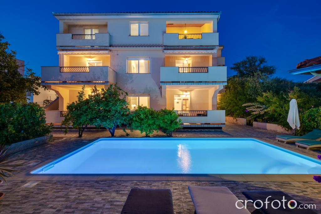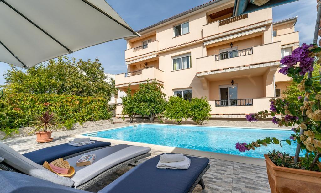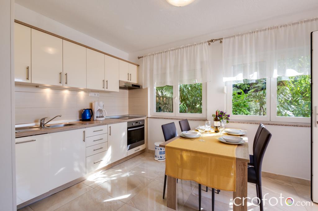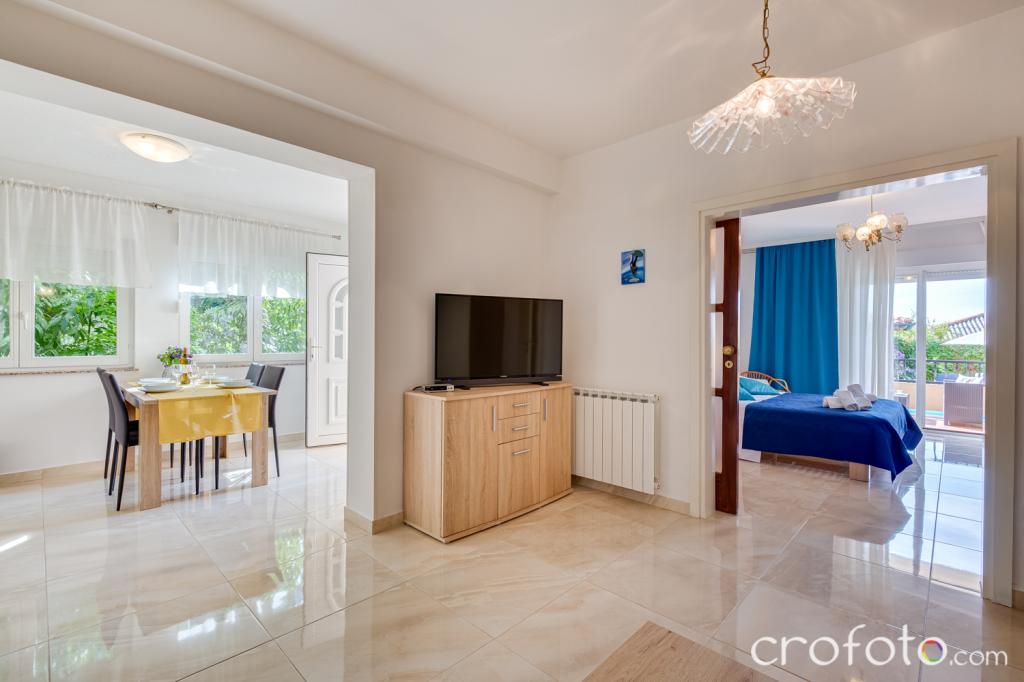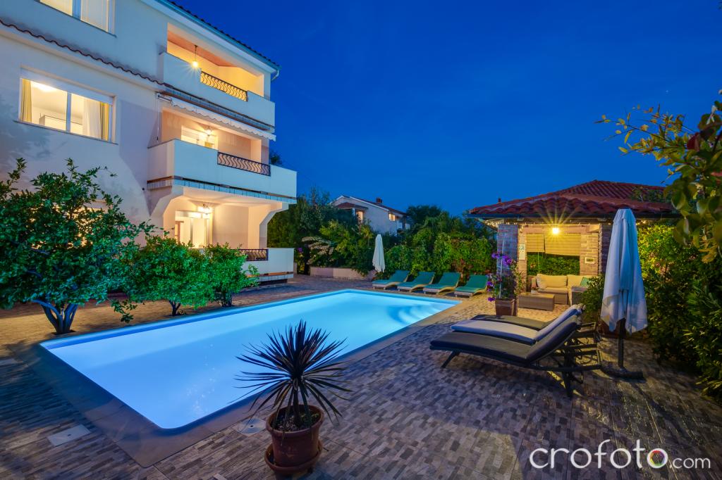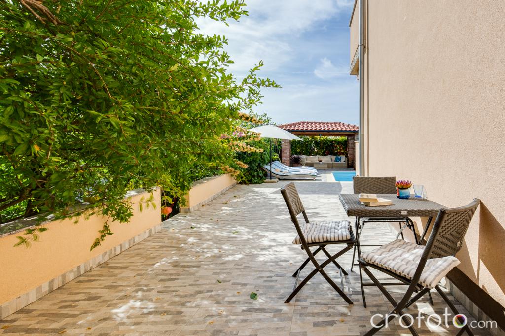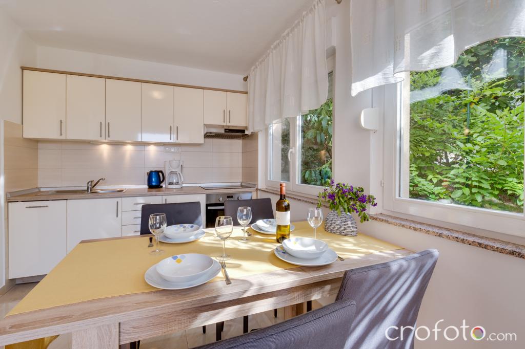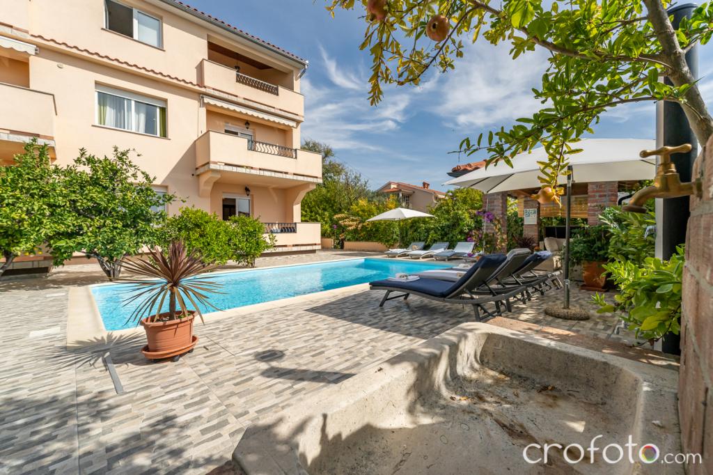 Appartementencomplex JuriĆ heeft een uitstekende ligging, dicht bij het centrum en de beste restaurants, vlakbij de zee en het park. Wat echt een pluspunt is, is de rustige locatie, ver weg van de drukte, met een eigen zwembad en tuin met een apart prieel met open haard en een grote tafel, die we graag ter beschikking stellen aan onze gasten. De aangenaam ingerichte en gemeubileerde omgeving rond het zwembad, met comfortabele zitjes in de schaduw van het gezellige prieel, comfortabele ligstoelen en weelderig groen, draagt bij aan de sfeer. In de tuin zorgen olijfbomen, mediterrane kruiden, sierplanten en bloemen voor een bijzondere ambiance. De sfeer is zeer aangenaam, perfect voor een rustige vakantie en ontspanning.