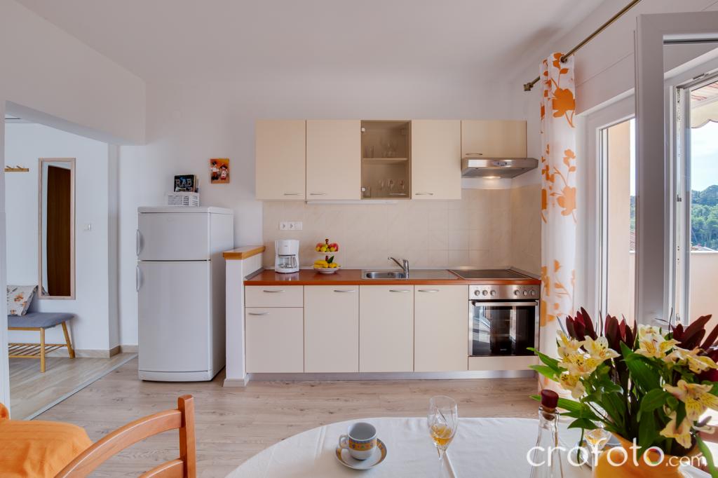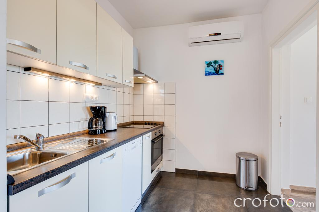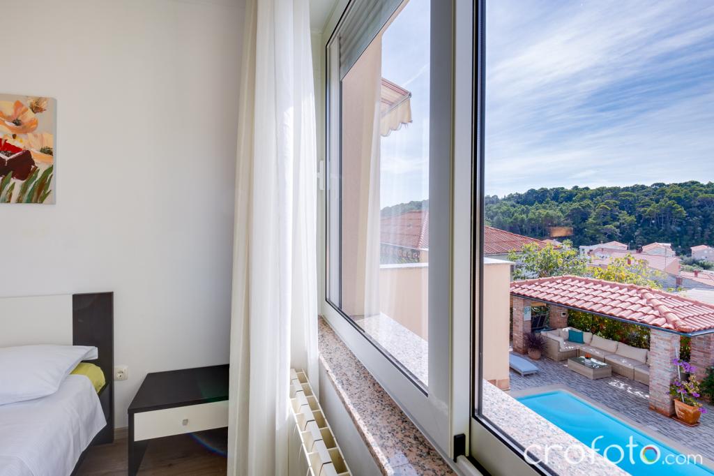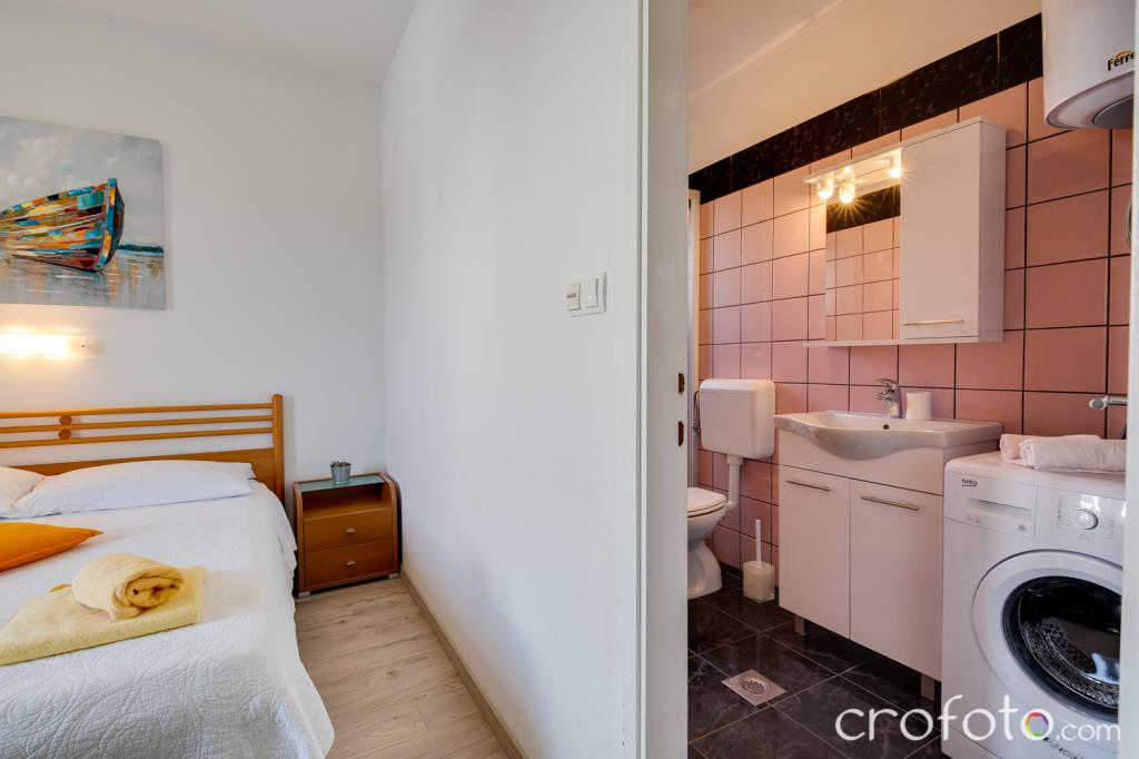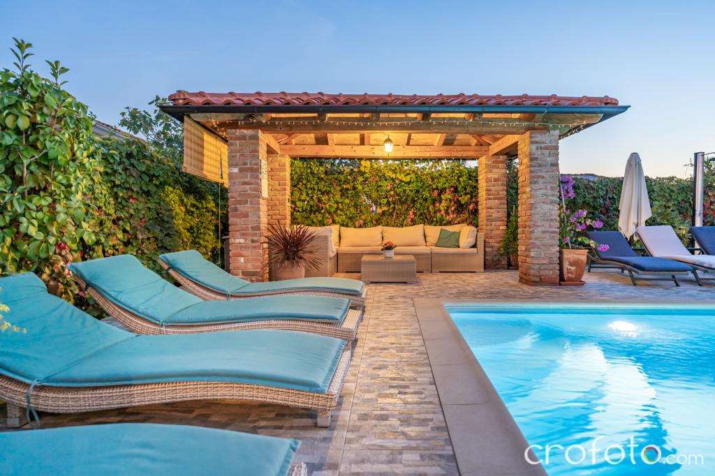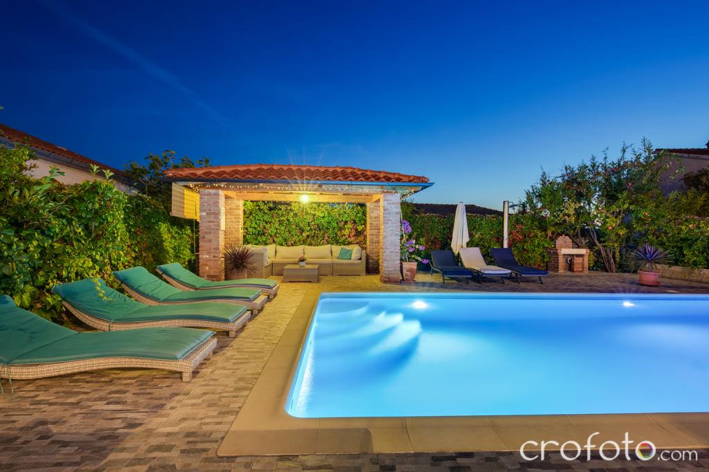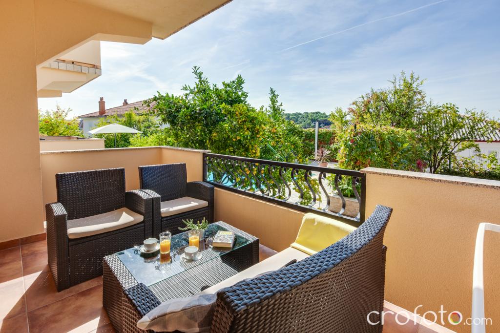 Appartementencomplex JuriĆ heeft een uitstekende ligging, dicht bij het centrum en de beste restaurants, vlakbij de zee en het park. Wat echt een pluspunt is, is de rustige locatie, ver weg van de drukte, met een eigen zwembad en tuin met een apart prieel met open haard en een grote tafel, die we graag ter beschikking stellen aan onze gasten. De aangenaam ingerichte en gemeubileerde omgeving rond het zwembad, met comfortabele zitjes in de schaduw van het gezellige prieel, comfortabele ligstoelen en weelderig groen, draagt bij aan de sfeer. In de tuin zorgen olijfbomen, mediterrane kruiden, sierplanten en bloemen voor een bijzondere ambiance. De sfeer is zeer aangenaam, perfect voor een rustige vakantie en ontspanning.