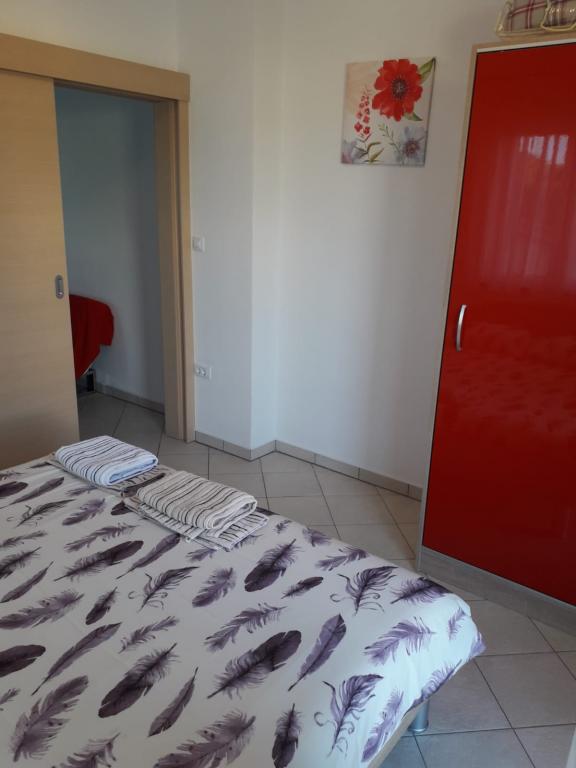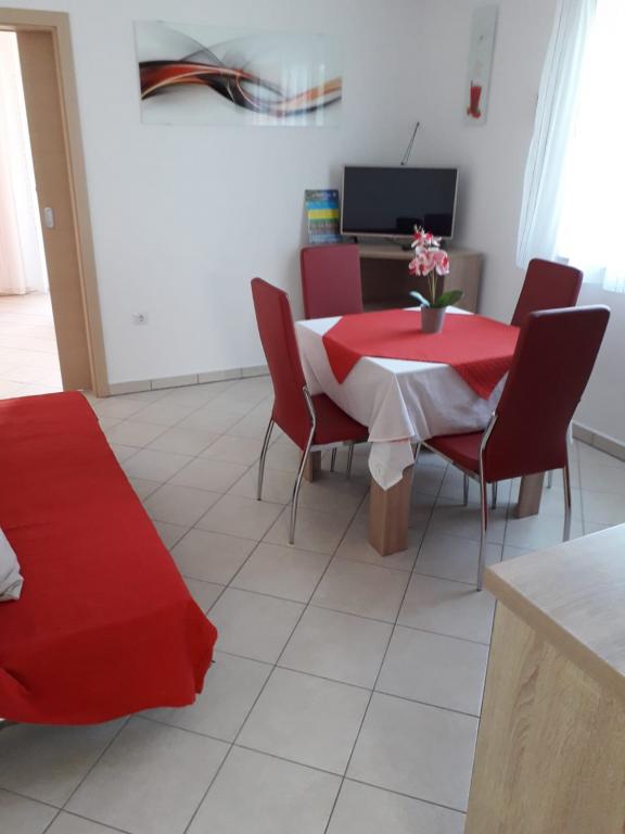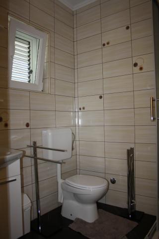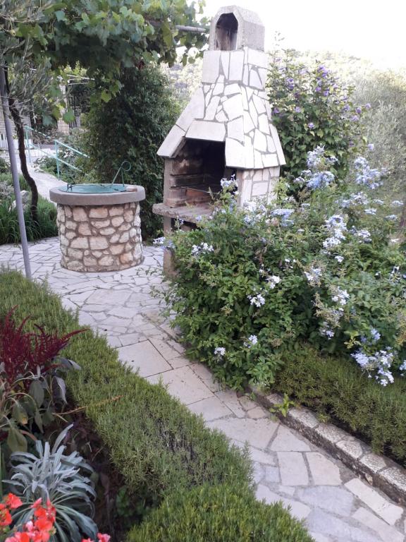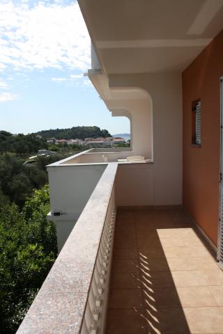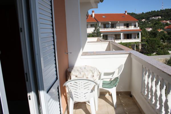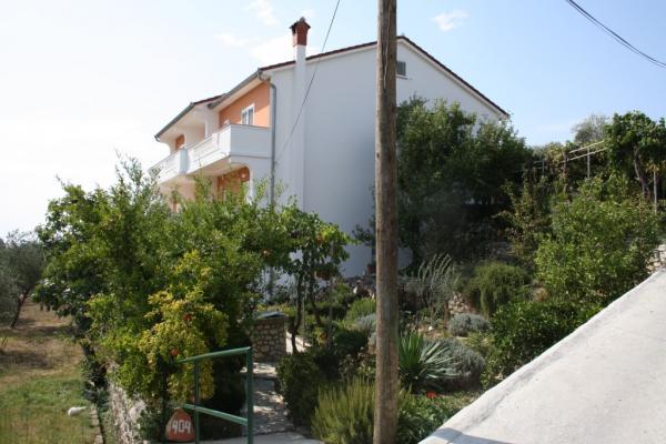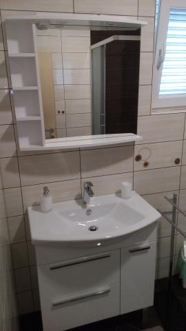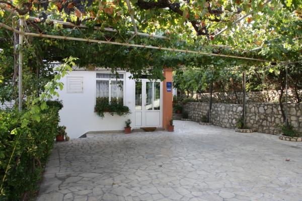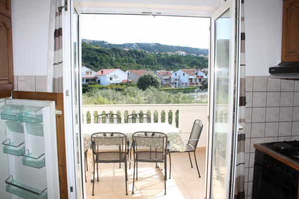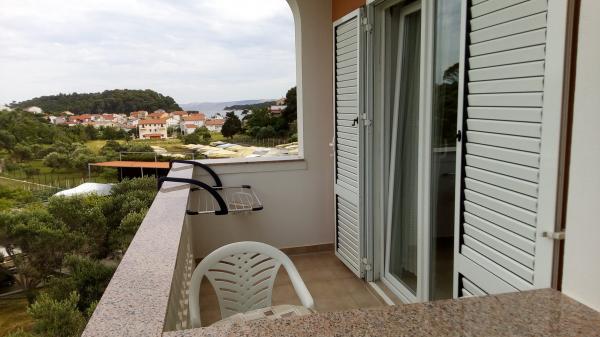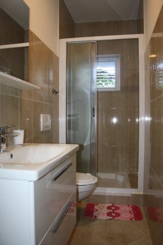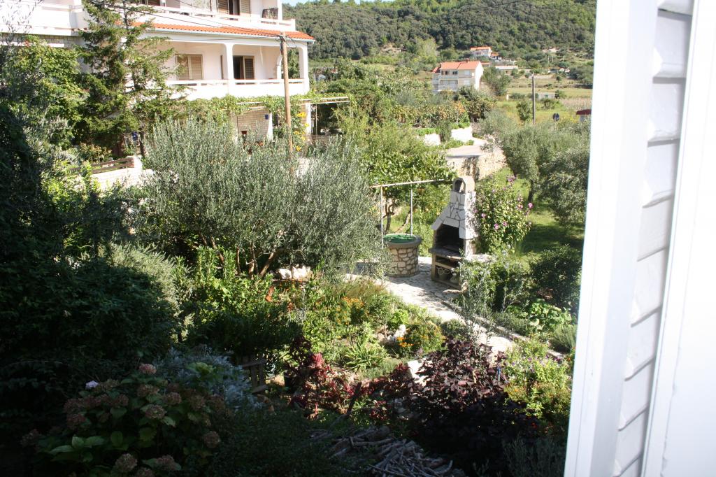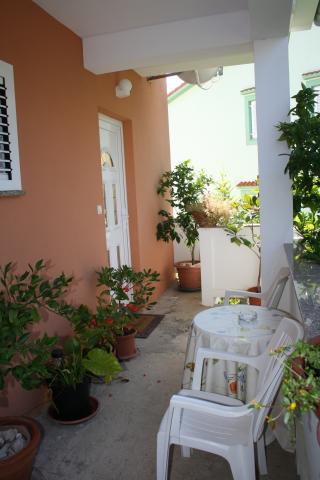 Wij verbleven in een appartement op de begane grond met één slaapkamer. Het appartement is netjes, het terras ligt de hele dag in de schaduw en biedt uitzicht op de olijfgaard. Een prettig appartement, we hadden geen airconditioning nodig. De gastheren waren vriendelijk en toegankelijk, we werden verwelkomd met een zelfgemaakte Rab-cake en omdat ik dol ben op vijgen, plukte mijn tante ze voor me. Ik raad aan