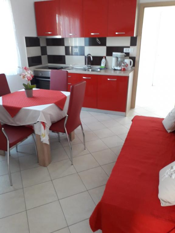 De eerste keer dat we op Rab waren, maar zeker niet de laatste, Rab is prachtig, maar we waren blij met de benadering en gastvrijheid van de gastheren, het appartement is perfect schoon en netjes met alles wat je nodig hebt, terras en prachtige olijfgaard, boomgaard en bloemen zijn een vakantie voor de ziel, en de schaduw is de hele dag, er is geen airconditioning nodig, het verheugde ons vooral, 's avonds ideaal voor een wandeling naar het centrum 10 min, nogmaals bedankt Sandra, vooral op de taart perfect