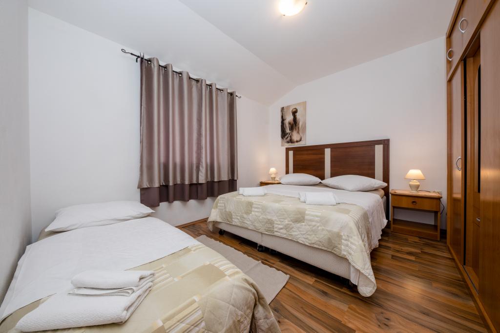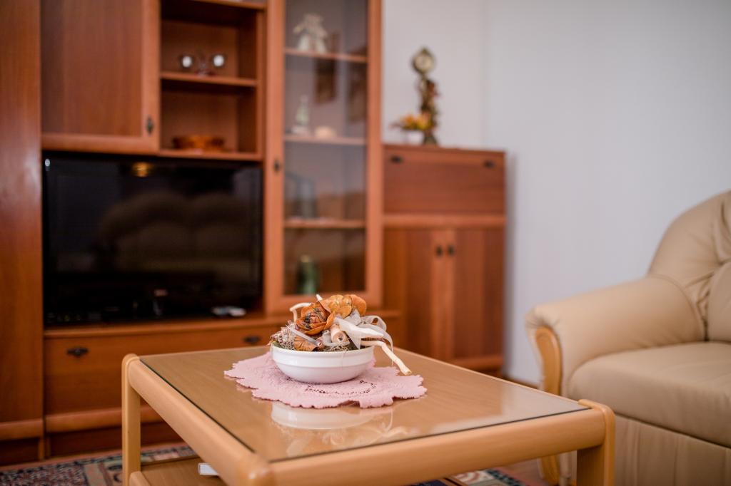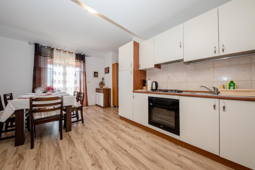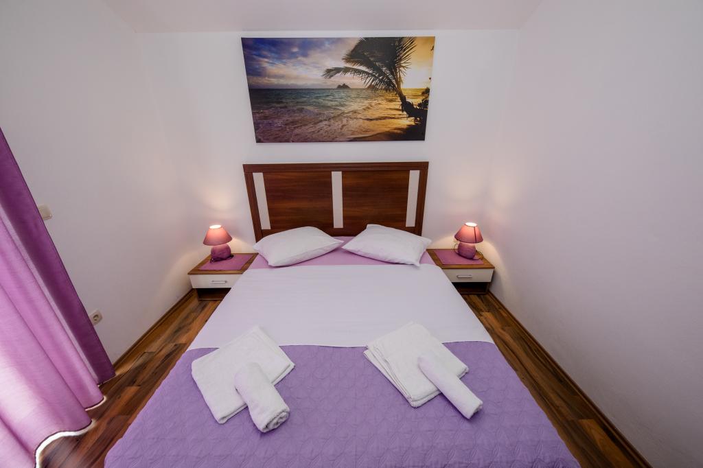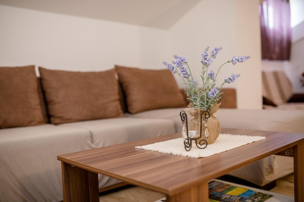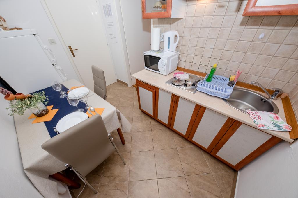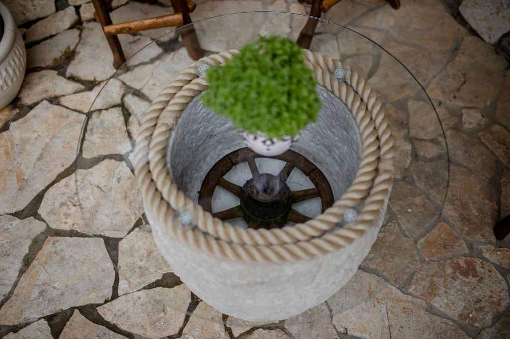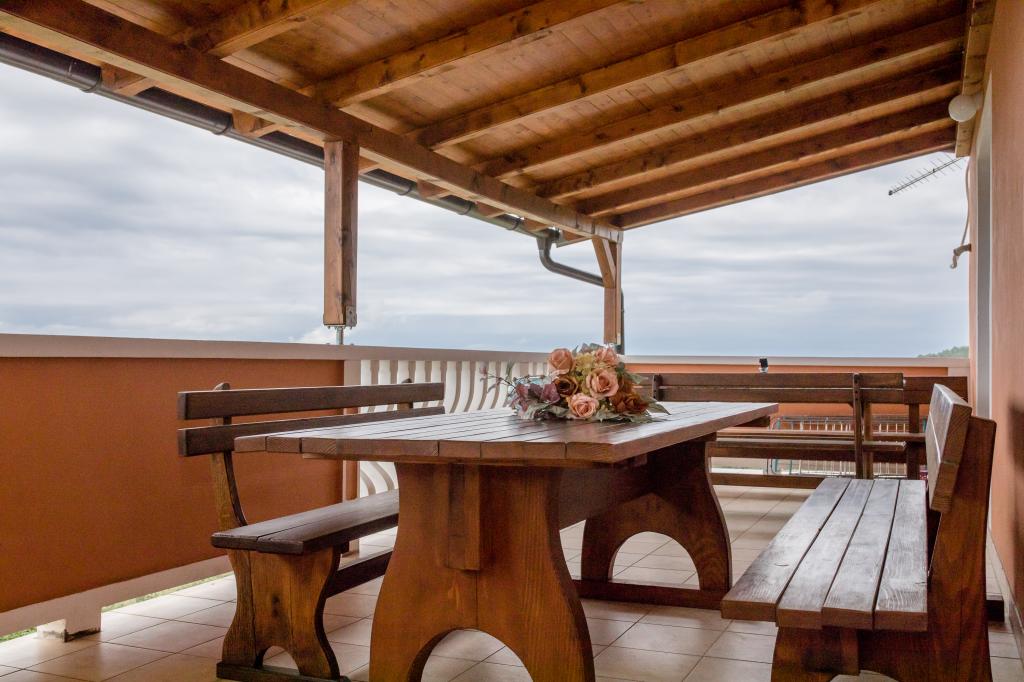 Modern ingerichte appartementen op 350 meter boven de zeespiegel in een rustig dorpje in Mundanije op het eiland Rab genaamd Šćerba. De faciliteit ligt op ongeveer 2-3 km van de zee, het centrum en alle andere belangrijke locaties, dat is ongeveer 10 minuten met de auto. De ligging van het gebouw biedt vanaf alle terrassen en balkons een prachtig uitzicht over het hele eiland en het grootste deel van de Kvarnerbaai. De rust en niet zo veel verkeer van onze stad biedt een perfecte en ontspannende vakantie in de beschutting van de natuur en heerlijk zonnig zomerweer. Er is een grote parkeerplaats naast het huis, en achter het huis is er een prachtig gemaakt zwembad en een ligweide ernaast.