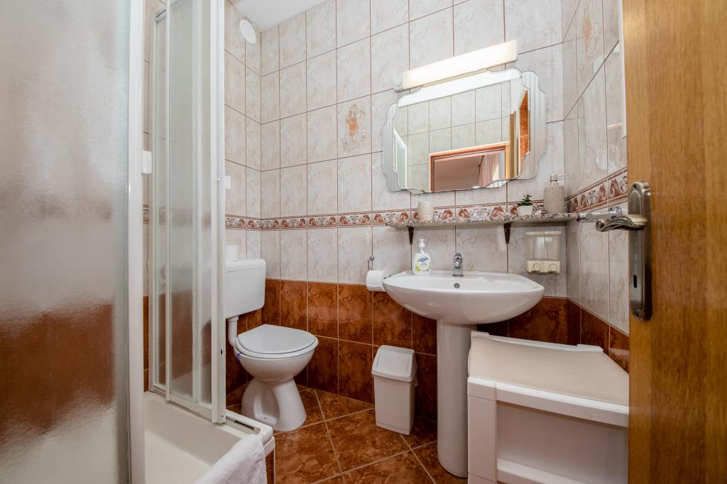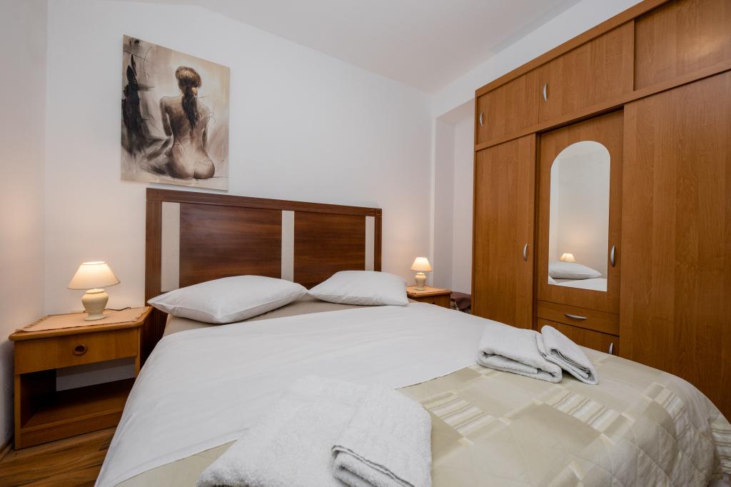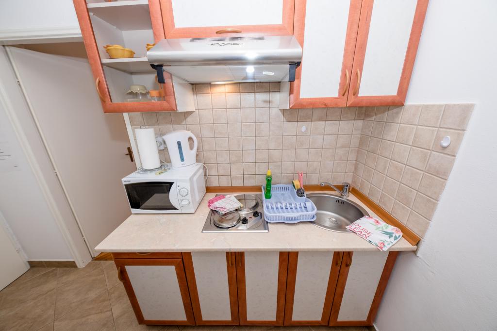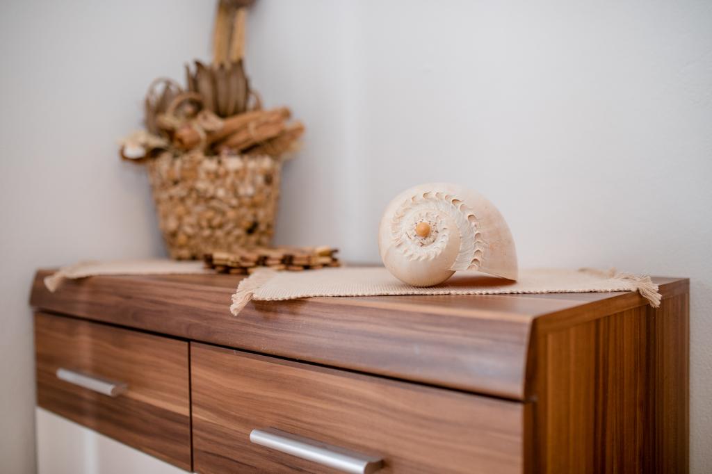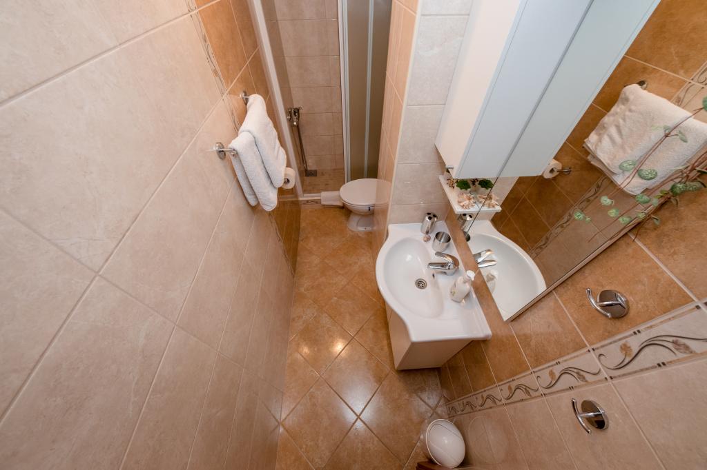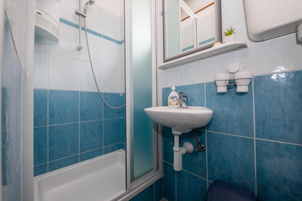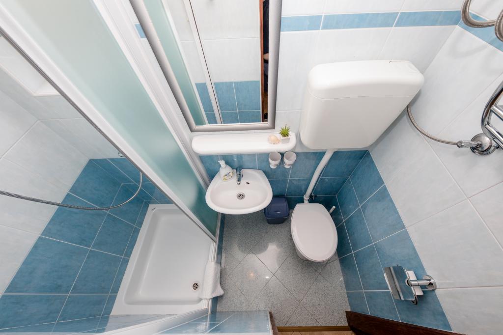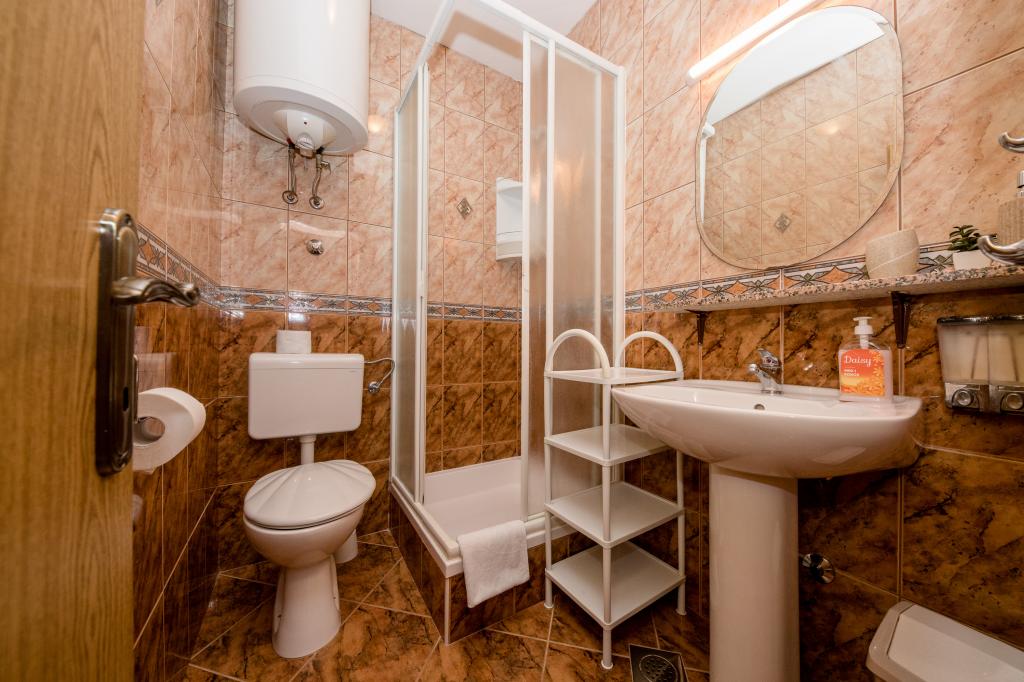 Modern ingerichte appartementen op 350 meter boven de zeespiegel in een rustig dorpje in Mundanije op het eiland Rab genaamd Šćerba. De faciliteit ligt op ongeveer 2-3 km van de zee, het centrum en alle andere belangrijke locaties, dat is ongeveer 10 minuten met de auto. De ligging van het gebouw biedt vanaf alle terrassen en balkons een prachtig uitzicht over het hele eiland en het grootste deel van de Kvarnerbaai. De rust en niet zo veel verkeer van onze stad biedt een perfecte en ontspannende vakantie in de beschutting van de natuur en heerlijk zonnig zomerweer. Er is een grote parkeerplaats naast het huis, en achter het huis is er een prachtig gemaakt zwembad en een ligweide ernaast.