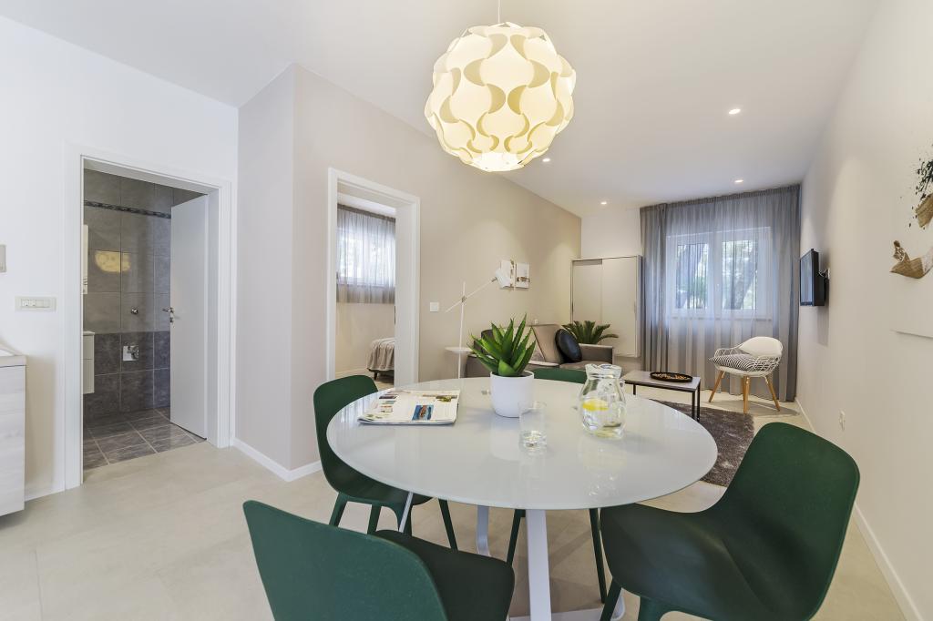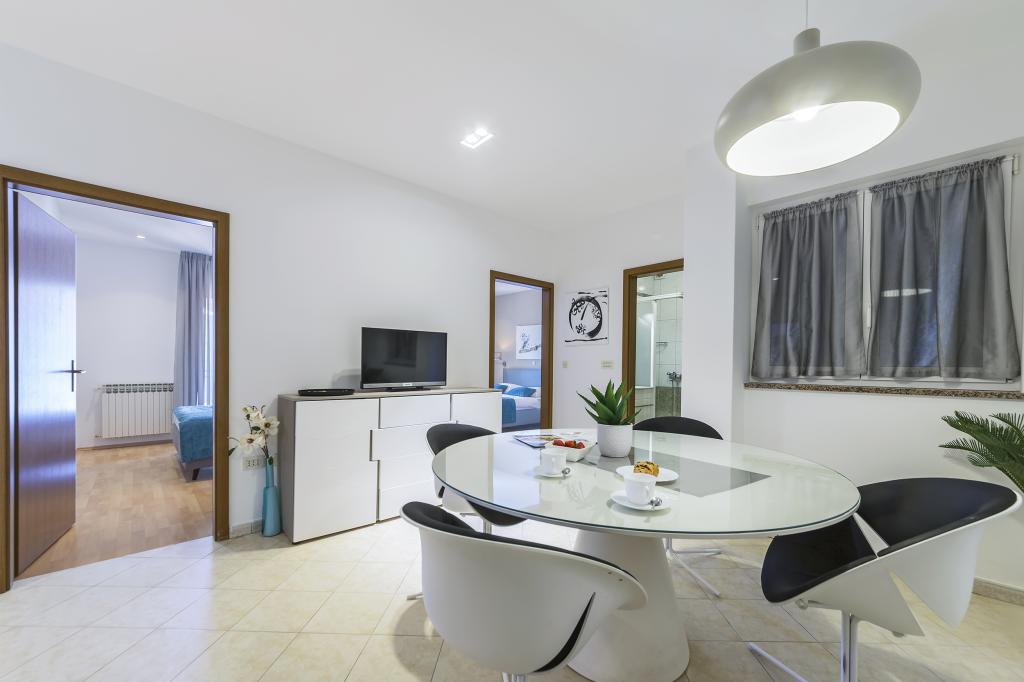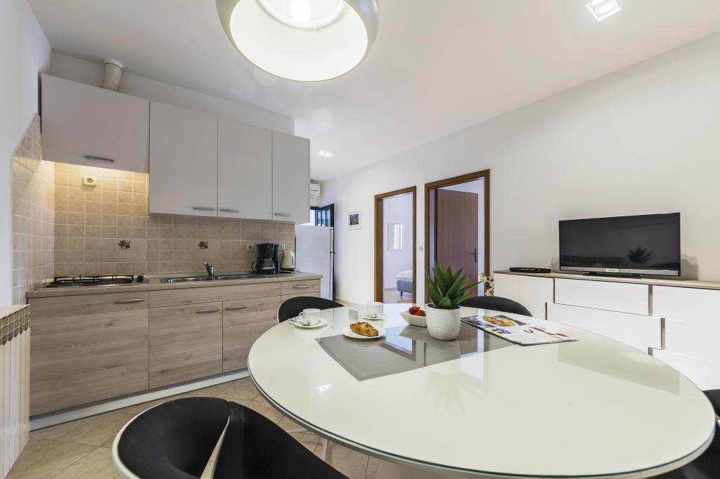 In de volkomen rust van een dennenbos, op slechts 350 meter van de zee en het centrum van Rabac, ligt huis Adrijana. Het huis beschikt over 7 accommodaties. Elk appartement heeft een ruim terras waar u uw dag kunt beginnen met een heerlijk ontbijt bij zonsopgang en kunt genieten van het uitzicht op zee. 's Avonds kunt u ontspannen met een barbecue in de prachtige tuin met uw familie en vrienden.
