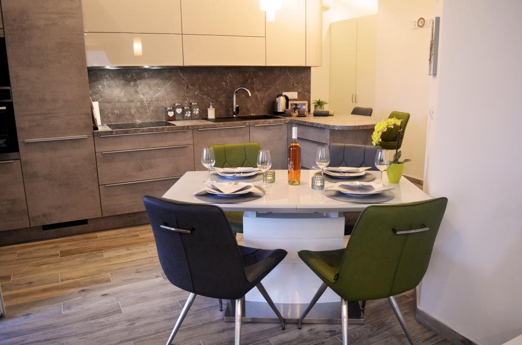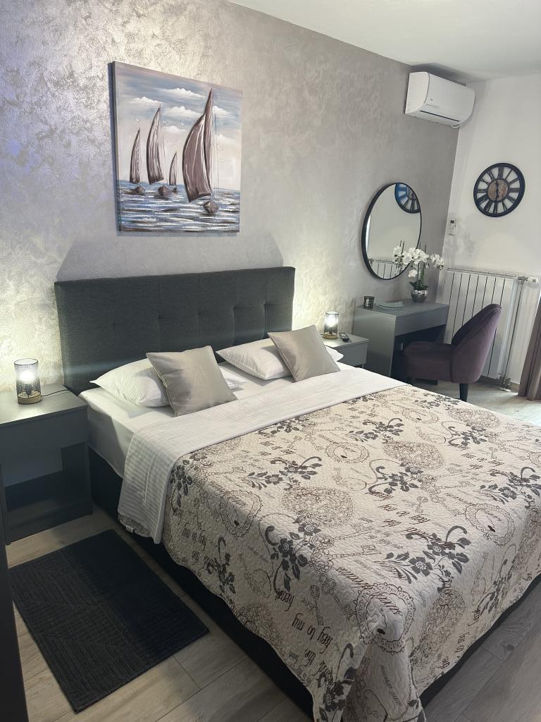 De gastheren Rina en Jure zijn erg aardig en behulpzaam. We kwamen erg moe van de reis en het welkom van de gastheren was een echte verrassing. Mooi en modern ingericht appartement, zeer netjes en schoon zodat je je thuis voelt. Het privéstrand ligt aan de overkant van de straat en de zee is erg schoon. Onvergetelijke vakantie... We komen weer