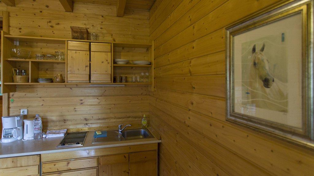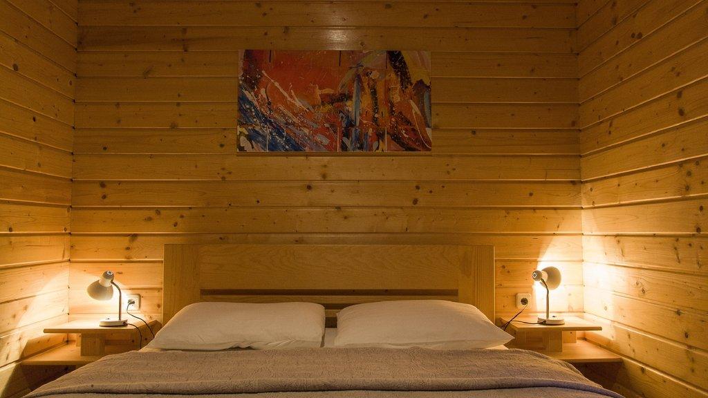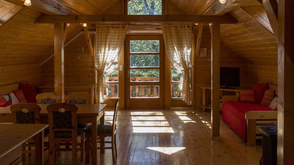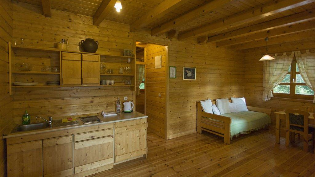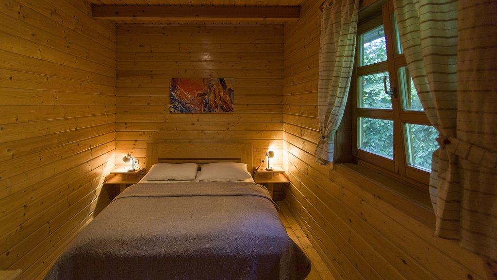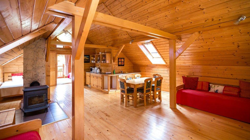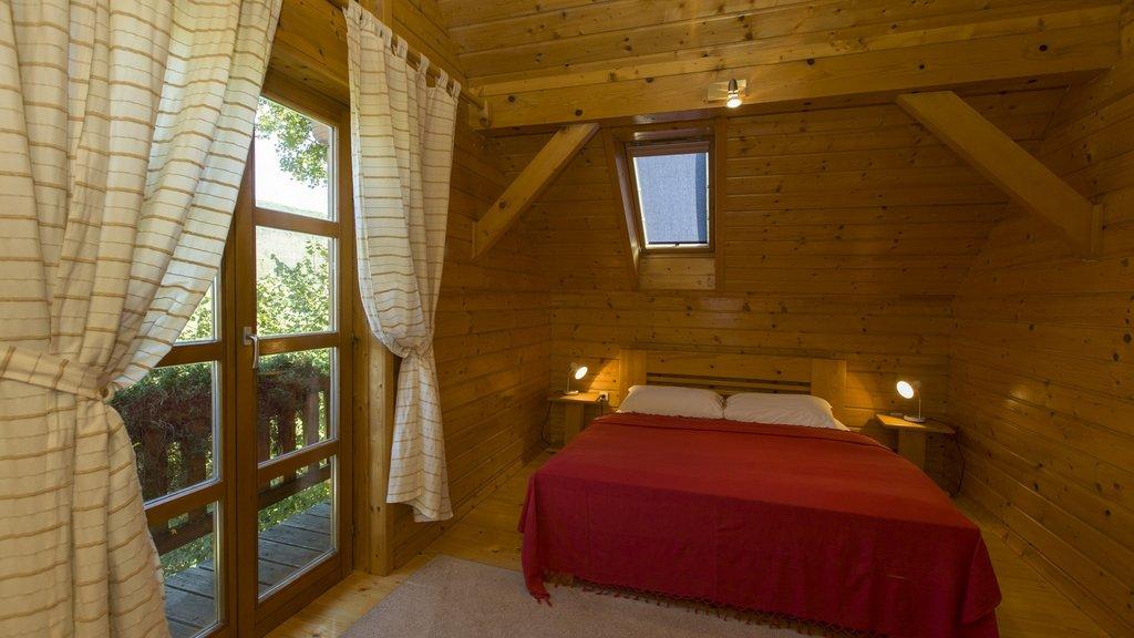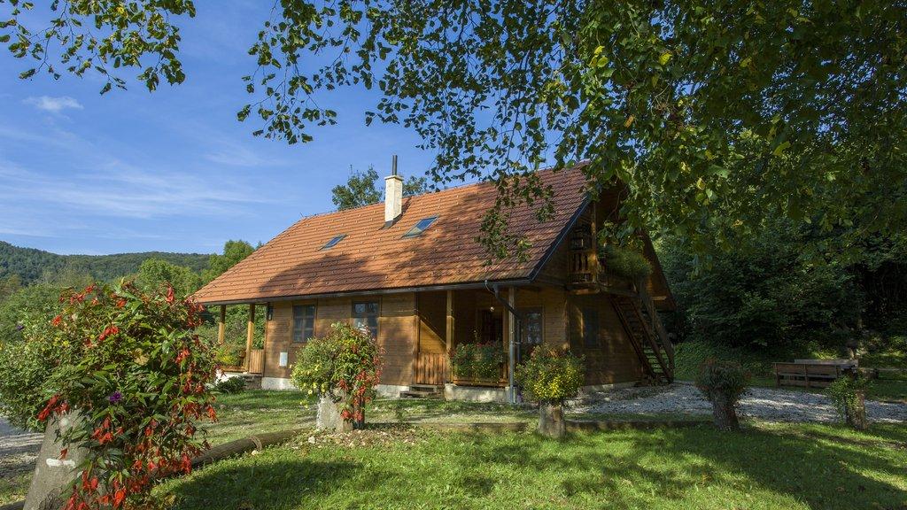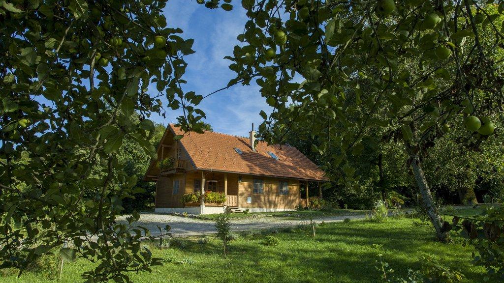 Jela is een van de twee houten huizen op het landgoed Jelov Klanac aan de rand van het Nationaal Park Plitvicemeren. Net als het eindeloze bos en groen waarin het zich bevindt, denkt Jela groen. 'S Nachts, als de lichten uit zijn, kunt u in alle rust naar de hemel en de sterren kijken. In de zomer verlichten vuurvliegjes het terrein en waait de geur van geneeskrachtige kruiden door, terwijl in de winter het geknetter van hout uit de open haard en het uitzicht op de omliggende besneeuwde heuvels een authentieke ervaring bieden. Jela biedt accommodatie in drie appartementen die zijn uitgerust met handgemaakte houten meubels.