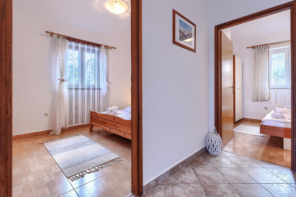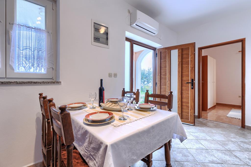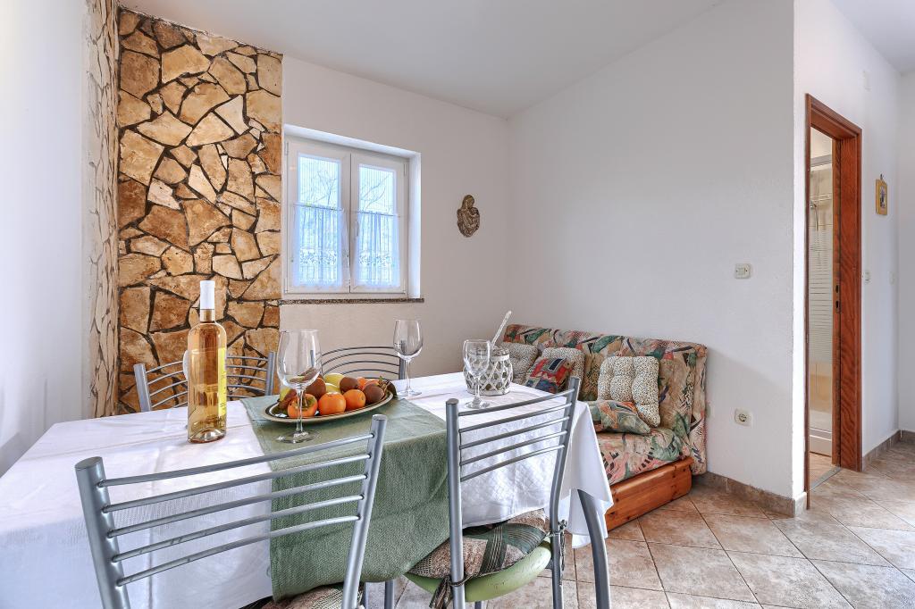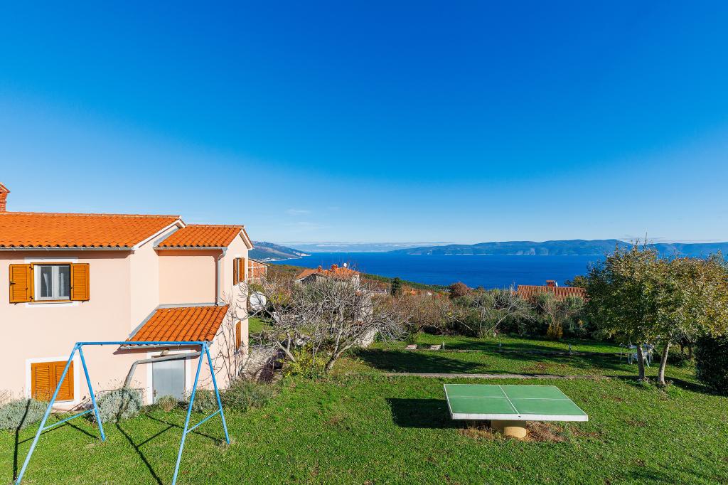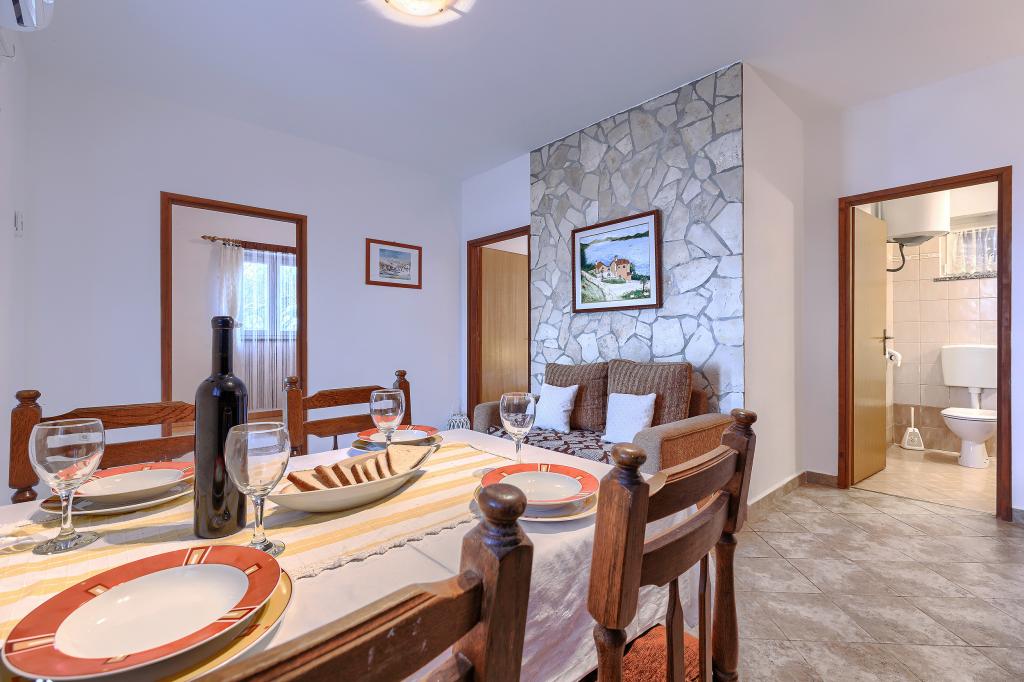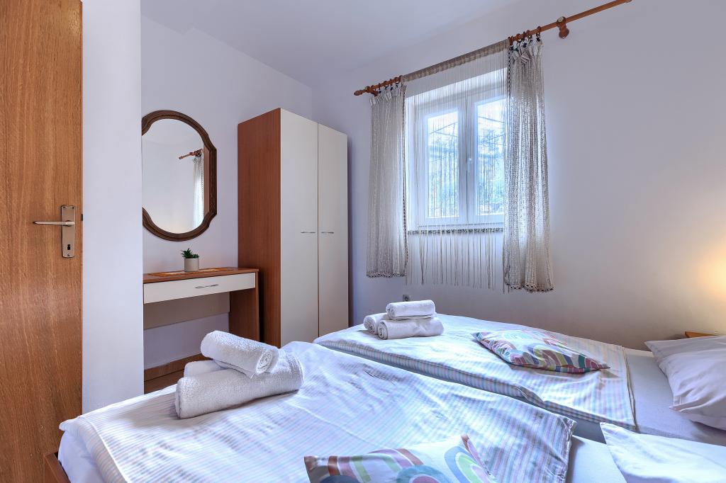Huis met meerdere appartementen in de nederzetting Drenje. Het ligt op 5 minuten rijden van het strand en op 15 minuten van het stadje Labin. De appartementen bevinden zich op de begane grond. Ze bieden volledige privacy en de mogelijkheid tot ontspanning en rust. Eén appartement heeft een oppervlakte van 42 vierkante meter, een slaapkamer met een tweepersoonsbed en de mogelijkheid tot een extra bed, een woonkamer met eethoek, een volledig uitgeruste keuken, een terras met uitzicht op zee en een badkamer. Het tweede appartement heeft een oppervlakte van 56 vierkante meter, twee slaapkamers met elk een tweepersoonsbed, een woonkamer met eethoek, een volledig uitgeruste keuken, een terras met uitzicht op zee en een badkamer. Het dichtstbijzijnde restaurant en de dichtstbijzijnde supermarkt liggen op 5 minuten rijden. De appartementen bevinden zich op een rustige locatie in een aangename natuurlijke omgeving - alles wat u nodig heeft voor een perfecte vakantie!