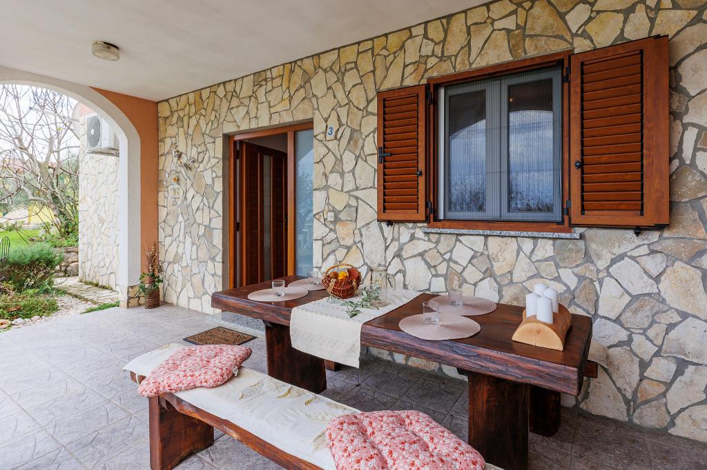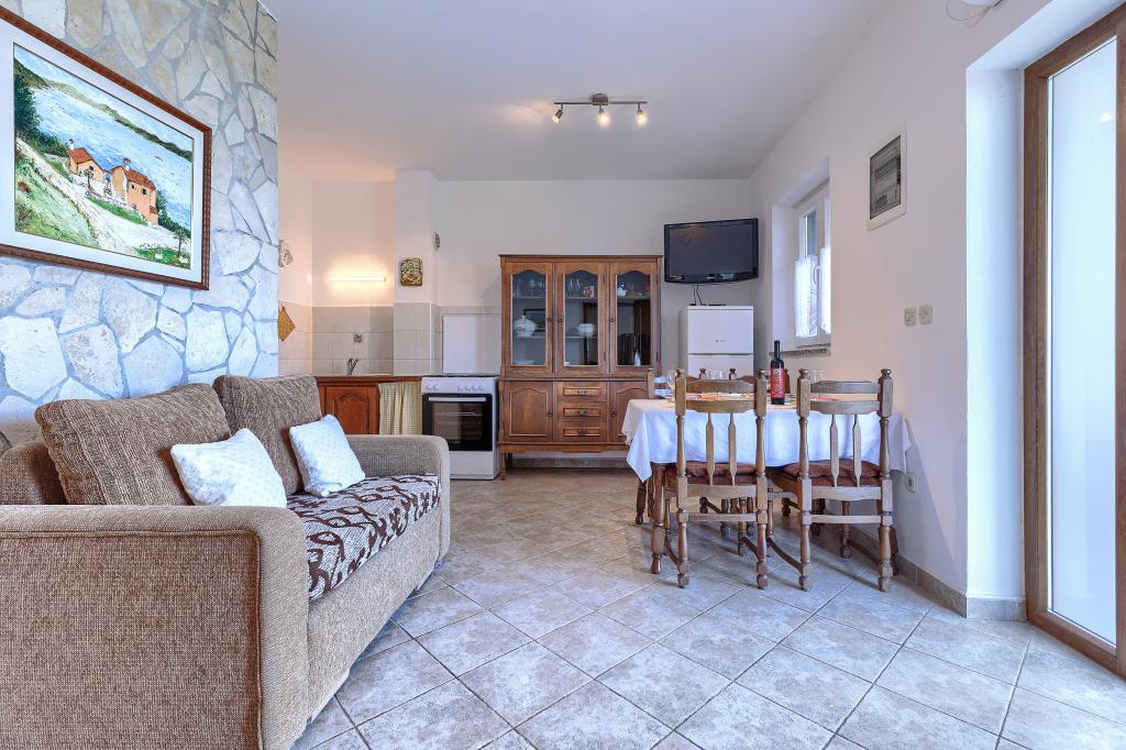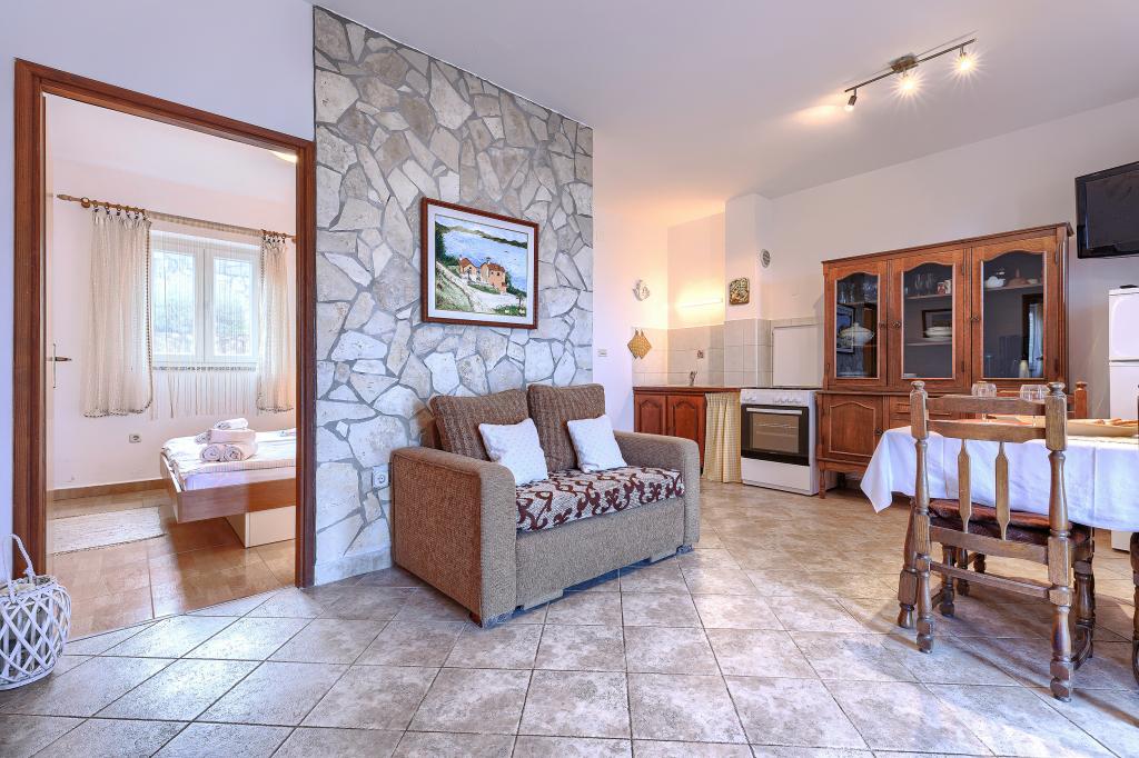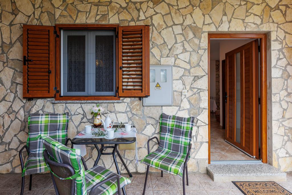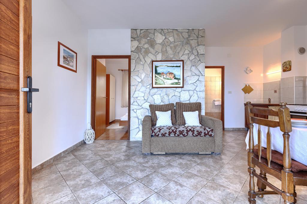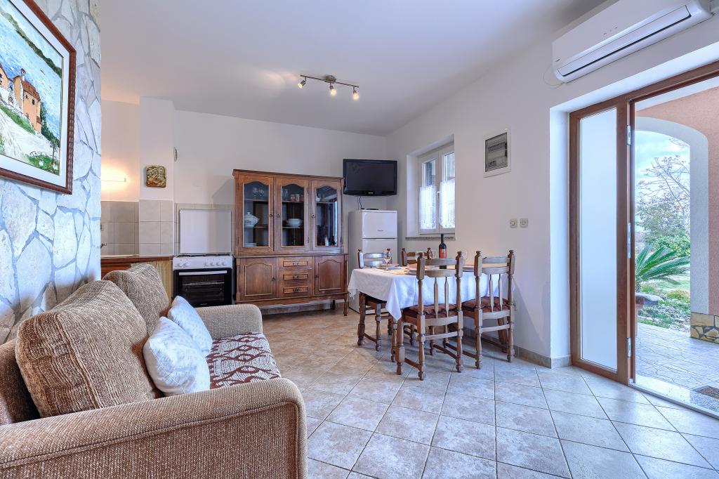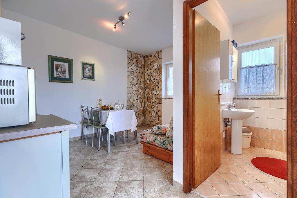 Huis met meerdere appartementen in de nederzetting Drenje. Het ligt op 5 minuten rijden van het strand en op 15 minuten van het stadje Labin. De appartementen bevinden zich op de begane grond. Ze bieden volledige privacy en de mogelijkheid tot ontspanning en rust. Eén appartement heeft een oppervlakte van 42 vierkante meter, een slaapkamer met een tweepersoonsbed en de mogelijkheid tot een extra bed, een woonkamer met eethoek, een volledig uitgeruste keuken, een terras met uitzicht op zee en een badkamer. Het tweede appartement heeft een oppervlakte van 56 vierkante meter, twee slaapkamers met elk een tweepersoonsbed, een woonkamer met eethoek, een volledig uitgeruste keuken, een terras met uitzicht op zee en een badkamer. Het dichtstbijzijnde restaurant en de dichtstbijzijnde supermarkt liggen op 5 minuten rijden. De appartementen bevinden zich op een rustige locatie in een aangename natuurlijke omgeving - alles wat u nodig heeft voor een perfecte vakantie!