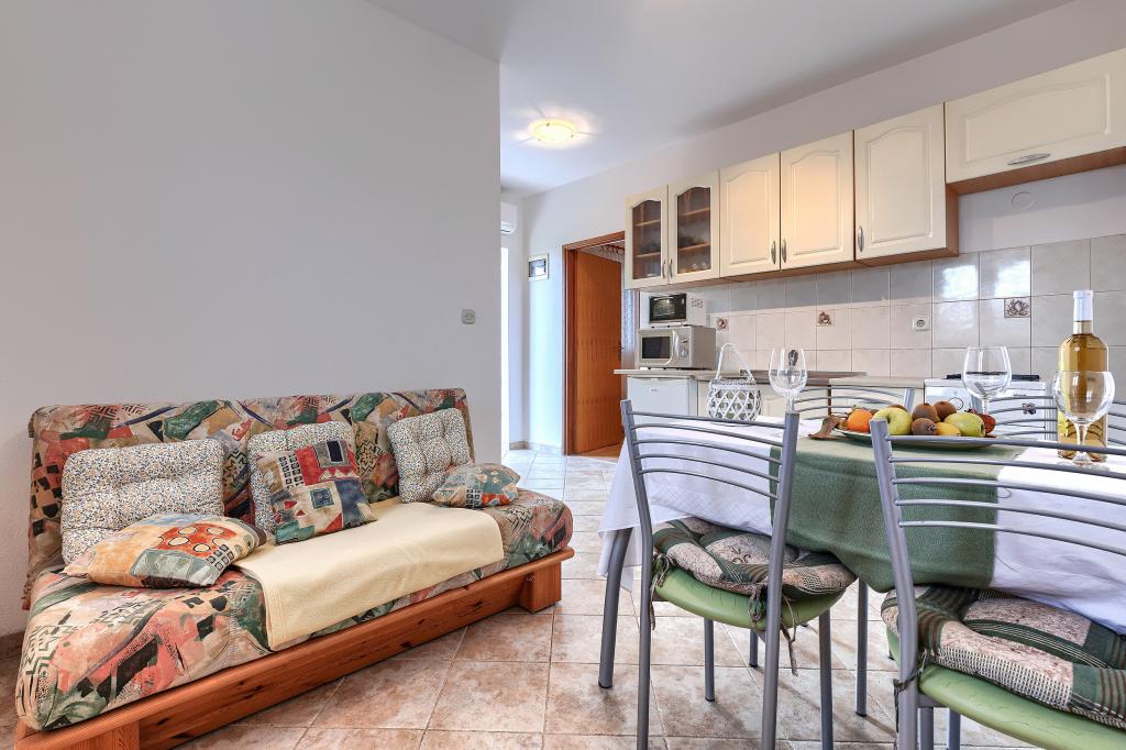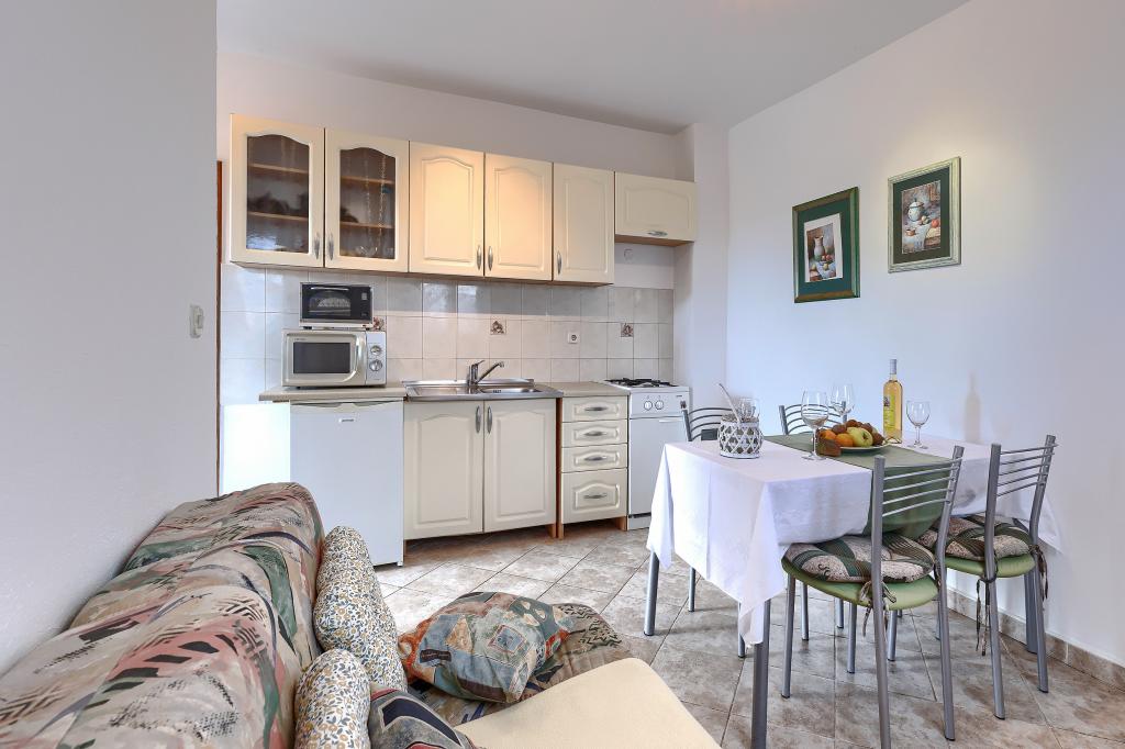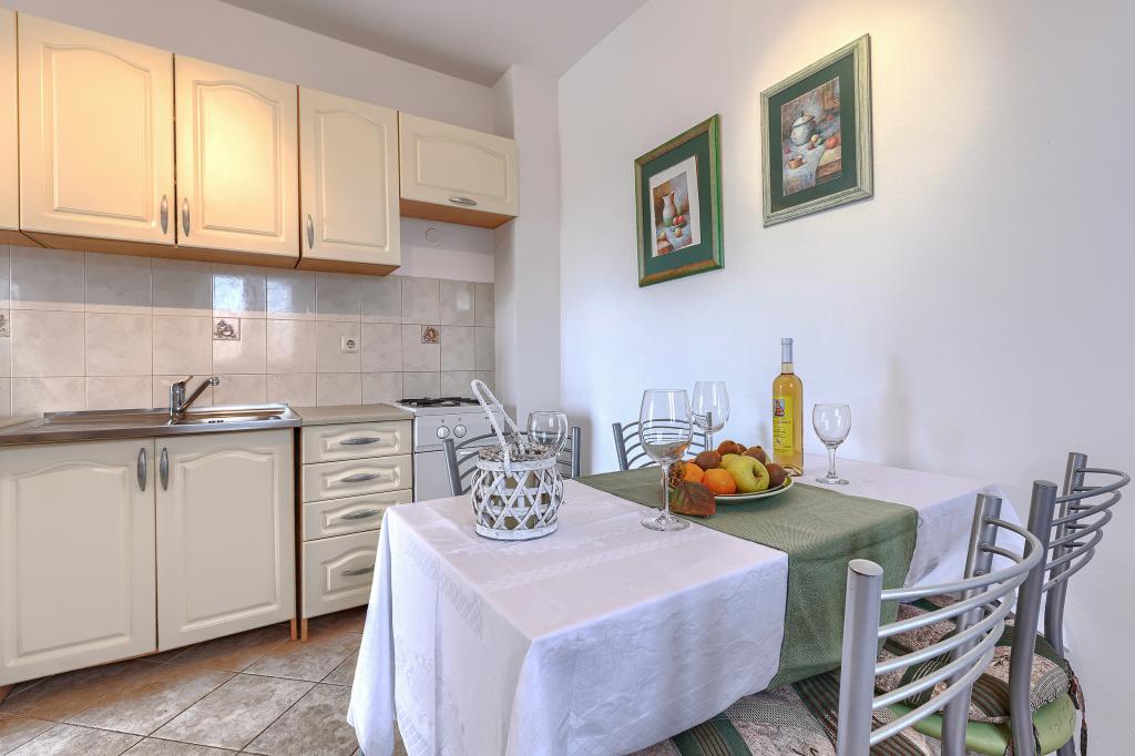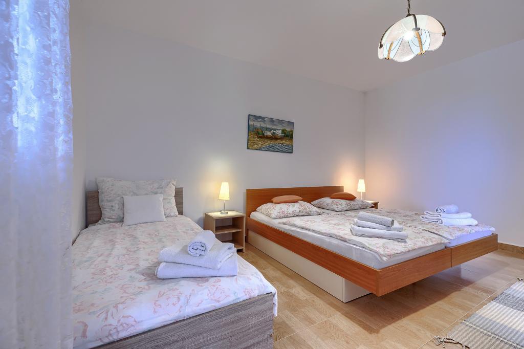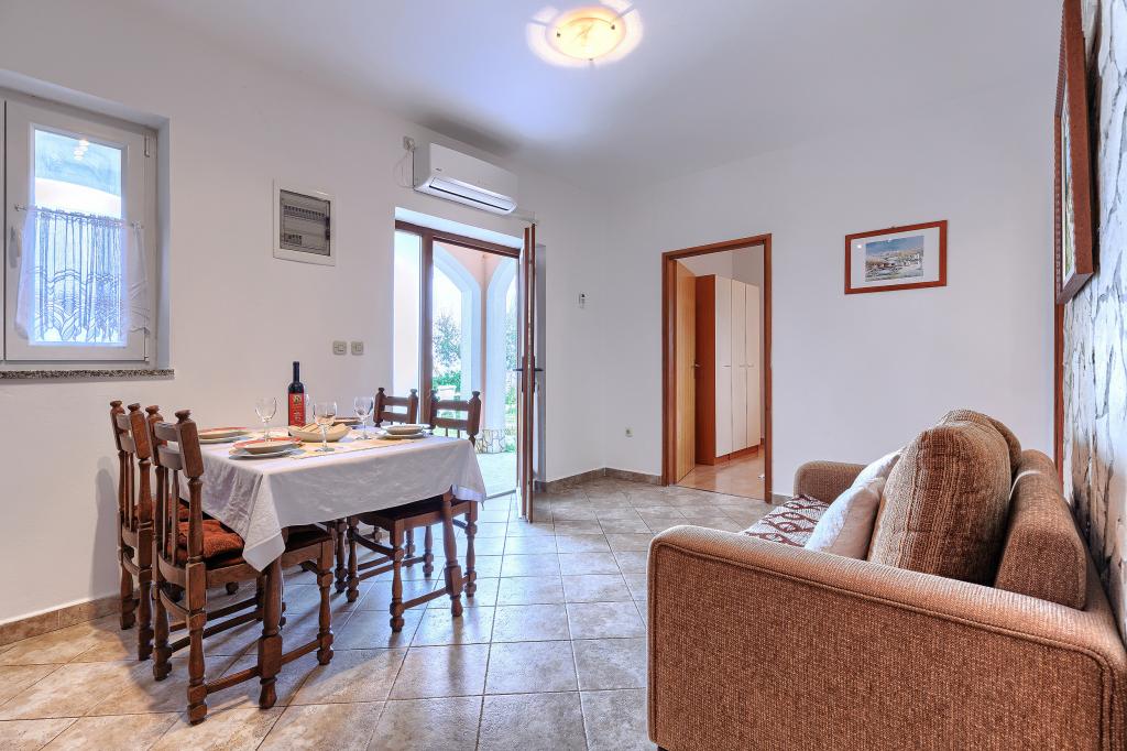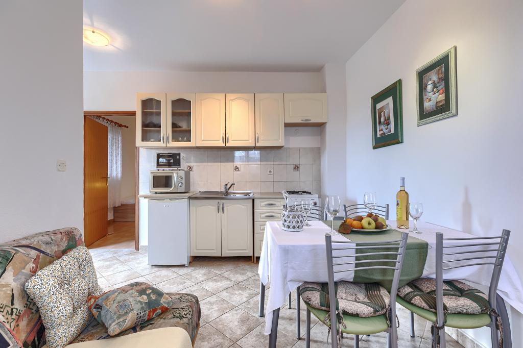 Huis met meerdere appartementen in de nederzetting Drenje. Het ligt op 5 minuten rijden van het strand en op 15 minuten van het stadje Labin. De appartementen bevinden zich op de begane grond. Ze bieden volledige privacy en de mogelijkheid tot ontspanning en rust. Eén appartement heeft een oppervlakte van 42 vierkante meter, een slaapkamer met een tweepersoonsbed en de mogelijkheid tot een extra bed, een woonkamer met eethoek, een volledig uitgeruste keuken, een terras met uitzicht op zee en een badkamer. Het tweede appartement heeft een oppervlakte van 56 vierkante meter, twee slaapkamers met elk een tweepersoonsbed, een woonkamer met eethoek, een volledig uitgeruste keuken, een terras met uitzicht op zee en een badkamer. Het dichtstbijzijnde restaurant en de dichtstbijzijnde supermarkt liggen op 5 minuten rijden. De appartementen bevinden zich op een rustige locatie in een aangename natuurlijke omgeving - alles wat u nodig heeft voor een perfecte vakantie!