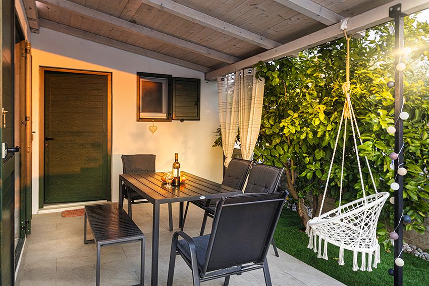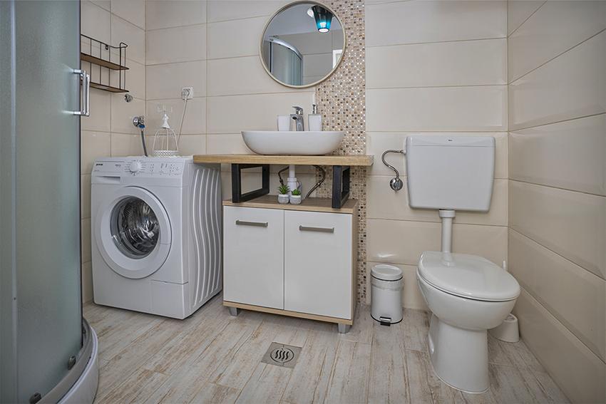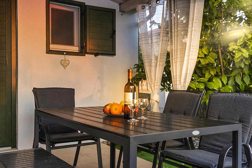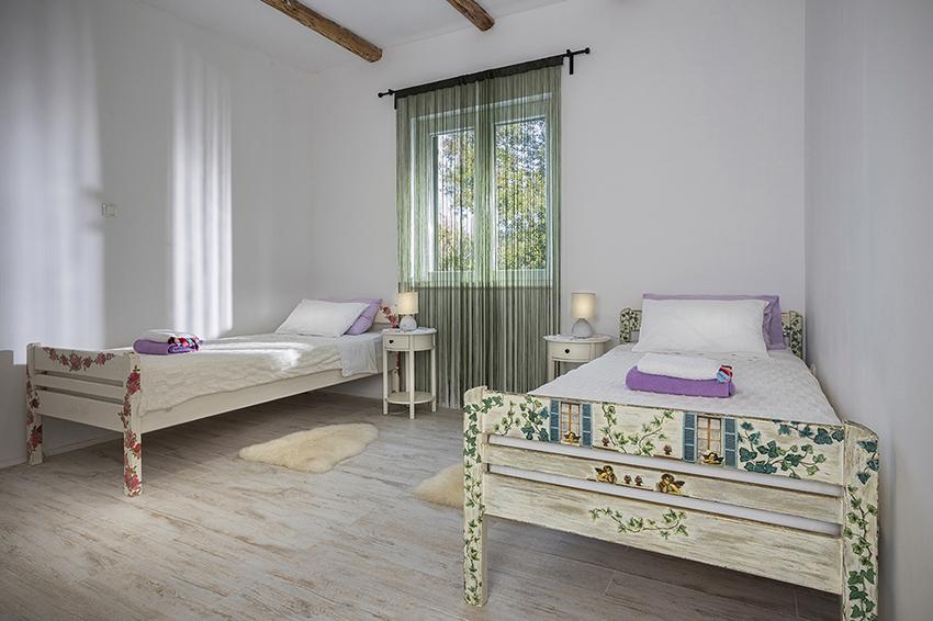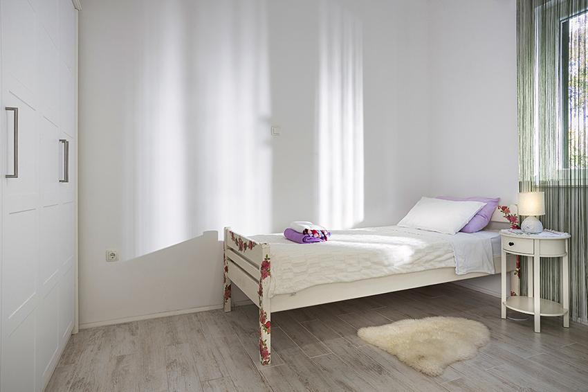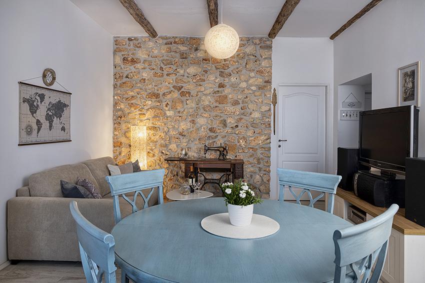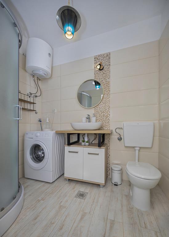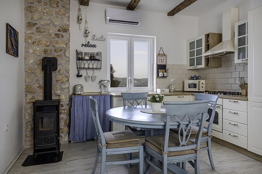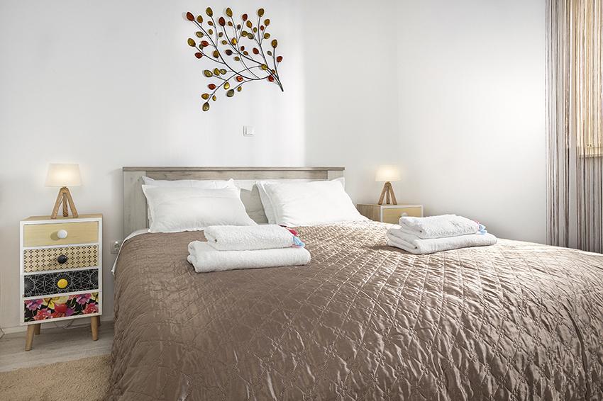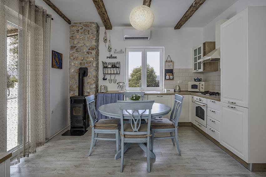Het appartement is gelegen in een afgelegen gebied in het oudere gedeelte van het dorp op de top van de heuvel (75 m tot 82 m boven de zeespiegel), dus u zult genieten van de rust en stilte. Het ligt op 100 m van het dichtstbijzijnde strand en is te voet bereikbaar via de oude weg of te voet of met de auto over de nieuwe weg. De keuken is modern ingericht en u kunt gebruik maken van de koelkast met vriezer, oven, vaatwasser, espressomachine, broodrooster, waterkoker, magnetron. Het gebouw is voorzien van airconditioning en vloerverwarming. De badkamer is uitgerust met een wasmachine. Het appartement heeft twee kamers. Een heeft een tweepersoonsbed en de andere kamer heeft twee eenpersoonsbedden die kunnen worden samengevoegd. Op het ruime terras kunt u ook buiten genieten.