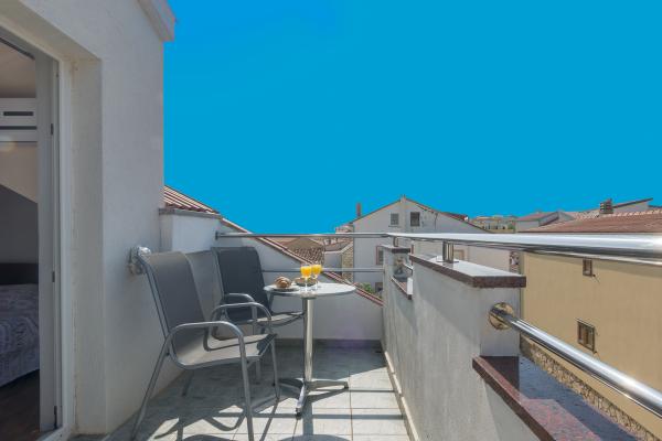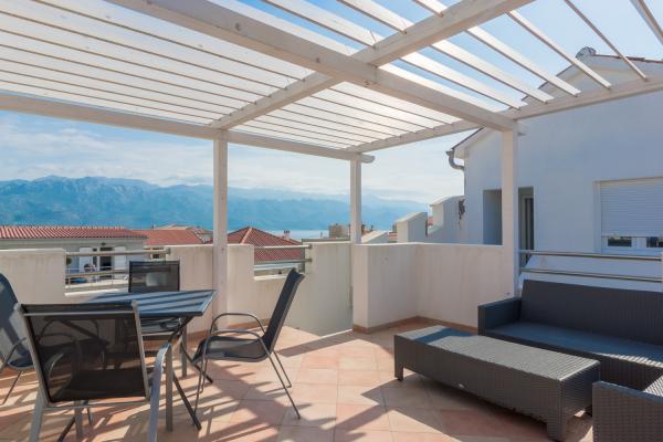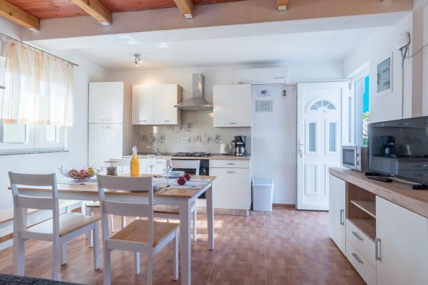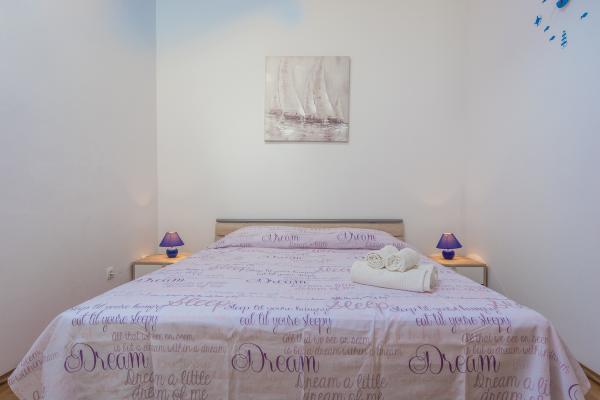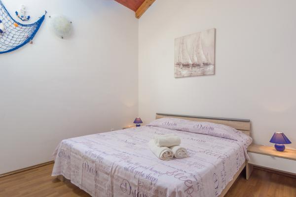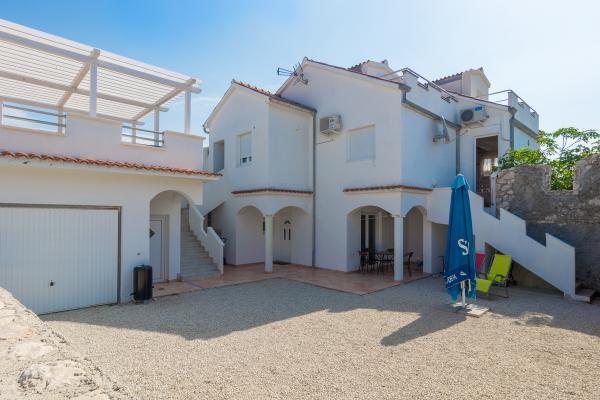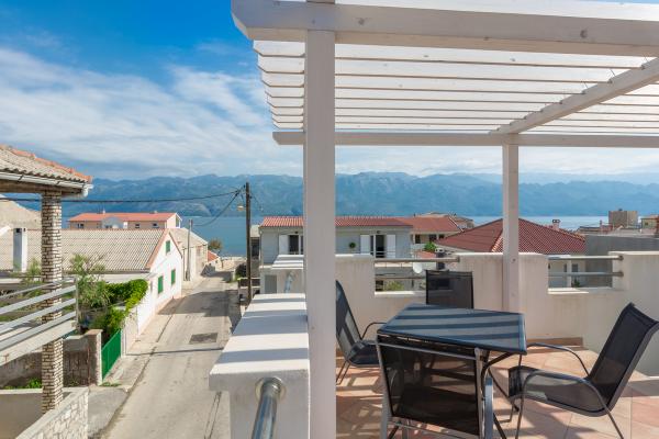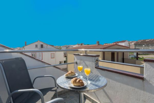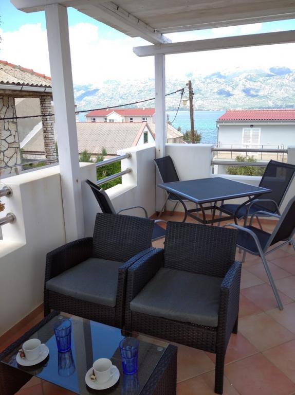 De kamer op de eerste verdieping leidt naar een klein balkon met uitzicht op de plaats, en voor het familiehuis is een groot terras dat wordt gedeeld met een ander appartement. Het terras is voorzien van meubilair en biedt een prachtig uitzicht op de zee en Velebit. Geleverd: handdoeken, beddengoed, 2 airconditioners, parkeerplaats, wifi, wasmachine, broodrooster, magnetron, waterkoker, kinderbedje en voerbak op aanvraag.