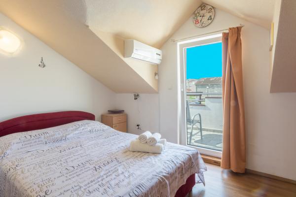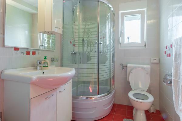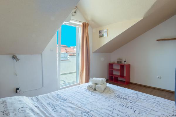 Het appartement ligt in het centrum van Ražanac, op slechts 2 minuten lopen van het strand. Het appartement is 65 vierkante meter groot en is geschikt voor 6 personen. Het appartement is gelegen op de eerste verdieping van de gezinswoning en op de hoge zolder. Op de rechter verdieping is er een nieuwe keuken en woonkamer, een grotere badkamer en de hoofdslaapkamer. De keuken en de woonkamer vormen één ruimte, waarin ook een tafel met stoelen voor 6 personen staat, en ze zijn voorzien van airconditioning. Er is ook een led-tv (82 cm) met satelliet-tv en een slaapbank van 180 x 200 die comfortabel slaapt voor twee personen. De badkamer is voorzien van een douchecabine, toilet, wastafel en wasmachine. Op dezelfde verdieping bevindt zich de hoofdkamer, die is uitgerust met een tweepersoonsbed van 180 x 200 met nachtkastjes en nachtlampjes. De kamer heeft een grotere kledingkast. De ruimte is hoog en zorgt voor een bijzondere beleving door het dakraam met schaduw en de mogelijkheid tot volledige verduistering. Op de bovenverdieping bevindt zich de tweede slaapkamer met airconditioning en toilet.