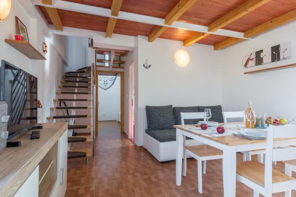 Het appartement is schoon, goed onderhouden, geschikt voor gezinnen. De keukenapparatuur voldeed aan onze behoeften (broodrooster, magnetron, 2 koelkasten en al het servies voor 6 personen) Het ontbrak ons alleen aan glazen voor rakijkie of wijn, maar het is ons gelukt. De trappen zijn vrij hoog, maar mijn 4-jarige slaagde er gemakkelijk in. Het appartement heeft 2 airconditioners, zodat u even kunt ontsnappen aan de Kroatische hitte. De zee is vrij dichtbij. Na het verlaten van de poort opent zich een prachtig uitzicht op de bergen en de zee. Zeer beleefde en aardige gastheren. Ik beveel de stad en het appartement zelf van harte aan.