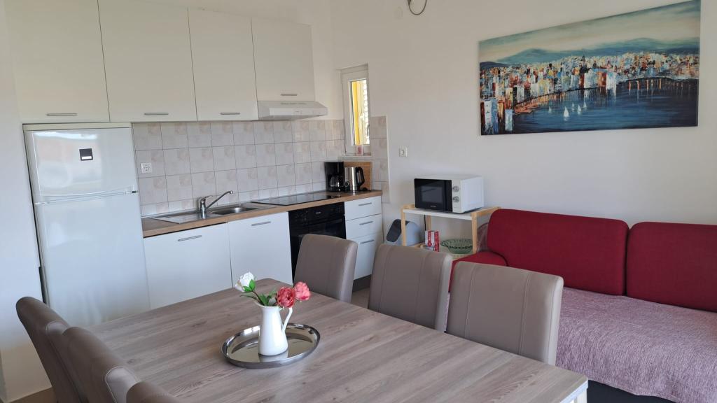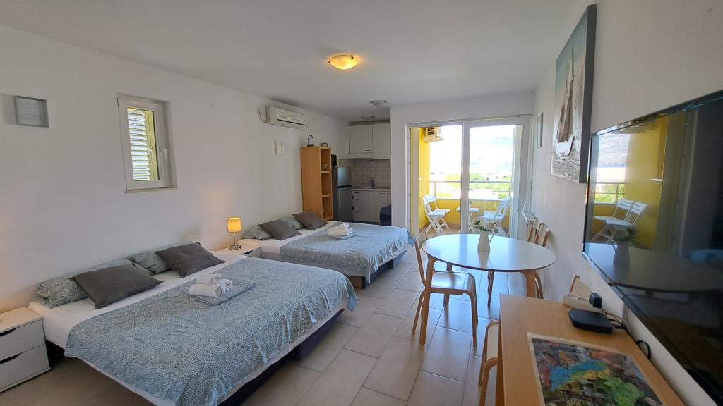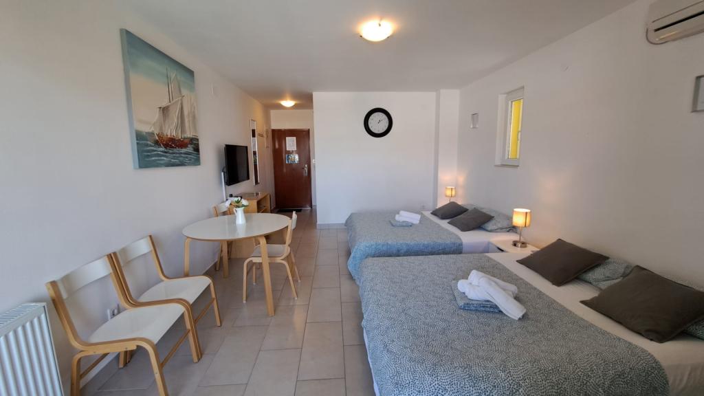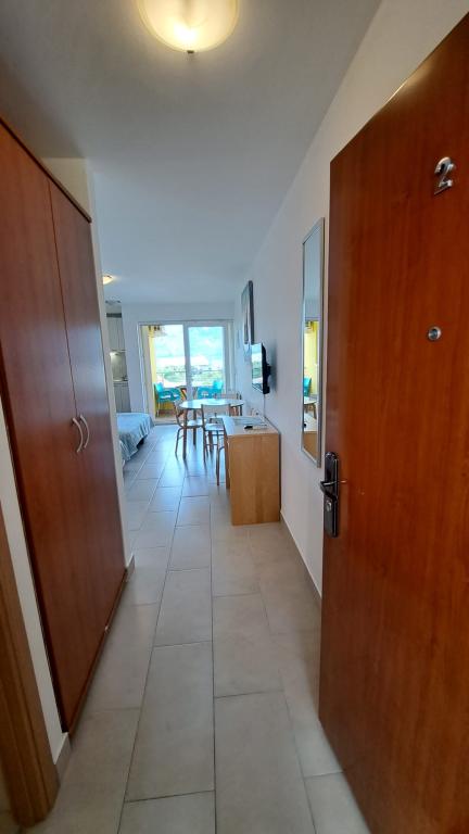 We verbleven er rond de jaarwisseling van juli en augustus. De appartementen waren schoon en goed onderhouden, met alles wat we nodig hadden, van handdoeken en zeep tot schoonmaakmiddelen. De keuken was van alle gemakken voorzien. De accommodatie ligt vlak bij de zee en de stranden zijn rustig en ideaal voor kinderen, met ondiep water. We waren erg onder de indruk van de lieve eigenaresse, Biljana. Ze houdt van wat ze doet en verwelkomt haar gasten met grote vriendelijkheid en zorg, altijd met een glimlach en klaar om te helpen. Ze besteedde aandacht aan elk detail, vroeg ons elke dag wat we nodig hadden en bracht spelletjes, bordspellen en puzzels voor onze kinderen. We zouden graag terugkeren naar deze prachtige plek. Ik beveel het iedereen aan die op zoek is naar rust, een prachtig uitzicht en warm water. Iwona, Mariusz, Monia en Dawid