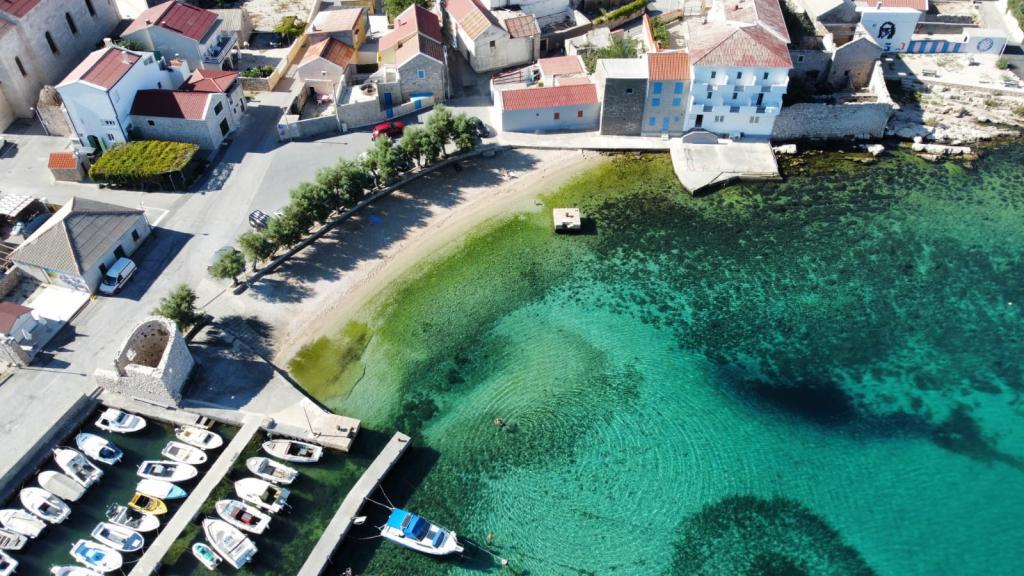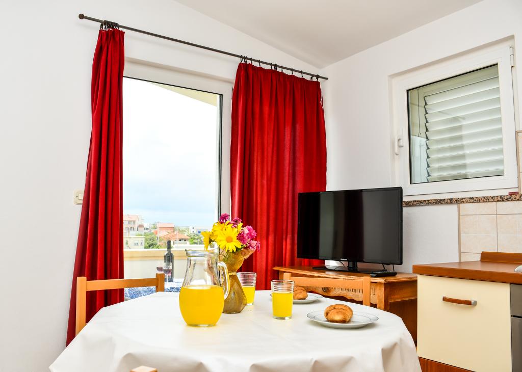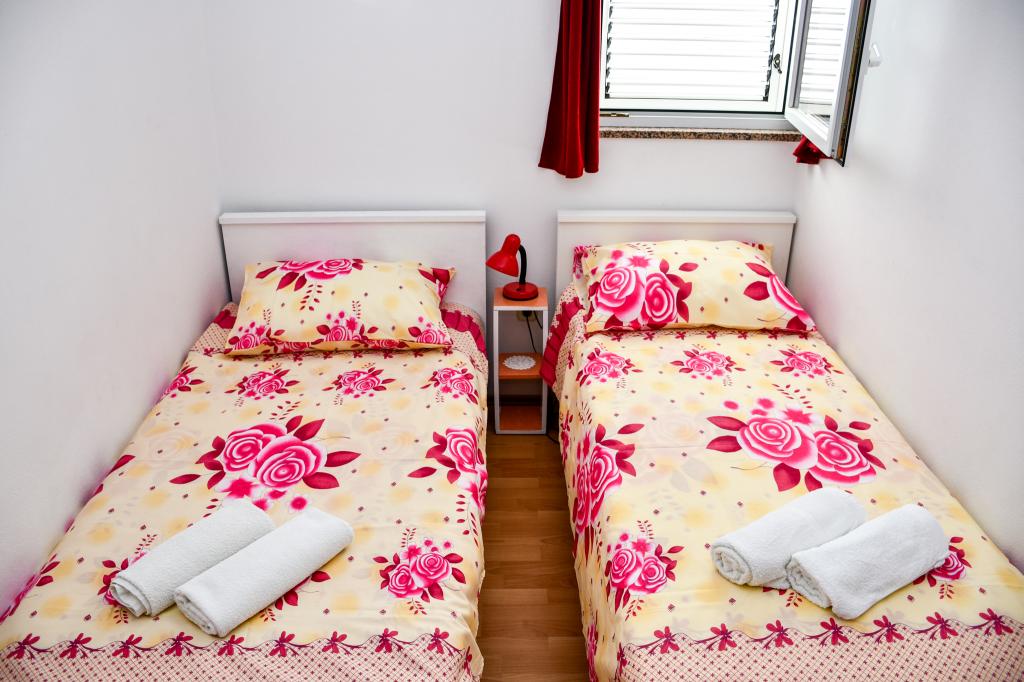De appartementen bevinden zich in de rustige omgeving van Ražanac, zonder lawaai en luidruchtig verkeer. Ze zijn ideaal om te ontspannen en te genieten van het vakantieseizoen. Ze bevinden zich op de bovenste verdieping van een gezinswoning. Elk appartement bestaat uit twee aparte kamers, een keuken en een badkamer. Appartementen zijn uitgerust met alle nodige voorzieningen, waaronder airconditioning, internet en satelliet-ontvanger. Elk appartement heeft een balkon met uitzicht op de zee en de berg Velebit. De accommodatie heeft ook een grote tuin met de mogelijkheid om een boot met aanhanger te parkeren. De accommodatie ligt op 5 minuten lopen van het strand en het centrum met winkels, restaurants, een postkantoor, een ambulance, een apotheek, markten, bibliotheken en alle andere noodzakelijke voorzieningen.