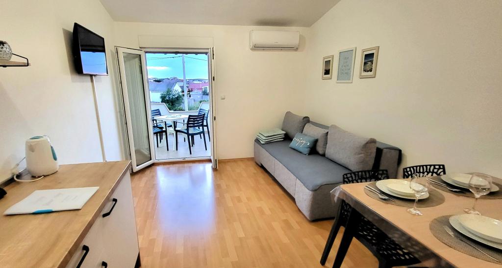 Nadherna rustige vakantie in de nieuwe appartementen, die mili eigenaars bezit. Beschrijving en foto op lijn met de werkelijkheid. Het dorp heeft verschillende winkels, twee restaurants, bakkerijen, banken, een postkantoor, een dagelijkse markt met verse groenten, fruit, vis, beach bar met ligstoelen. Het strand heeft een geleidelijke toegang tot de heldere zee, geschikt voor kleine deticky. Het is uitgerust met douche, toilet. Ideale locatie voor uitstapjes naar de omgeving - Pag, Zadar, Paklenica, Plitvice, Kornati, Krka. Geschikt voor mensen die houden van rust. Nogmaals bedankt Rafaele en Mark voor een heerlijke vakantie en gezondheid Natalie.