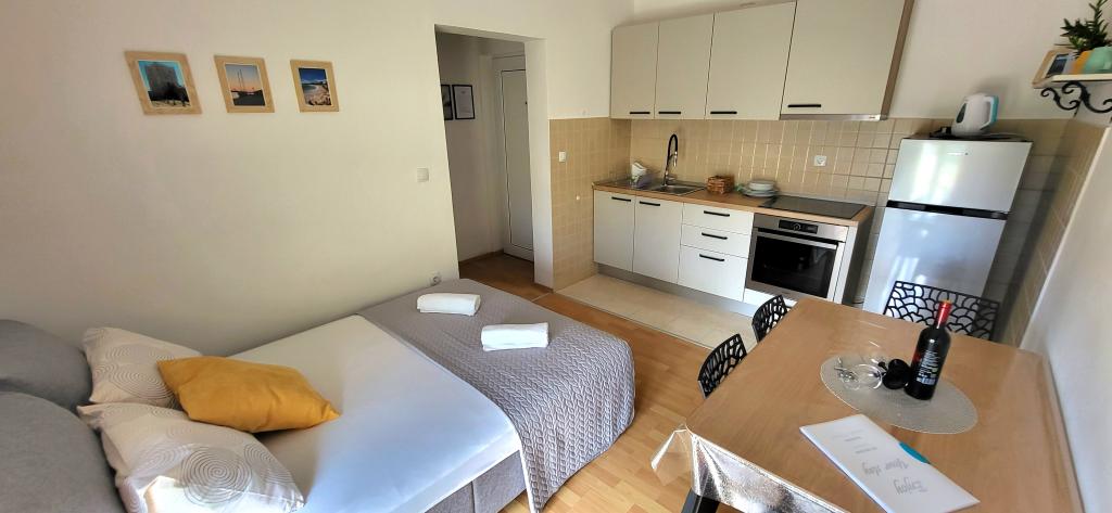 Sensationele appartement ligt zeer dicht bij de zee. De eigenaren waren zeer beleefd en behulpzaam. In de stad alles wat je nodig hebt, restaurants, winkels, een postkantoor, waar u geld kunt wisselen na een goede cursus en sensationeel helder en warm water. Het is een van die plaatsen waar ik tot uw volgende vakantie kon komen. Groeten aan Marko